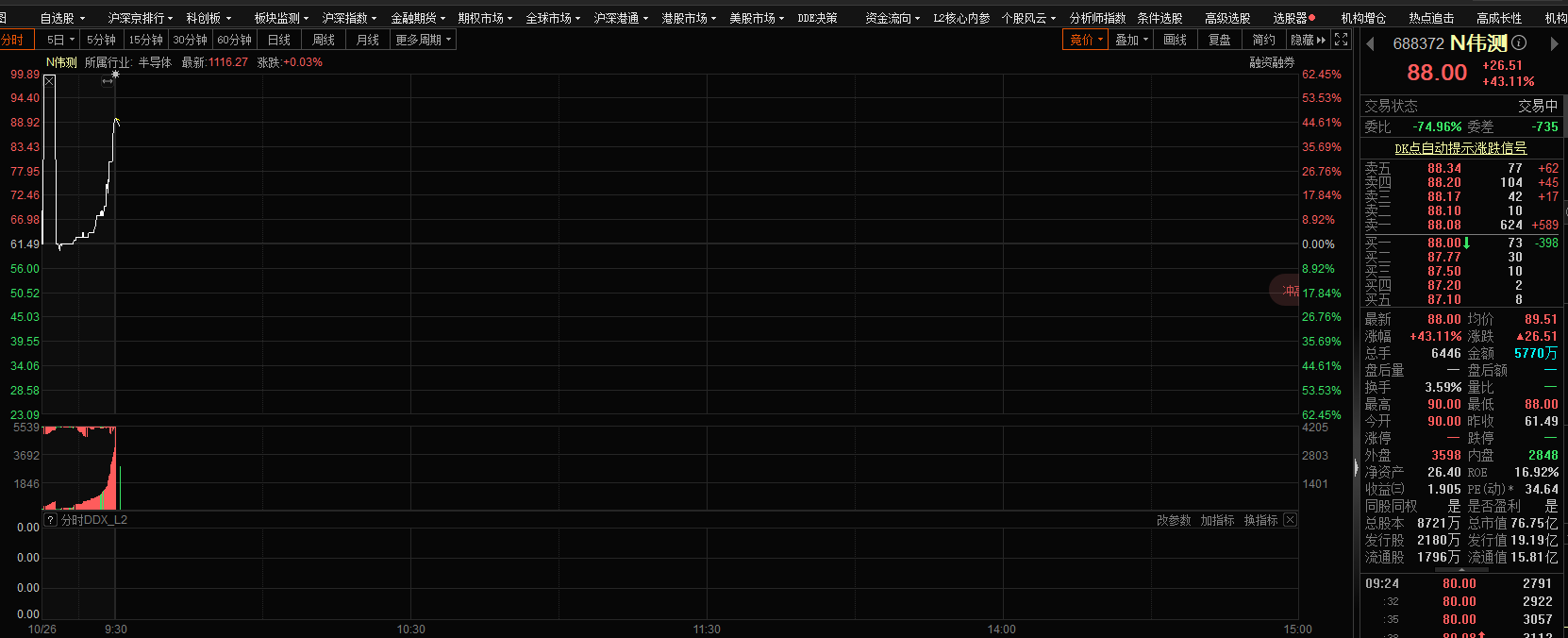 集微网消息10月26日,伟测科技在上海证券生意业务所科创板上市,公司证券代码为688372,发行代价61.49元/股,发行市盈率为42.03倍。 制止发稿时,伟测科技大涨43.11%,报88元/股,总市值76.75亿元。 资料表现,伟测科技是国内着名的第三方集成电路测试服务企业,主业务务包罗晶圆测试、芯片制品测试以及与集成电路测试相干的配套服务。公司测试的晶圆和制品芯片在范例上涵盖 CPU、MCU、FPGA、SoC 芯片、射频芯片、存储芯片、传感器芯片、功率芯片等芯片种类,在工艺上涵盖 6nm、7nm、14nm 等先辈制程和 28nm以上的成熟制程,在晶圆尺寸上涵盖 12 英寸、8 英寸、6 英寸等主流产物,在鄙俚应用上包罗通讯、盘算机、汽车电子、工业控制、消耗电子等范畴。 自2016年5月建立以来,伟测科技经业务绩连续保持高速增长,制止现在,公司已经成为第三方集成电路测试行业中规模位居前线的内资企业之一。 复兴、华为禁令事故发生后,中国大陆的高端芯片计划公司渐渐将高端测试订单向中国大陆转移,加快了国产化替换进程。伟测科技积极把握行业发展汗青机遇,一方面快速扩充高端测试产能,另一方面加大研发投入,重点突破6nm-14nm先辈制程芯片、5G射频芯片、高性能CPU芯片、高性能盘算芯片、FPGA芯片、复杂SoC芯片等各类高端芯片的测试工艺难点,成为中国大陆各大芯片计划公司高端芯片测试的国产化替换的告急供应商之一。 颠末多年的深耕结构,伟测科技的技能气力、服务品格、产能规模得到了行业的高度认可,积累了广泛的客户资源。制止现在,公司客户数量凌驾 200 家,客户涵盖芯片计划、制造、封装、IDM等范例的企业,此中不乏紫光展锐、复兴微电子、晶晨半导体、中颖电子、比特大陆、卓胜微、兆易创新、普冉半导体、长电科技、中芯国际、北京君正、安路科技、复旦微电子等国表里着名厂商。 伟测科技称,比年来,集成电路行业的高速发展给公司发展带来了良好的机遇,公司将围绕已经确定的发展战略,顺应集成电路行业团体发展趋势,贴近客户、明白客户并服务好客户,不绝提拔服务水准与创新本领,在助力行业发展的同时,也不绝提拔公司在行业中的职位。公司将整合内部各项资源,加快推进无锡集成电路测试产能建立项目,从而进步研发、贩卖的规模和本领,为将来高效全面的集成电路测试服务提供告急支持。(校对/李杭森) |