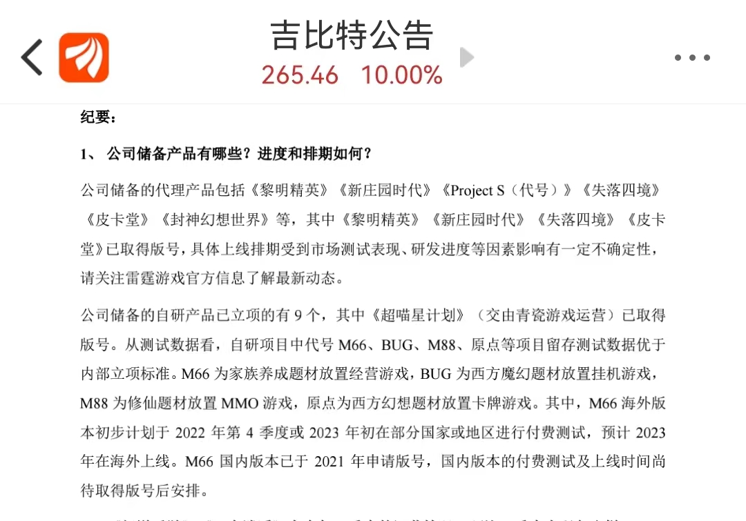 全文共1995字,阅读约莫须要4分钟 图片泉源:手机应用市场截图 10月27日,#羊了个羊背后公司现清仓式分红#登上热搜。随后,曾因《羊了个羊》火了的上市公司吉比特灵敏涨停。消息面上,吉比特拟将前三季度99.45%的净利润用于派发现金红利,分红高达10.06亿。 但吉比特刚发布的2022年三季度报却表现,前三季度归母净利润同比镌汰16.07%。到如今,吉比特的业绩已经连降三次。 靠着爆款游戏能一劳永逸吗?吉比特又要如安在年末交出满足答卷? 净利同比三连降 9月下旬,消除类游戏《羊了个羊》依附高难度玩法和魔性的画风走红于网络后,开辟商北京简游在交际媒体赚尽眼球,月入千万的传言也一时在网络空间中刷屏,只管北京简游出头辟谣,对于《羊了个羊》赚了多少的讨论始终没有消散。 作为北京简游股东之一的吉比特曾回应称,《羊了个羊》小游戏的破圈和红利对公司投资板块收益有肯定正向影响,团体影响程度不会太大,但外界对其财报仍然格外关注。 10月26日晚间,吉比特披露了其三季报,和前三季度利润分配方案。 公告表现,这家游戏公司拟每10股派发140元现金,合计金额到达10.06亿元(含税)。而其前三季度归母净利润为10.12亿元。 换句话说,这家公司准备把一年内赚的利润全部门掉。而在这此中,着实控人卢竑岩将拿走此中高出3亿元额度。 别的,吉比特发布的2022年三季度报表现,其前三季度业务总收入为38.3亿元,同比增长9.89%,而10.12亿元的归母净利润,同比镌汰了16.07%。 吉比特净利同比下滑的近况,与《羊了个羊》的高热相对照不免显得有些黯淡。据悉,2012-2019年期间,吉比特一度稳固保持90%以上的毛利率程度,公司年度归母净利润从2012年的1.59亿元一起飙升至2021年的14.68亿元。2017年,吉比特还因股价逾越茅台成为当时最贵的股票,并被誉为“游戏茅”。 而在业绩一起高歌的2021年后,吉比特似乎遇上了增长门槛,在2022年一季度净利同比减4.27%后,中报又表现净利润6.88亿元,同比下跌23.59%,这引发了市场震荡,中报发布越日,吉比特市值单日蒸发19亿元。 此次三季报的发布,意味着吉比特仍然未能摆脱净利下滑的处境。据悉,对于第三季度业绩环境,吉比特表明称,告急受到本期对联营企业确认的投资收益降落及上年同期转让青瓷数码部门股权产生大额收益影响。 值得一提的是,27日,A股再度打响3000点保卫战,尾盘小幅度震荡跳水。制止收盘沪指跌0.55%,深成指跌0.63%,创业板指跌1.5%。而吉比特开盘之后却快速打击涨停,制止当日收盘,报265.46元/股。 靠爆款能否一劳永逸? 《羊了个羊》单日突破千万用户,《奥比岛:空想国度》还未开服便积聚超千万预约玩家,《摩尔庄园》首月新增用户3000万,而运营十余年的《问道》也实现了端游向手游的移植开辟,PCU曾一度靠近百万。种种数据印证着,吉比特有打造出爆款的本领。 图片泉源:微博@羊了个羊 强大用户群体和IP代价也助推着吉比特的发展。吉比特比年在财报中提到,多年的游戏研发和运营积聚了巨大的玩家群体,对浩繁玩家举动的大数据分析,为公司研发和运营决定提供了有力的数据支持,并能以此为根本进一步改良游戏计划机制,提供更受接待的游戏内容和玩法,从而更好地满足游戏玩家的需求,为公司恒久发展奠基根本。 但据七麦数据,那些曾占据过脱销榜首的吉比特游戏们,无论运营周期是非,如今皆已从前百名中离席。 “无论是情怀牌,照旧重金打造品格画面、炫目殊效,一款游戏想长青,关键照旧要好玩。”游戏行业分析师卫明野以为,对比整个行业,大部门的游戏公司依然要靠长线运营的产物和游戏IP支持大部门营收,但吉比特的老牌产物现阶段在市场中体现平平,近两年来的爆款也多数难以维持初上线时的热度,反映出研发团队仍须要在玩法上多做探索。 加码投资觅增长 翻阅吉比特比年来的年报,专注于网络游戏的研发及运业务务的同时,该公司在游戏行业内的投资从未止步。仅在2021年的财报中,吉比特便提到共投资参股9家包罗青瓷游戏、易玩网络、勇仕网络等发展已成规模的企业,助力营收。2022年上半年,吉比特又投资了成都云端凯德、北京简游等企业。不久前,吉比特又公布增持北京简游股份至20%。 现如今,吉比特已运营了《问道手游》《一念安定》《摩尔庄园》《奥比岛:空想国度》《鬼谷八荒(PC版)》《地下城堡2:暗中觉醒(安卓版)》《地下城堡3:魂之诗》《天下弹射物语》《奇葩战斗家》《不思议迷宫》《魔渊之刃》等多款游戏。 对于以后的发展规划,北京商报记者接洽吉比特方面,对方体现暂不担当采访。但此前吉比特曾在《投资者调研沟通运动纪要》中谈到,如今储备的署理产物有《黎明精英》《新庄园期间》《失落四境》等,且已取得版号,自研产物则有9款,此中《超喵星操持》已取得版号。 卫明野谈到,通过发行《摩尔庄园》《奥比岛:空想国度》、投资《羊了个羊》背后公司,首发期所告竣的用户破圈效果,向市场证明了吉比特的投资眼光,假如能借此势头与更多重量级游戏开辟商互助发行,探求到新的业绩增长点,品牌代价将进一步提升。 编辑丨汪乃馨 综合北京商报(记者郑蕊 韩昕媛)、中国基金报、逐日经济消息 图片丨微博@羊了个羊、手机应用市场截图、东方财产网 |