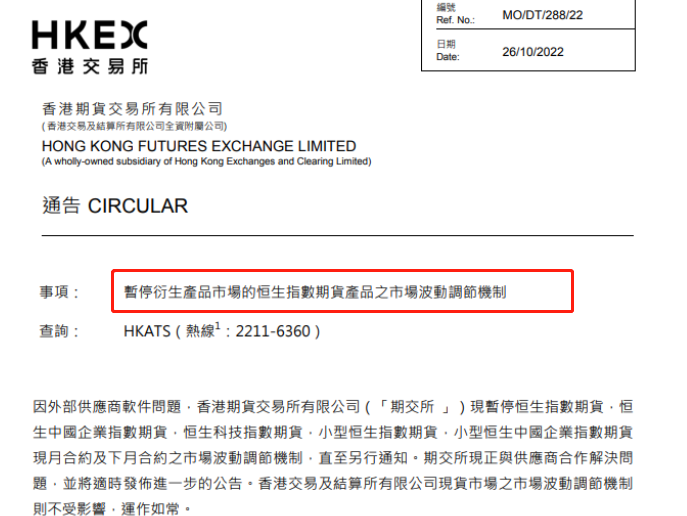 编者注:市场颠簸调治机制雷同于“熔断机制”,在证券或期货代价在短时间内出现暴涨或暴跌时,通过预设机制干预市场买卖业务,缓解代价的大幅颠簸。市调机制有助提示市场个别股份的代价大幅变动,让参加者于短暂岑寂期内重新评估其计谋和持仓,并作出投资决定。 10月26日早间,港交所发布了一则关于衍生品市场颠簸调治机制的公告: 也就是说,由于技能缘故起因,原来存在于衍生品市场的颠簸调治机制被停息,详细何时规复必要等港交所官方关照。 那么,市调机制到底是什么?停息后对于投资者而言影响大不大? 一、什么是市调机制?简单来说,港交所的市调机制(VCM)就是港股版的“熔断机制”,标的代价若在一个特定的时间内偏离凌驾预定的百分比,会触发一个5分钟的岑寂期,以便在有必要的情况下,为市场参加者留出一个“喘气”的机会,重新审阅他们的计谋,有助于在市场颠簸的情况下重新创建有序的市场。 留意的是,本次港交所只停息了衍生品市场的颠簸调治机制,而非证券市场的颠簸调治机制。 二、市调机制涵盖哪些合约?港交地点2016年就推出了衍生品市场的市调机制,并在2020年举行了改版,根据最新机制,港股市场颠簸调治涵盖股票的范围包罗:恒生指数期货$HSImain.HK、小型恒生指数期货$MHImain.HK、恒生中国企业指数期货$HHImain.HK、小型恒生中国企业指数期货$MCHmain.HK及恒生科技指数期货$HTImain.HK中的首两个合约月份。 除了衍生品市场之外,证券市场也同样存在市场颠簸调治机制,其应用范围和触发门槛如下: 必要留意的是,以上机制不会停息买卖业务,也并非用来限定合约逐日的代价波幅,而且根据优化后的规则,市场颠簸调治机制在每个买卖业务时段可被多次触发。 三、衍生品市调机制详细运作过程?1.在衍生产物市场,倘若市调机制买卖业务所合约的代价偏离 5 分钟前的末了成交价凌驾±5%(市调机制参考价),便会开始一个 5 分钟的岑寂期。 在岑寂期内,容许买卖业务在代价限定内举行。在岑寂期后,将规复没有限定的正常买卖业务。 2.市调机制实用时段:正常买卖业务时段中某段时段(09:30 至 12:00 及 13:15 至 16:10)的买卖业务指示(市调机制买卖业务所合约买卖业务盘) 3.不实用的时段: 开市 - 早市及午市买卖业务时段的首 15 分钟不设市调机制监测,以便买卖业务时段开始时可自由地举行代价发现; 午市买卖业务时段 - 午市买卖业务时段的末了 20 分钟1不设市调机制监测,确保该时段; 竣事前有 15 分钟可自由地举行代价发现,制止投资者因难以将克日的持仓平仓而蒙受隔夜风险。 泉源:港交所 四、停息衍生品市调机制,对投资者影响大吗?小编扒了一下汗青资料,发现港股曾经在2019年9月5日出现过衍生品市场出现买卖业务故障,差异的是,官方于下战书2点停息了衍生品市场买卖业务。 据新浪财履汗青当天的报道,当时体系在9时30分已开始出现非常,9时30分后期指每分钟成交量只有数十张,以致低见20张,与通常成交数百张差甚远,当日只成交1.9万张,即相称凌驾90%的订单都未能成交。 分析人士表现,“由于期货或期指有杠杆,加上买卖业务资源较低,机构投资者一样寻常会使用期货市场作现货市场的对冲,比方当现货市场出现急性急跌,他们则可以在期货市场摆设,但由于本日克制买卖业务未能做对冲,为减微风险,机构投资者就会减低持仓,导致成交量降落。 当日晚间,香港买卖业务所发布官方公告确认,由于供应商提供的买卖业务体系软件出现标题,影响衍生产物市场;正与供应商相助办理此标题,并将适时提供最新消息。香港买卖业务所与相干体系供应商颠末详细的观察及检测后,决定9月6日规复衍生产物市场之买卖业务。因此从上一次履历来看,港交所对于衍生品市场故障处置惩罚的服从还是较为敏捷的。 回到本次因技能相助方的缘故起因导致市场颠簸调治机制停息,港交所本日指出,期交所现正与供应商相助办理标题,并将适时发布进一步的公告,至于香港买卖业务及结算全部限公司现货市场之市场颠簸调治机制则不受影响,运作如常。 华盛资讯将会一连跟进变乱相干消息,投资者可以收藏本文留意更新情况。 五、港股和美股的“熔断机制”有何差异?港股的市调不会欺压上市公司停息市场买卖业务,别的,市调机制将于每个买卖业务日上下战书各容许一段「岑寂期」,触发机制的股份在「岑寂期」内只能于限定的代价区间内举行买卖业务。 风险及免责提示:以上内容仅代表作者的个人态度和观点,不代表华盛的任何态度,华盛亦无法证实上述内容的真实性、正确性和原创性。投资者在做出任何投资决定前,应团结自身情况,思量投资产物的风险。须要时,请咨询专业投资顾问的意见。华盛不提供任何投资发起,对此亦不做任何答应和包管。 |