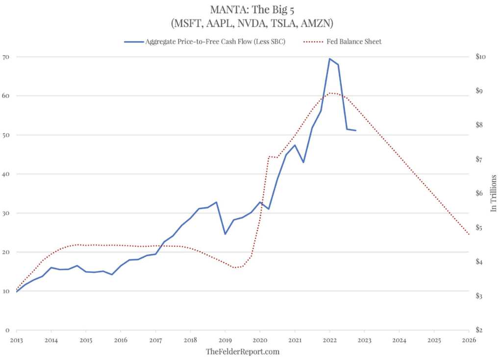 美国科技股三季报惨烈无比,带崩股价重挫市场信心,但这大概只是个开始。 受益于环球钱币宽松和科技进步,美股在已往十年间履历了超长牛市。此中,以FAANMG代表的科技类公司体现尤为亮眼,成为了推动纳指以致整个美股不停走高的“发动机”。 但美联储激进加息正在扭转潮水的方向,曾经风光无穷的科技股无论是业绩照旧股价,都在经济阑珊阴云和不停飙高的利率下首当其冲。 加上疫情红利退去、斲丧者付出放缓、美元走强、通胀上升,曾经斗志昂扬的科技股也顿时困绕在愁云惨淡之中,反复因淘汰开支、冻结雇用、裁人而登上媒体头条。 美国科技股最好的期间竣事了。 超三万亿美元“灰飞烟灭” 在停止10月27日的一年里,FAANMG的市值合计淘汰了3.39万亿美元,同比下滑35%。 此中,同心用心All in元宇宙的Meta最为惨烈,一年时间里市值打了三折(-70%);谷歌紧随厥后,市值蒸发66%,因经济放缓重创了广告需求。 奈飞只管三季度业绩亮眼,用户增长势头迅猛,关键指标全面碾压预期,但已往一年市值依然遭到了腰斩(-55%);亚马逊、微软市值分别下滑34%和29%。 在这轮科技股史无前例的大规模抛售中,苹果算是站稳了脚跟,市值微跌2%。 “估值回归”才刚刚开始 美国科技股的高估值和美联储上一轮的宽松政策有很大关系。 费尔德投资研究(Felder Investment Research)首创人Jesse Felder指出,假如把微软、苹果、英伟达、特斯拉和亚马逊(MANTA))的市值与它们的总自由现金流举行比力,你会发现它们的预期市盈率是50倍。 这比2022年初的70倍有所降落,但依然非常高。 Felder体现,只有美联储大量印钞支持现金流和钱币乘数,才有大概出现这种汗青性的高估程度。然而,如今通货膨胀肆虐,“印钱的呆板开始倒转,这已经产生了显着的影响”。 下图可以非常直观地看出,科技股的估值和美联储资产负债表规模之间明显的正相干关系。假如美联储兑现其在将来几年实现资产负债表正常化的答应,那么这种估值的回归才刚刚开始。 “金丝雀”报警,美股危? 科技股的财报里充满了经济放缓对数字广告、云盘算和芯片需求远景的灰心信号,对美股和美国经济来说也是一记重击。 面对科技巨头们接连爆出“连续恶化”的业绩,清静洋投资管理公司(PIMCO)克日体现继承加大押注做空美股。10月26日,PIMCO资组合司理Erin Browne 体现,他们正徐徐将空头头寸设定到更高的程度,她体现,科技巨头迩来的红利逆境预示着市场接下来的走势: “在已往一周左右的时间里,我们不停在将空头头寸设到更高的程度。下跌并没有竣事。对于整个美股行情而言,科技股就是煤矿中的‘金丝雀’。 ” 同时,Browne以为,市场对于预期美联储会放慢加息步调的乐观感情是不成熟的,她说: “我会淡化基于这种预期的反弹,我们必要在意的是广泛的红利降落,并下调对来岁的预期。在将来,我们会看到一些市场的触底反弹,但如今我们离那尚有一段路要走。 |