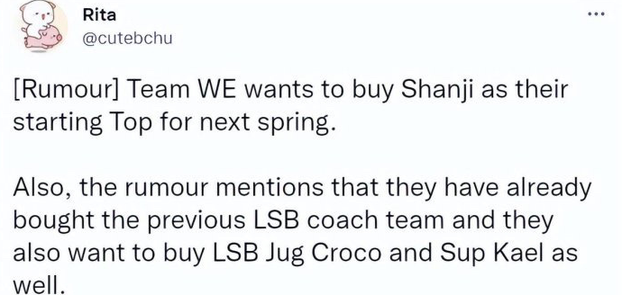 天下赛还没竣事,各大赛区已经开始准备冬转阵容设置。LPL到场天下赛出局的三支队伍,以及其他未能到场天下赛的战队,都被爆出职员变更消息。 外网有网友报道,WE冬转想要买山鸡作为他们来岁春季赛的上单,同时也有浮名称WE已经买了LSB的前锻练团队,而且还想要买LSB的打野Croco和辅助Kael。 先不管消息真假,单看这个阵容,以往抠搜的WE,本年是预备下本了啊!渴望WE能在冬转组建一个好阵容,夺回昔日的荣光,不要再吃老本了。 国内有人爆料BLG疑似在S13组建全冠班。阵容设置:TheShy、Ning/Tian、Rookie、Jackeylove、Crisp。 且不说以往银河战舰的了局有多惨,如今能把上面这些身价极高的选手凑在一起可不容易。叔叔真要是搞起来了,哪怕不夺冠,也会赚的盆满钵满。 风趣的是,就在各人抱负BLG组建全冠班的时间,网上出现别的一条消息,截胡BLG。 某网友放话,TES已经和打野选手续约,三年2800W,同时也以AD最高薪续约Jackeylove。 不外,BLG和TES的内容都是传言,究竟是BLG组建全冠班,还是TES续约小天和JKL,各人可以到冬转期再看。 除了以上战队,EDG止步八强后,疑似冠军阵容要遣散。多个业内人士放出EDG的转会消息。 前V5锻练涵艺发微博告诉网友,EDG的AD选手Viper条约到期后大概率返回LCK,参加的战队大概是DK。如今,网上已经在讨论Viper参加DK,DK来岁会走到哪个高度。 别的,有传言说EDG会想尽办法留住Meiko和Scout,两人是建队基石,Jiejie很大大概也留队,而圣枪哥小概率被更换,由于国产上单里,能替换圣枪哥的都是别队的香馍馍,EDG欠好抢。 总的来说,本年冬转有36位LPL选手条约到期,此中包罗Rookie、TheShy、Xiaohu、Ming、Jackeylove、Tian等明星选手。如果LPL战队颠末前两年的折腾,还能砸的动钱,一定会劳绩一个不错的春季赛阵容。 我个人还是比力渴望BLG能实现S13全冠班的,不为别的,就想看曾经IG的三C重聚,以及Jackeylove辅助换成Crips,下路会是怎样的生态。 |