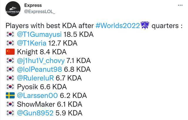 S12环球总决赛中,T1.Gumayusi的状态有多火热? 这是外媒Express在S12八强赛之后公布的KDA排行榜,T1.Gumayusi以18.5的超高KDA占据第一! LPL选手仅有一人上榜,就是TES的中单Knight。 Gumayusi的火热状态不但表如今数据上,而且表如今比赛中的表现上。 最能表现其状态的就是RNG vs T1这轮系列赛的第二场。 这场比赛,T1上路Zeus的杰斯直接被Wei给抓崩了,中路Faker在RNG野辅的反复光顾之下,也只能保持自己的发育,唯一有上风的就是T1的下路Gumayusi! RNG经济一起碾压,比赛举行到30分钟的时间,经济领先已经来到了六千以上。 但就是在云云劣势的情况下,T1依靠Gumayusi的霞完成了逆天翻盘,彻底打垮了RNG战队的士气,同时Gumayusi自己也打出了自负。 而最能表现其自负和操纵的名局面,就是第三局面对小虎塞拉斯的突袭,Gumayusi操纵韦鲁斯从容不迫地走位躲掉两个控制技能,然后转头继续输出。 对比MSI时期常常暴毙的Gumayusi,我们发现天下赛的Gumayusi真的不一样了! 他不但操纵拉满,而且稳得怒不可遏! 隐隐隐约有T1功勋AD选手Bang的味道了! 着实追念S11环球总决赛,Gumayusi选手的发挥就特别出色,一手烬在DK高地无人能挡,惊艳天下! 大概这就是网友们所说的天下赛Buff吧! 隔断半决赛尚有几天,Gumayusi的状态并没有由于休赛而下滑。 在昨天的Rank中,他一连七把利用了七个差别的豪杰,此中有打前期对线的复仇之矛和奥巴马、有后期大C轮子妈和厄斐琉斯、尚有Poke型的韦鲁斯和功能型烬。 可以看出Gumayusi的豪杰利用非常全面。 而且Gumayusi都在这七把对局中取胜,并拿下MVP! 如今题目来了,在即将到来的半决赛中,京东下路Hope能顶住Gumayusi吗? 京东在S12天下赛中走到如今,我们可以清晰地看到,京东下路的状态时好时坏,在八强赛对阵RGE的时间,还曾经被线杀。 我们再来看看Hope和Gumayusi在八强赛竣事后的数据对比: 场均击杀:3(6) 场均殒命:2(5) 场均助攻:6(2) KDA:4.5(3) 击杀占比:24.30%(7) 前10分钟经济差:5(4) 前10分钟履历差:8(4) 前10分钟补刀差:3.3(3) 分均伤害:564(5) 伤害占比:23.90%(5) 场均击杀:6(1) 场均殒命:0.67(1) 场均助攻:6.67(1) KDA:19(1) 击杀占比:32.70%(2) 前10分钟经济差:216(2) 前10分钟履历差:128(3) 前10分钟补刀差:7.3(2) 分均伤害:570(4) 伤害占比:22.30%(7) 可以看到Hope仅仅在伤害占比上领先于Gumayusi,而在其他数据上都惨遭Gumayusi的碾压。 因此,在即将到来的半决赛中,当T1和JDG中上野睁开剧烈对抗的同时,下路Hope能不能顶住Gumayusi的压力,将成为JDG能否降服T1的关键! 你怎么对待即将到来的这场比赛呢?欢迎留言交换。 |