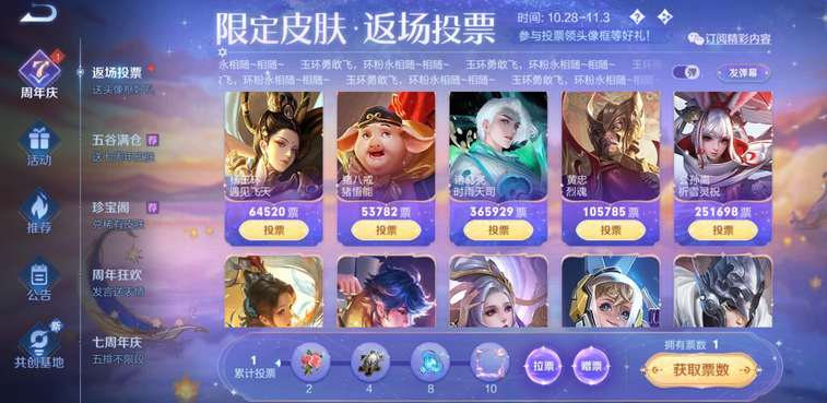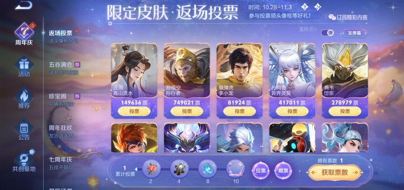 苦瓜原创,翻版必究! 《苦瓜电竞》--让你体验不一样的电竞主播圈! 王者光彩7周年庆活动火爆来袭,对于每一个王者光彩玩家来说,这个活动肯定是不会错过的,毕竟一年就一次,官方自然是预备了超多的福利,以致还包罗白嫖的皮肤,这么惆怅的白嫖时机,老玩家都会在这几天登录游戏感受,真的很值得。 别的,每一年的周年活动,有一个环节都是备受关注的,那就是返场皮肤,这次返场皮肤池子里一共有20多款皮肤,辅助玩家很有福气,庄周一下子就有三个在此中,就是不知道能不能脱颖而出了。 着实这种返场皮肤的投票,根本上几个小时各位就可以或许猜到了局,特殊是冠军,那都是众望所归的。这一次的冠军大概率是猴子锁定了,这款孙行者皮肤,热度太高了,才短短几个小时,投票就腾飞了,直逼百万,不可思议。 有猴选猴,果真不是盖的,固然,紧张也是孙行者这款皮肤,太有拿下的代价了,险些打野玩家都会入手。 冠军大概率定了,亚军夺取就格外猛烈了,开始以为是时雨天司的,效果现在看来,孙尚香很争气啊,真的等候末了的效果,毕竟投票还在继续呢。 各位以为,亚军皮肤会是谁呢?竞争确实很猛烈,感觉末了时雨天司会逆袭,大概说,来一波遇见胡璇的逆风翻盘。 我是苦瓜,我为自己带盐!(不带油) |