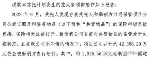 本文泉源:期间财经 作者:刘子琪 图片泉源:图虫创意 千万没想到,电视剧里的商战剧情竟在实际中上演了。 克日,有投资者称,收到来自中融信托的《中融-丰腾83号聚集资金信托操持第2次暂时管理陈诉》(下称《管理陈诉》)。 图片泉源:网络 《管理陈诉》称,2022年9月,中融信托发现存放中融信托和融创房地产团体有限公司(下称“融创”)共同保管塔子湖置业章证照及印鉴等共管物品的保险柜锁芯被换,保险柜无法打开。 别的,塔子湖置业预售资金羁系账户中约11.4亿元资金被划走。此中,1343万元划转至武汉融创基业控股团体有限公司账户,剩余约11.2亿元划转至武汉市江岸区人民政府塔子湖街道服务处设立的塔子湖项目专户。 10月27日,融创和中融信托均承认确有此事,同时均表现划转资金已在政府羁系中。不外,就划转缘故原由,两边却各执一词。 中融信托回应称,“变乱发生后,中融信托立刻向融创方提出严正谈判,并第一时间向本地公安构造报警,敏捷采取法律本领,完成了塔子湖置业剩余10%股权及公园大观项目剩余未售在建工程查封。” 融创则向媒体表现,“干系资金账户管理是在有关部门的羁系下举行,资金也会用于保交楼,不存在融创擅自调用去他途的情况。” 10月28日,中融信托河南分部副总司理尤豫鄂向期间财经表现:“许多人对划走的钱有误解,起首划走的钱是融创自己的钱,原来这是融创和中融两边共同的羁系账户,按理说(融创)不应该在中融信托没有应允的情况下把这笔钱划走。” 尤豫鄂称,对于融创来讲,大概存在自身的一些经济压力,这才导致了其在未经允许的情况下将羁系中的资金划走。 对于后续处置处罚的效果,尤豫鄂则表现:“必要走流程,末了应该也会公布处置处罚效果的。” 同日,期间财经致电融创,制止发稿暂未有人接听。 值得一提的是,不止中融-丰腾83号的11亿被挪走,别的一个信托产物中融-承安96号,也被融创撬锁挪了4.23亿。 图片泉源:网络 有信托人士向期间财经透露,在大多数信托操持中,信托公司基于受托人任务,有对项目公司实行监视和管理的责任,但也有的信托公司把房企当成一样平常乞贷人,基于以往的信誉放贷,不对资金举行任何羁系。 上海兰迪状师事件所高级合资人、刑事部主任田磊状师则向期间财经表现,保险柜上锁只是一种物理管控步伐,是公司内部管理的规制方法,偷换锁芯可以明确为是逾越内部管理权限、违反股东间约定的举动,逾越权限的一方大概面临对内的责任,但无法对抗善意第三人。 田磊称,划转至武汉市江岸区人民政府塔子湖街道服务处设立的塔子湖项目专户的11.2亿元,资金用途并没有标题;划转至武汉融创基业控股团体有限公司账户的1343万元,要看划转的来由,假如是抽逃出资,大概调用资金都涉嫌违法,乃至有大概构成犯罪,假如是归还乞贷等合法来由,则不违法。 据中融信托官网,中融-丰腾83号聚集资金信托操持创建于2021年3月31日。现在,该产物处于延期状态。 此前,吉华团体(603980.SH)曾发布公告,提及该公司所持逾期的信托产物详细情况时指出,中融-丰腾83号聚集资金信托操持底层资产为武汉市武昌区姚家岭村K1地块、K2地块项目开辟,实质交易业务对手为融创房地产团体有限公司;该项目投资金额3000万,投资限期2021年4月30日-2022年4月30日,利率7.2%。 吉华团体表现,经中融信托与融创团体沟通,该项目延期至2023年3月31日,利率改为7.5%。 |