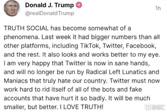 所谓新官上任三把火,马斯克花了440亿美元换来一个新头衔后,已经在快马加鞭地大刀阔斧了。 “手起刀落”马斯克本地时间10月27日,马斯克完成推特私有化生意业务掌管公司。紧随厥后,就敏捷开除了大量推特高管们—— 包罗首席实验官 Parag Agrawal 、首席财政官Ned Segal、总法律顾问Vijaya Gadde,他们曾经都是决定冻结特朗普推特帐户的紧张高管之一。 马斯克周五晚上表现: “任何因轻微和可疑缘故因由而被停职的人都将从 Twitter 监狱中获释。” 但他没有详细阐明何时可以规复停息的账户。特斯拉首席实验官发起他重新思量 Twitter 对内容考核和永世禁令以及限定平台上呆板人数目的方法。 陪同推特收购一事落定,用户之间也引发了关于马斯克领导下该平台将是什么样子的讨论。 许多守旧派和其他言论自由提倡者命令马斯克规复比年来因违反 Twitter 规则而被停息的着名流士的账户。然而,马斯克周五表现,在创建“具有广泛差别观点的内容考核委员会”为这些决定提供发起之前,不会做出巨大的内容决定或帐户规复。 除此之外,马斯克还告诉广告商推特不会成为“免费的地狱景观”。值得一提的是,通用汽车周五便宣称,在马斯克担当外交媒体平台推特后,通用汽车将停息在推特上的广告投放。 通用汽车表现,在评估推特的新方向时,将停息广告投放。不外该公司将继续利用推特与客户互动,但不会为广告付费。在是否停息在推特上投放广告大概不再利用推特这一外交平台的题目上,包罗福特、Stellantis和Alphabet持股的Waymo在内的汽车公司均没有做出回应。 而对于马斯克一系列的大动作,也有欧盟互联网监专员告诫称,外交媒体在欧洲必须服从欧盟的规则。日前,欧盟内部市场专员Thierry Breton回应马斯克推文“这只鸟自由了”称: “在欧洲,这只鸟将按照我们(欧盟)的规则飞行,” 据悉,欧盟正在实验具有里程碑意义的立法,旨在束缚美国科技巨头的权利,迫使它们更精密地检察非法或有害的在线内容。而Thierry Breton的回应也表明,欧洲羁系机构将对推特政策的任何放松接纳倔强态度。 特朗普:偶尔回归推特推特迎来马斯克之后,从前”推特治国“的超等顶流——特朗普会否回归呢? 在2021年1月6日美国国会大厦打击变乱发生后,推特便决定永世封禁特朗普的账号,来由是其账号“有进一步煽惑暴力的风险”。 一气之下,特朗普在同年10月公布创建了自己的外交平台“TRUTH SOCIAL ”(真实外交)以“对抗互联网科技巨头的霸权”。 而在还充公购推特之前,马斯克就曾表现,他将允许特朗普重返该平台。以是在马斯克入主推特后,外界也纷纷推测特朗普回归也不远了。 然而这一次,各人却都没猜对,这位曾经的推特重度用户没故意愿归去。 据美国福克斯消息本地时间28日报道称,特朗普回应表现,现在偶尔回归推特,自己筹划留在“真实外交”平台,还表现: 我喜欢马斯克,祝他好运,渴望他好好干。 我以为少了我,推特不能取得乐成。 我会继续待在”真实外交“,我更喜欢这里的运作方式,我也喜欢马斯克,但我要留在”真实外交“里。 别的,特朗普还在其个人外交平台“TRUTH Social”发文回应称: 真实外交已经变成了一种征象级的东西。上周,真实外交的用户已经凌驾了其他全部平台,包罗TikTok、推特、脸书,尚有剩下的全部。在我眼中,真实外交的体验感更好。 特朗普表现很高新推特现在归一个理智的人管了。现在,推特必须积极拜托僵尸粉和假账号的伤害。用户数字会降落,但质量会更好。 |