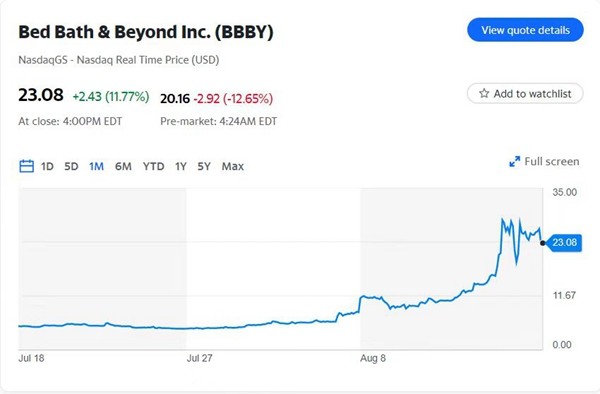 在连续沉寂了半年多后,由于7月美联储议息集会开释出被市场解读为“鸽派”的信号,在Reddit的WallStreetBets论坛上的美国散户们的投资热情也被重新点燃,再度开始逼空华尔街,大幅推升了Bed Bath&Beyond(家居企业,下称“3B家居”)、AMC影业等“散户概念股”。但不少分析师不无担心地警示称,散户投资者须要当心“散户概念股”的走势突然逆转。 言犹在耳,这一反转似乎已经到临。3B家居本周突然遭到游戏驿站担当董事会主席、有“散户概念股之王”之称的科恩(Ryan Cohen)清仓。仅在一天前,散户还因科恩增持该股看涨期权而继续跟进。 热门股被批是“巨大的烂摊子” 在散户新一轮狂热之下,成为“散户概念股”新龙头的3B家居本月以来股价累计飙升了359%。 3B家居成为了散户投资者买卖业务最为活泼的个股,日内成交量凌驾3.85亿股,是三个月均匀程度的20倍以上。 根据追踪散户买卖业务的万达研究公司(Vanda Research)汇编的数据,自7月26日以来,散户投资者已向该股注入了9900万美元。本周一,该股净流入4600万美元,创下汗青纪录,令股价当日飙升24%,收于4月尾以来的最高程度。一些散户仍在押注股价进一步上涨。数据体现,押注该股在本周末之前买卖业务代价将凌驾45美元的看涨期权以及押注该股到来岁1月中旬上涨至80美元的其他合约,是与该股干系的最活泼的衍生品之一。3B家居是富达(Fidelity)投资平台上被购买最多的股票之一,买入订单是特斯拉的两倍多。 AMC影业的股价从6月17日标普500指数触底以来,制止17日收盘也实现了100%左右的涨幅,8月至今涨幅也到达47%。AMC影业也是富达平台上五只散户投资者买入最多的股票之一。 这两家公司以及游戏驿站(GameStop)的股票代码,也是在美国“散户大本营”Reddit的WallStreetBets论坛上被提及最多的。 除了“散户概念股”,美国散户近期还大肆买入了美股科技股和其他发展型股。根据Vanda Research的数据,7月下旬,美国散户购买一篮子热门科技股的数目再度到达2014年以来的最高程度。上述一篮子股票包罗Facebook母公司Meta、亚马逊、苹果、奈飞和谷歌母公司Alphabet(即科技巨头FAANG),以及特斯拉和微软等少数其他大型科技股。与此同时,以科技股为主的环球最大ETF——SPDR S&P 500 ETF Trust和Invesco QQQ Trust ETF再度成为最受美国散户接待的押注。 但散户们对大多数“概念股”的根本面以及策划远景根本不屑一顾。 3B家居最新季度财报体现,实在体门店贩卖额降落了24%,营收降落至14.6亿美元。如今,该公司资产负债表上仅存1.07亿美元现金,而债务却高达32.8亿美元。Global Data的董事总司理桑德斯(Neil Saunders)针对3B家居最新财报发表品评称,该公司暂时首席实行官休·戈夫(Sue Gove)继续了一个“巨大的烂摊子”,“该公司如今处境非常糟糕,它须要在财务状态非常疲弱、家居市场低迷的情况下,美满其转型战略”。 “散户概念股”的回归背后,是市场风险感情回升之下,散户投资者乐意负担高风险调换高回报的投资心态。 在新一轮“散户概念股”狂热下,机构投资者再度遭遇逼空。以3B家居为例,金融分析公司S3 Partners的数据体现,3B家居卖空者本月按时价计的账面丧失达6.62亿美元,AMC影业卖空者本月的丧失也高达6.53亿美元。S3 Partners的董事总司理伊霍尔·杜萨尼维斯基(Ihor Dusaniwsky)稍早在一封电邮中体现,该股“承压本事很强”,而且大概会继续被推高,因空头大概会被迫回补。 产业管理公司Mirabaud Securities的买卖业务员泰勒(Mark Taylor)体现:“华尔街那些聪明人再度为散户的举动感到狐疑,对于散户为何突然重新竞相购买并推高‘散户概念股’缺乏真正的明白,大概会导致一些关于利用股价方面的恶意推测,也大概导致机构投资者的酸葡萄心态。” 科恩申请清仓3B家居 但就在散户概念股狂热仍然之际,美国证监会(SEC)周三盘后披露的文件体现,科恩旗下的投资公司RC Ventures已在当地时间周二(16日)申请通过摩根大通证券在将来90天内清仓其持有的包罗167万看涨期权在内的全部945万股股份。RC Ventures是3B家居的第二大股东,持股比例仅次于贝莱德。制止4月21日,RC持有该公司11.8%的股份。 科恩在2021年年初的散户世纪逼空大战中,活泼于Reddit的WallStreetBets论坛,领导美国散户逼空华尔街机构,拉升了游戏驿站等一系列“散户概念股”,并在客岁4月高调公布参加游戏驿站担当董事会主席,因而有“散户概念股之王”之称。而此次清仓最为风趣的一点在于,仅仅在提交清仓申请前一个买卖业务日,即本周一盘后,科恩还分别买入了行权价为60、75和80美元的BBBY的看涨期权,来岁1月到期,对应股数为近167万股。当时,Reddit散户因看到科恩继续做多3B家居,还再度跟随拉升股价,令其股价在16日继续收涨超70%,盘中最高曾涨78.8%。 不外,在科恩清仓消息影响下,3B家居股价盘后暴跌,跌幅一度凌驾18%。制止第一财经记者18日下战书发稿时,跌幅收窄至12.65%。其他“散户概念股”也在盘后出现差别程度的下跌。对于科恩申请清仓的做法,Reddit散户们众说纷纭,有分析称科恩并未真正清仓的,有质疑科恩为何“叛逆”的。但记者翻阅WSB论坛发现,有不少散户在晒账户,并体现刚强看涨3B家居,一些发帖人还再次提到YOLO(人生只有一次)“打鸡血”,以此鼓励更多散户继续做多。 狂热后终将回归根本面 究竟上,本轮“散户概念股”大涨背后的买卖业务逻辑,与客岁年初时并无二致,照旧散
