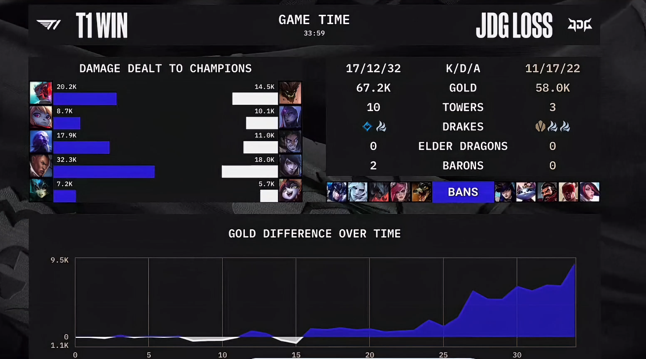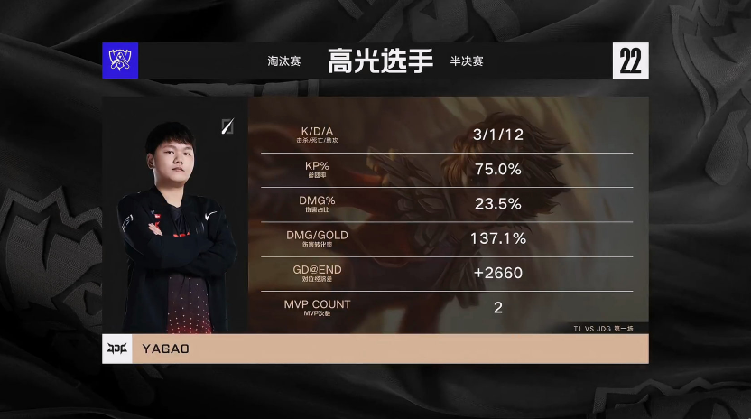 豪杰同盟S12火热举行中,腾讯消息将为您带来一手赛事资讯,为您出现全方位的电竞盛宴。 S12天下赛JDG和T1的半决赛,终极T1以3-1的镌汰了JDG,晋级决赛,LPL战队至此全员出局,竣事了本年S12天下赛的旅程。 第一局T1上单青钢影,打野蔚,中单加里奥,下路卢锡安加娜美;JDG上单贾克斯,打野佛耶戈,中单岩雀,下路厄斐琉斯加璐璐。8分钟oner蔚抓下,击杀了JDG下路双人组,T1拿下了一血,不外JDG换掉了Gumayusi卢锡安。15分钟JDG上路抓死Zeus青钢影后,推掉了上路一血塔。前期JDG经济领先1K。中期双方一度有来有回,直到30分钟,JDG选择拿下风龙魂,但是T1偷下了第一条大龙。35分钟hope厄斐琉斯在中路失误被击杀,随后T1选择打太古龙,JDG赶来防守,Hope厄斐琉斯复活,JDG打出了一波4换2,制止了T1打太古龙。37分钟,JDG拿下了太古龙。38分钟,JDG选择打大龙,T1赶来后,JDG直接开团,利用太古龙Buff击杀JDG三人后,一波竣事了角逐。MVP给到了牙膏岩雀。 第二局T1上单永恩,打野波比,中单瑞兹,下路卢锡安加娜美;JDG上单石头人,打野卑尔维斯,中单塞拉斯,下路厄斐琉斯加璐璐。2分钟下路2V2对拼,打出了一波1换1,hope厄斐琉斯拿到了一血。11分钟369石头人在下路失误被击杀,随后牙膏塞拉斯也赶来,被击杀。前期双方经济根本持平。中期23分钟,T1直接偷下了第一条大龙。24分钟JDG在中路击杀T1两人后,拿下了听牌龙,T1则是三人在上路推掉了JDG上路高地。26分钟,hope厄斐琉斯中路被击杀,同时T1在下路击杀JDG中辅两人,然后破掉了JDG中路高地。后期33分钟,JDG在上路抓死了Faker,但是T1其他人赶来团灭JDG后,拿下第二局的胜利。Gumayusi卢锡安打出了全场最高伤害。 第三局JDG上单鳄鱼,打野佛耶戈,中单沙皇,下路厄斐琉斯加璐璐;T1上单船长,打野梦魇,中单瑞兹,下路卢锡安加娜美。3分钟kanavi佛耶戈抓上,越塔击杀了zeus船长,369鳄鱼拿到了一血。13分钟JDG推掉了上路一血塔,369鳄鱼随后单杀zeus船长。前期T1经济领先1K。中期18分钟369鳄鱼再次单杀Zeus,不外自己也被T1其他人换掉。20分钟Hope站位过深被抓,T1击杀了JDG上辅后,拿下第一条大龙。22分钟369鳄鱼在上路单杀Faker瑞兹,同时JDG其他人在中路击杀T1三人,25分钟Faker瑞兹单杀369,T1拿下听牌龙。29分钟T1偷下第二条大龙,而且在野区抓死kanavi佛耶戈,随后在中路团灭JDG后,一波竣事了角逐。 第四局JDG上单猪妹,打野卑尔维斯,中单塞拉斯,下路烬加扇子妈;T1上单酒桶,打野佛耶戈,中单沙皇,下路韦鲁斯加烈娜塔。2分钟下路2V2对拼,missing扇子妈被击杀,T1拿下了一血。12分钟JDG推掉了上路一血塔。14分钟T1下路双人组对线击杀JDG下路双人组。前期T1经济领先1K。中期16分钟双方夺取峡谷先锋,Keria烈娜塔R四人,JDG固然拿下了先锋,但是4人被击杀。17分钟JDG在中戮营团,但是缺乏伤害,T1团灭JDG后,拿下听牌龙。19分钟JDG下路抓人,Keria烈娜塔再次美满大招,T1击杀JDG四人后,拿下第一条大龙。22分钟T1在野区团灭JDG,23分钟T1拿下水龙魂。终极24分钟,T1拿下角逐的胜利。 那么,对于这场角逐,你们有什么想说的吗?接待在品评区留言探究。 |