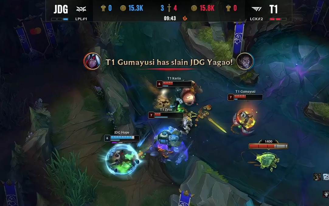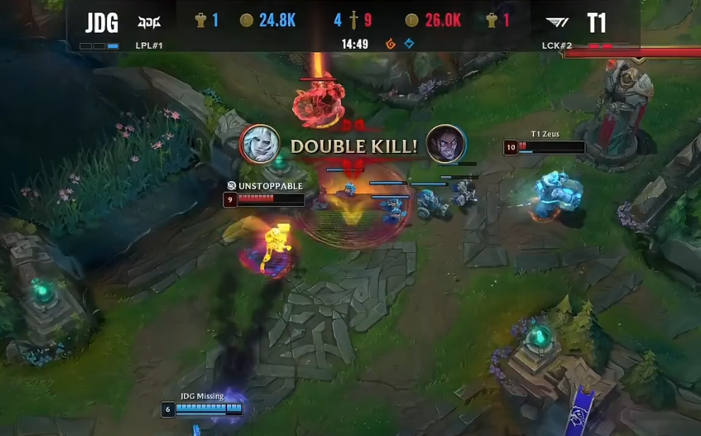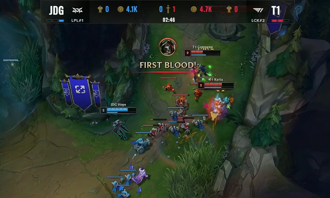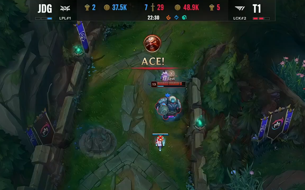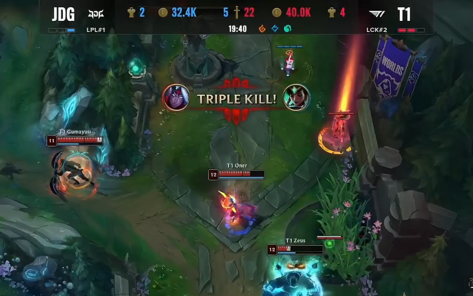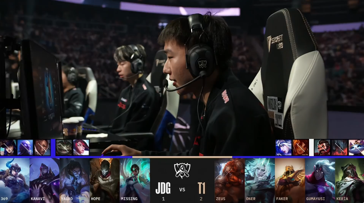 北京时间2022年10月30日,S12环球总决赛迎来了JDG与T1的半决赛Bo5对决!以下是这一轮Bo5第四局的战报! 双方BP JDG:猪妹、卑尔维斯、塞拉斯、烬、卡尔玛 T1:酒桶、佛耶戈、沙皇、韦鲁斯、烈娜塔 比赛开始没多久,双方在下路发作2V2团战,依附着keria的控制,T1乐成拿下Missing卡尔玛的“一血”,完成线杀。 比赛时间7分钟左右,369猪妹步行至下路,资助JDG双人路拿下Keria烈娜塔的“人头”,369这波增援让人泪目。比赛时间9分钟左右,JDG与T1在峡谷先锋发作5V5团战,依附着Keria烈娜塔R闪,T1打出2换3团战。不外幸好的是,JDG乐成拿到了峡谷先锋。 14分钟,T1双人路了忽然发力,Gumayusi与Keria完成了“线杀”乐成“击杀”掉了Hope的烬与Missing的卡尔玛。随后,JDG乐成在中路“击杀”了Faker,但是被Faker沙皇放出大招,而T1完成反打,这波中路的团战T1打出了1换3。JDG陷入劣势。 比赛时间16分钟左右,T1与JDG发作峡谷先锋团战,依附着更加出色的表现,T1打出完善0换4团战。紧接着,JDG与T1又在中路发作5V5团战,T1打出1换5团战,再次扩大自己的上风,JDG渐渐崩盘。 比赛时间19分钟,JDG与T1在下路再次发作团战,T1再次依附着Keria烈娜塔出色的表现打出0换4完善团战。之后,T1轻松拿下大龙,双方经济差渐渐来到了一万左右。 比赛时间22分钟左右,JDG与T1再次发作团战,固然JDG乐成“击杀”了Faker的沙皇,但被T1打出了1换5的团灭团战,双方经济来到了浮夸的1W2。 比赛时间24分钟,拿下水龙龙魂的T1,依附着巨大的经济上风以及水龙龙魂Buff,T1轻松击败了JDG,拿下了半决赛的终极胜利,乐成晋级决赛。 |