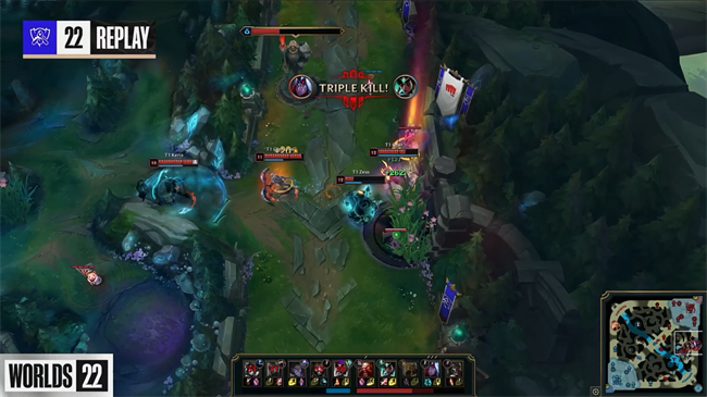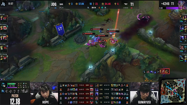 2022好汉同盟环球总决赛半决赛首场对决由LPL冠军JDG战队对上环球总决赛三冠王T1战队!胜者将得到第一张晋级S12决赛的门票。T1战队在先负一局的情况下依附全员神勇的发挥连追三局,让一追三3-1镌汰了LPL的末了渴望JDG战队,时隔五年再度杀入环球总决赛冠亚决赛。LCK赛区即将在决赛上演内战,提前锁定了S12冠军荣誉。 第一局 T1:卡蜜尔、蔚、加里奥、卢锡安、娜美 JDG:武器、佛耶戈、岩雀、厄斐琉斯、璐璐 T1在对线期的处置惩罚非常精致从边路占据了上风,厄斐琉斯在换血过程中交掉闪现引来了蔚的针对,面对T1下野包夹无奈交掉了一血,璐璐强行换掉卢锡安人头以后也被击杀。JDG中野乘隙拿到峡谷前锋,随后在上路想要针对卡蜜尔,不外T1的增援速率非常惊人,连娜美都灵敏游走过来形成一波4打3,武器和佛耶戈先后阵亡,岩雀换掉了蔚,同时下路JDG双人组越塔强杀了卢锡安。JDG应对T1的前中期卢娜攻势选择抱团防守,严谨地在资源团战里积极应对T1上中野的锁头攻势,制止被T1滚起雪球。 卡蜜尔在掩护队友推进中路一塔的过程中眼上蹲被JDG集火秒杀,加里奥为了救济队友也随之阵亡,JDG顺势发起反击拆掉中路一塔,随后两队在中路剧烈博弈,JDG在厄斐琉斯被秒的情况下依然通过武器的发挥击退T1拿到了风龙魂听牌。T1抓到JDG的阵型空缺忽然发动打击秒掉了璐璐和武器,灵敏转进大龙坑,JDG三人靠近龙坑吸引T1开团,通过拉扯反杀了蔚阻断了T1打大龙。接下来的风龙魂团战T1避而不战直接用大龙交换,武器资助队伍拿到风龙魂,不外T1也如愿击杀大龙满身而退。 太古巨龙革新前夕,加里奥在中路隔墙卡视野忽然闪现W拉到两人,T1一拥而上秒掉了厄斐琉斯,JDG被迫在太古龙团战里以少敌多,武器和佛耶戈掉臂齐备冲进龙坑吸引火力扰乱T1的节奏,拖到厄斐琉斯复活赶到战场以后通过双C的共同硬生生4换3击退了T1。JDG队员复活以后立即集结拿下太古巨龙魂,随后转进大龙欺压T1接团,通过爆炸伤害逐个击破将T1众人斩杀,中路一鼓作气拿下了角逐胜利,恭喜JDG先拔头筹1-0领先! 第二局 T1:永恩、波比、瑞兹、卢锡安、娜美 JDG:墨菲特、卑尔维斯、塞拉斯、厄斐琉斯、璐璐 T1双人组一级站草丛想要给压力,结果JDG双人组丝绝不怂,直接All in全部技能,强攻厄斐琉斯斩下了卢锡安的一血后被娜美换掉。中路卑尔维斯共同塞拉斯险些击杀瑞兹,不外关键时候波比前来救下了队友,瑞兹贪近回城被JDG中野发现逼入野区,被迫选择反向逃跑送塔。双方中野渐渐靠近下路,JDG保线逼退T1以后想要为卑尔维斯控下第一条小龙,但波比孤身一人闯进龙坑将小龙抢走,JDG顺势将波比击杀,还是资助卑尔维斯革新大招,而且在中路抓出了瑞兹的闪现。JDG换线以后在边路的打击略显急躁,出现失误给了T1一些机遇,双方中期依然保持着焦灼的均势,T1开始利用他们善于的分推运营来拉扯JDG的打击,通过强势的卢娜组合开始睁开克制。 在正面团战不占上风的情况下T1开始发挥瑞兹和永恩的作用,通过极致的分推运营拉扯分散JDG的留意力,而且利用JDG众人在下半区的机遇果断Rush偷掉了大龙,接下来瑞兹和永恩继承在上路分推彻底扰乱了JDG的节奏,几波交换下来令JDG丧失惨重,JDG急于在局部发起先手,结果被T1的反打逐个瓦解击破,阵亡三人以后丢掉上中两路高地。原来比力平衡的局面在短短几分钟内被T1撕开了突破口,一下子拉开了5千块的经济差距,JDG已经完全无法处置惩罚T1的分推。 两路高地陷落以后JDG也无力图夺第二条大龙,只能在T1推进下路时探求末了的强开机遇,但T1一边利用偷家扰乱JDG一边围绕卢锡安睁开反击,乐成地化解了JDG的反扑险些一波竣事角逐,JDG高地水晶复活暂时延缓了T1的推进,但依然很难找到翻盘的机遇。33分钟JDG会集火力抓死瑞兹以后却难以处置惩罚正面的永恩卢锡安,被T1逐个击破以后推平了基地。T1扳回一城,双方战成1-1平手。 第三局 JDG:鳄鱼、佛耶戈、沙皇、厄斐琉斯、璐璐 T1:船长、梦魇、瑞兹、卢锡安、娜美 佛耶戈速三抓上,共同鳄鱼越塔击杀了船长拿到一血,随后继承军训在草丛反蹲,梦魇前来资助船长双方发作上野2v2,佛耶戈阵亡但鳄鱼拿到了双杀。双方上野复活出来继承在上路皇城PK,梦魇和鳄鱼交换人头以后佛耶戈试图越塔船长遭到反杀。厄斐琉斯和璐璐与此同时也线杀卢锡安,但是被增援前来的瑞兹收下双杀,两队在边路的对抗非常剧烈,前期发育顺遂的瑞兹带给JDG下半区很大压力,迫使他们放掉了前期两条小龙,17分钟左右JDG放出前锋推进中路一塔,T1实验发起主动打击,但JDG从容应对反杀了娜美,鳄鱼在F6处匿伏单杀船长以后被T1换掉。 20分钟刚到,T1在中路通过卢娜先手斲丧,JDG想要反打却被拉开隔断,梦魇反手出场向导队友斩杀JDG三人,T1顺势拿到了大龙Buff!JDG中野无力制止,不外在下半野区抓死了瑞兹拿到1000块赏金以及一条小龙,接下来T1抱团推进中路施压,越塔强开击杀了JDG的双C,但鳄鱼在上路单杀瑞兹以后TP绕后共同队伍睁开反打,JDG打出一波2换4遏制住了T1的大龙攻势。T1不慌不忙继承围绕卢娜组合与JDG睁开鏖战,而且在边路分推强行换掉了JDG的下路高地,局面上拥有很大领先,34分钟T1抱团拿下第二条大龙以后在野区抓死了反野的佛耶戈,随后中路强开团灭JDG一波竣事了角逐,连扳两局2-1手握赛点。 第四局 JDG:猪妹、卑尔维斯、塞拉斯、烬、卡尔玛 T1:酒桶、佛耶戈、沙皇、韦