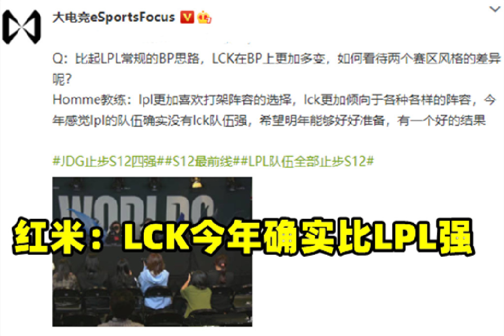【关注残影游戏,看LOL最新资讯,本日咱们聊聊JDG四强赛输给T1一事】 在S12的第一场四强赛对决中,JDG在先拿下T1一局的情况下,被T1连下三城输掉了这一局BO5。陪同着T1推平JDG,咱们LPL也是三军覆没了,一号种子JDG走到了末了,拿到了四强的效果。场上留下的三支队伍分别是晋级决赛的T1,已经即将开打的DRX与GEN,但对于LPL赛区来说,岂论第二场四强赛的效果怎样,决赛都会是韩国内战,这个了局信任各人都是难以担当的。 与S7相比,这一次的区别在于比赛园地不是LPL,以至于粉丝们纵然是遗憾,也没有那么的不甘。但在赛后,JDG锻练红米受访时所说,却还是令各人认清了实际。其时红米被问到了LPL的通例BP,与LCK的多变BP相比,两个赛区到底有什么差异?红米:LPL会更喜好打斗的阵容,而LCK则倾向于各种各样的阵容,而且感觉本年LPL的队伍确实没有LCK强,盼望来岁能好好准备,有一个好的效果。 对于这一番复兴,多数粉丝也是深表认同,曾经的LPL百花齐放,什么都敢玩,险些每一位选手都有自己的特色。但陪同S冠数目的增长,反而是LPL赛区吃起了老本,不光新人选手缺少上场机遇,不少战队还对峙着一套阵容一套打法。反观LCK这边,以致辅助位都出了大头这种豪杰,奶妈登场更是限定了LPL不少豪杰的发挥,从这一点来看,LPL徐徐没有了创造力。 说到这一点,残影也是不禁想起了当初的电竞发明家Able,Able固然说存在了不少黑料,但在发明套路这方面,在其时确实是引起了不小的热议,各种职业选手也纷纷效仿。但到了S12,创造力在LPL仿佛越来越少了,各人可以遐想一下LPL夏季季后赛的表现,各人都知道版本强势豪杰是卢娜、泽丽这些,因此,每次BP走完之后,场上永世都只是那几套阵容,只是换了一批选手在玩而已。 这也是为什么季后赛有不少玩家吐槽阵容单一,缺乏观赏性的缘故原由所在。此次S12天下赛,滔搏手热得太慢,在输给越南队之后,才有了一丝发力的感觉,但是为时已晚。RNG从入围赛开始打,小组赛第一轮显动手感有了提升,但第二轮由于种种缘故原由又开始下滑,四强赛更是被状态极佳的T1所镌汰。EDG这边在对阵DRX之时,多数玩家都看好EDG会赢,而且他也确实率先拿下了两场。 但是很遗憾,在DRX扳回两场后,EDG还是慌了,就连一直慎重的Scout也暴躁了起来,终极EDG也被镌汰。来到JDG对阵T1这一场,第一场JDG还能和T1一较高下,但到了第二第三局,就显着有些乏力了,以致第四局都让人猜疑:这和第一局的JDG是不是同一批人在玩?只能说这一次的LPL准备简直实是不敷充实,底牌太少了。打完前两局,反面直接衰竭了,对此,各人有何评价呢?欢迎在下方留言品评哦! PS:100%原创文章,手动打字不易,喜好的小同伴可以关注一波哦! |