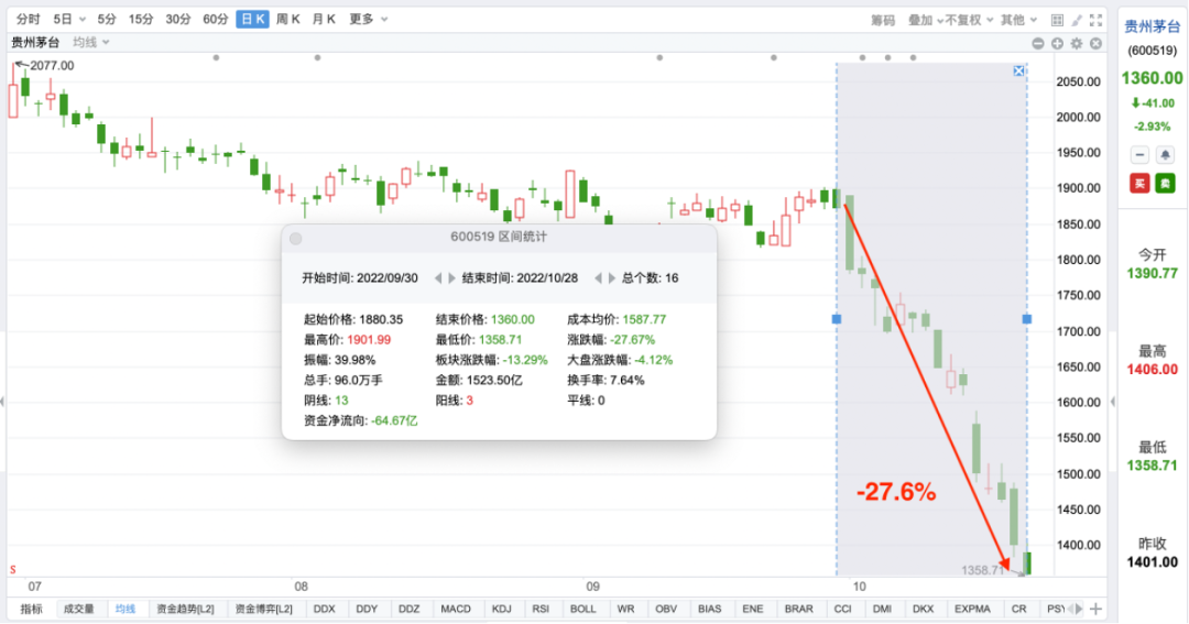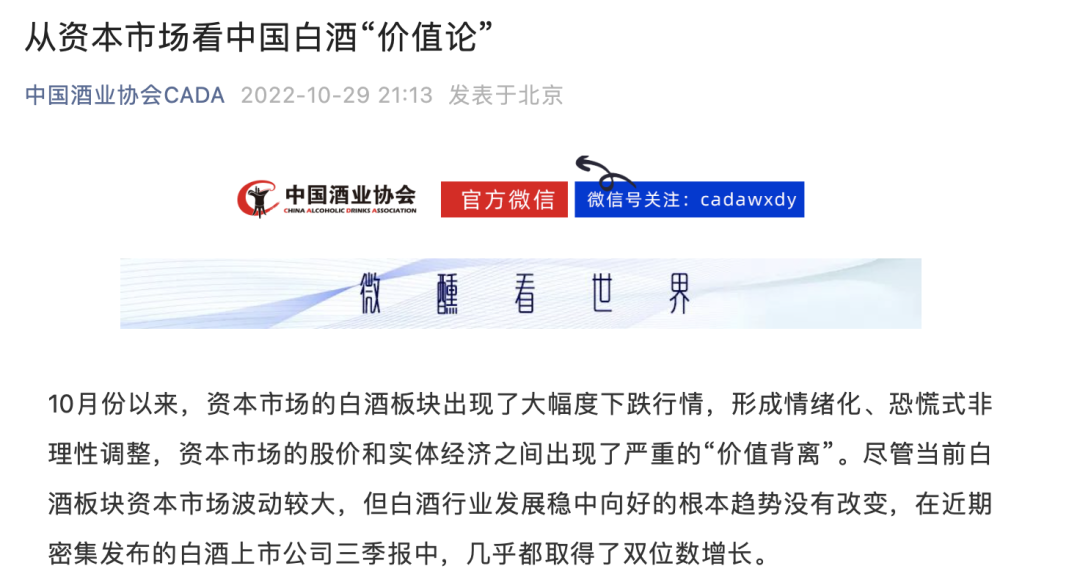 本年双十一提前吹响军号了,但扣头力度最大的地方,不在直播间,而在投资市场。 10月份以来,北向资金接连流出,现在流出规模已经高出500亿,整年资金由流入转为流出。此中10月24日,陆股通北上资金净流出179亿元人民币,创14年陆股通开通以来最大单日流出量。 外资流出引发了市场恐慌,近一周人民币汇率从7.1最多贬值到7.3,A股也差点跌破2900点,30个行业指数中有28个下跌,38个宽基指数中有37个下跌,市场感情相当低迷。 市场云云下跌,宏观根本面恶化了吗?并没有。 10月24日,中国公布了三季度经济数据。数据表现,中国前三季度GDP同比增长3%,较上半年增速快0.5个百分点,此中第三季度经济增长3.9%。 细分数据也有诸多亮点,特别是制造业投资和第二产业投资,现在都规复到10.1%和11%,远远高出了2015年到2019年5.4%的匀称增速。 别的,工业增长值也回到常态化水平,现在到达6.3%,刚好相当于2015年至2019年的匀称值。 经济增速从2.5%到3%,再到3.9%,以及三季度数据的多个亮点等等,这些都阐明一个题目,中国宏观经济趋势确实正在渐渐好转。 因此,这一轮人民币汇率贬值,以及A股市场团体下跌,实在跟宏观经济根本面并没有太大关系。 01 业绩创三年新高 股价却不测大跌! 在这种过分悲观的市场感情影响下,资源市场的白酒板块大幅下跌,形成感情化、恐慌式非理性调解,股价和实体经济之间出现了严肃的“代价背离”。 A股龙头贵州茅台的股价也接连下跌,现在已经跌破1400元,跌幅高达27%。别的,泸州老窖跌约30%、古井贡酒跌26%、酒鬼酒跌18%、山西汾酒跌22%、五粮液跌18%等等,整个白酒板块都大幅下挫。 这种跌法是“非正常”的,再联合其业绩表现就能更加确定。 10月29日,中国酒业协会也发表文章《从资源市场看中国白酒“代价论”》。观点很明确:在近期麋集发布的白酒上市公司三季度中,险些都取得了双位数的增长,整个行业向好的根本趋势没有改变。 文章还以为,现在白酒的斲丧结构稳固,疫情三年,白酒的斲丧场景渐渐由交际场景转向家庭和个人斲丧,整个行业并未进入降落通道。白酒属于长周期行业,从质推测制品必要颠末上百道工序,历时长达数年,国家并没有出台克制白酒发展的政策,反而各项发展步伐都有利于白酒的斲丧。 总之,看空缺酒行业的逻辑站不住脚,近期白酒行业的下跌黑白理性的。 中国酒业协会此时站出来对外发声,有三层寄义: 1、白酒板块业绩增长确实相当不错,而近期股价下跌确实过于剧烈,这种“反差组合”不太正常。 2、市场对白酒行业的担心是疑神疑鬼,白酒行业稳中向好的大趋势并未改变,白酒协会必须为其正名。 3、资源市场与行业发展密切相干,资源市场的颠簸会对行业造成不良影响,白酒协会也密切关注白酒资源市场的康健发展。 一个关键题目是,白酒行业向好的趋势未变,近期股价大幅下跌,是由于公司的根本面发生厘革了吗? 不是。 接下来,我们以白酒龙头贵州茅台为例,具体分析一下。 起首,公司业绩不光没有下滑,反而创了近三年新高。 10月16日,贵州茅台发布业绩公告。2022年前三季度,贵州茅台实现业务收入871.60亿元,同比增长16.77%;归母净利润444.00亿元,同比增长19.14%。 这是一个什么水平呢?对比一下,2020年和2021年前三季度,贵州茅台营收与归母净利润增速均为10%左右。 也就是说,2022年前三季度的业绩,不光没有显着低于前两年,以致还创了三年来新高。 前些年,贵州茅台三季度业绩公布后,股价都曾大幅上涨,回撤幅度也非常小。 2020年,贵州茅台股价从9月末的1652元,一起飙升至年底的1998元,涨幅21%。以9月末为出发点,贵州茅台四序度股价最低回撤至1600元,回撤幅度为3%。 2021年,贵州茅台股价从9月末的1820元,一度上涨至2216.96,最高涨幅21.1%。年底有所回调,但是股价也稳固在2050元,较9月末的代价上涨12.6%。期间,贵州茅台股价最低回撤至1735元,回撤幅度为4.7%。 2022年三季度,贵州茅台业绩相当好,创近三年新高,但是制止现在股价却大幅下跌逾27%,已经远高出2020年的3%和2021年4.7%的最大回撤幅度。 很显着,这一轮贵州茅台股价下跌,跟公司业绩优劣无关。 其次,公司产物力没有削弱,终端代价未受影响,产量也未受到制约。 现在,公司标杆产物“53度飞天茅台”的批发参考价,仍旧维持在3000元左右,近期虽有小幅下跌,但是跌幅并不大。 作为对比,“53度飞天茅台”的官方引导价为1499元,批发代价仍旧是官方引导代价的两倍。 这阐明什么?茅台还是谁人茅台,斲丧者对茅台酒的青睐和偏好,并未发生厘革。 我们再从价量关系方面看一下公司的产物力。 在经济不绝增长的大配景下,“飞天茅台”作为最高端的白酒,代价自然水涨船高。 从2000年到2012年,贵州茅台根本上每隔一两年都会对飞天茅台大单品提一次代价,提价的尺度是经销商渠道的利润高出了40%。 从2013年限定三公斲丧后,直到2016年,贵州茅台保持出厂代价稳固。在2017年,经销商渠道利润高出40%之后,飞天茅台的零售引导代价提到了1499元,这个代价不停一连至今。 也就是说,无论从市场价,还是从出厂价方面来说,贵州茅台的产物力并没有被削弱。 对于贵州茅台来说,根本不消担心代价,也不消担心销量,最应该担心产量。 公司的产量出题目了吗?也没有。 酿造茅台酒大抵可以分为两个阶段,第一个阶段是酿造基酒,基酒酿造后必要存储3年左右;第二阶段,用基酒勾兑成产物,然后再储存1