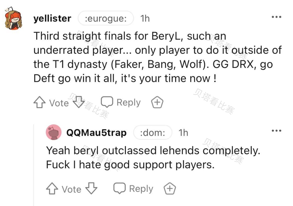 DRX在S12天下赛半决赛中创造古迹,以3-1的战绩镌汰GEN,晋级决赛。引发了大量外洋网友的热议,一起来看看他们是怎样评价的吧! -为了平衡,我们将提供2个脚本,假如DRX夺冠,那么将成为汗青上最疯狂的天下赛,假如T1夺冠,Faker再次回归神位。 -假如DRX夺冠,那他们将是汗青上最疯狂的战队,从LCK的第6名,打出古迹般的冒泡赛,再到入围赛、小组赛,接着4-1镌汰EDG,然后击败了LCK夏季赛冠军,决赛击败T1。 -当DRX在半决赛中脱颖而出而且镌汰GEN的时间,你在那边?我不敢信赖我有活着看到Deft进入天下赛总决赛的那一天,这对DRX来说是多么梦幻的故事,我为他们感到高兴,让他们夺冠吧! -2022年天下赛的Pyosik绝对不在我以为的精良选手名单中。 -Pyosik确实是越打越好。 -Pyosik成为有史以来最刺眼的选手,从替补席选手变成了天下赛总决赛的焦点选手。 -Pyosik的进步超出了全部人的预期。 -Deft和Faker是来自同一所高中的,如今他们在天下赛总决赛相遇,仅这一点就让本年决赛看点满满。 -Zeka的进步太快了。 -我真的要为Zeka欢呼,在本年天下赛之前,我乃至不知道他是谁。 -Zeka是天下第一阿卡丽。 -2022年天下赛总决赛:Faker和Deft的高中同砚聚会集会。 -谁会想到T1 vs DRX会成为决赛的对手。 -本年天下赛MV的四位主角都在决赛之前被镌汰了。Core JJ在NA被镌汰,humanoid在小组赛被镌汰,Meiko在8强赛被镌汰,chovy在4强赛被镌汰。 -作为天下赛MV的主角,在NA被镌汰真的是一件很难的事变。 -chovy真的什么都没做,他只是跑来跑去,然后笃志发育。 -Beryl连续3次打进决赛,他是一位被低估的选手,也是唯逐一位在T1王朝之外,做到这一点的选手(Faker、wolf和bang)。DRX大大的很好,Deft去赢下冠军吧,如今是你的时间了。 -是的,Beryl的表现完全逾越了Lehends,我真的很讨厌会玩的辅助。 -chovy对补刀非常恭敬,以至于他在这场BO5中只为补刀效力。 -听说chovy是本年最强中单。 -每个人都在品评chovy,但是peanut玩得不像一个有履历的选手。 -peanut在整个BO5的早期游戏中表现精彩,但是Doran和chovy浪费了Peanut创造的上风,因此我不能求全非难他。 -chovy拿到的Dade奖,肯定比他拿到的冠军奖杯多。 -假如chovy能拿本年dade奖,为什么Knight和JKL不能获奖? -JKL应该得到JKL奖。 -前四名的选手不应拿到dade奖。 -给chovy隐身奖吧,在这4场比赛中,我都没留意到他的存在。 那么,对于这些外洋网友的观点,你们有什么想说的吗? |