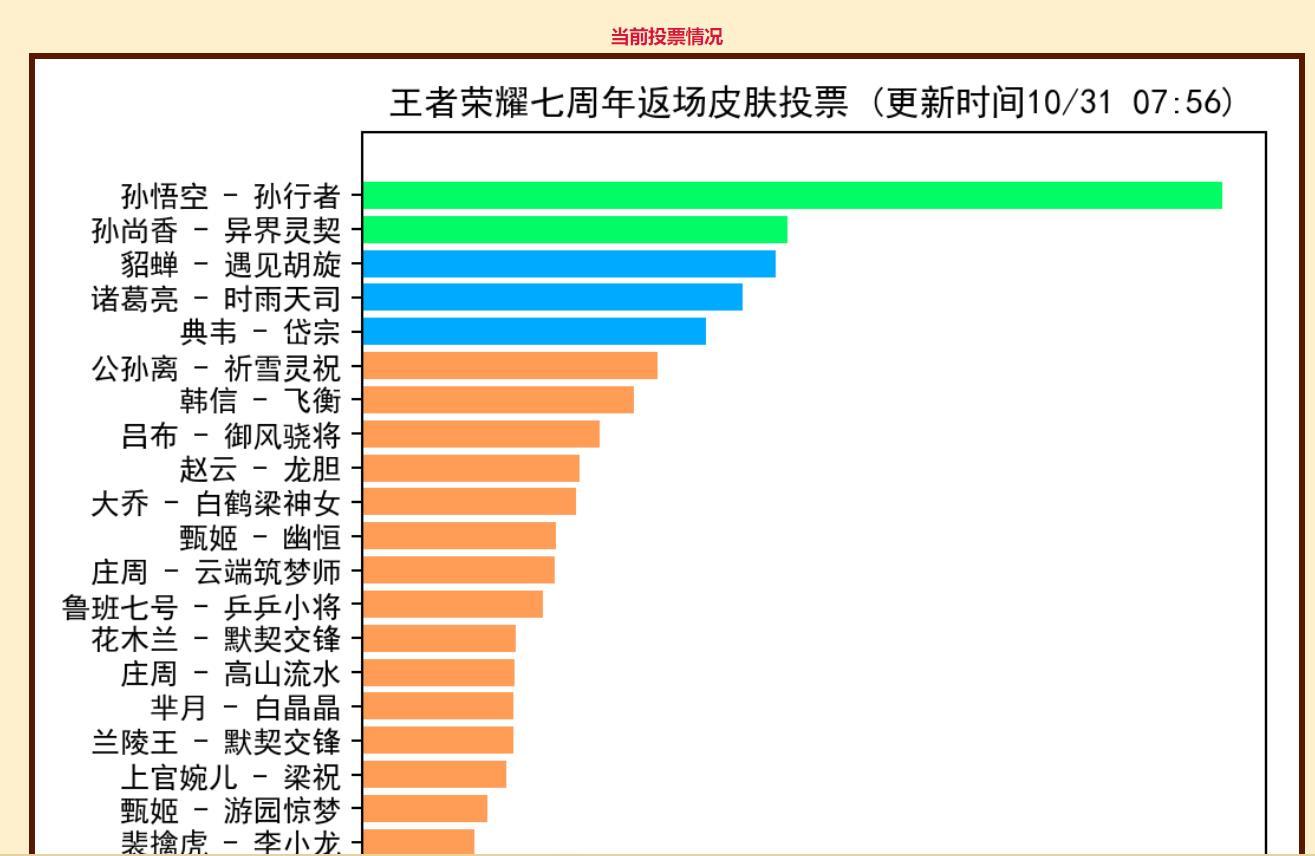 王者光彩七周年返场皮肤投票正在火热的举行中,各位小同伴都为哪些好汉投上了自己的票呢? 停止到现在(2022年10月21日早八点),七周年返场皮肤的前五名根本上可以确定下来了。他们各自的票数分别如下: 孙悟空的孙行者以68001694票高居榜首 孙尚香的异界灵契以33571868票位居第二 貂蝉的遇见胡璇以32733365票暂居第三 诸葛亮的时雨天司以30052768票暂居第四 典韦的岱宗以27162752票得到第五 除此之外呢,公孙离的祈雪灵祝、韩信的飞衡也是有时机打击第五名的。但是个人感觉乐成率不太高。给各人伙展示一下直观的图片: 这此中典韦的岱宗皮肤是许多人没有想到了,这名好汉的热度在王者峡谷着实不高。 别的这边再和各人伙分享一下本次返场皮肤的规则: 1、前两名直接返场 本次投票前二的皮肤将于11月12日——11月18日举行返场,各人伙可以直接购买这两款皮肤。 2、后三名只能选择一款 排名3-5名的皮肤和往常一样,只能购买一个宝箱,而后选择一款皮肤。 3、返场规则的厘革 以往的返场规则中,后三名的皮肤是可以进入到下一年的投票池的,这也是为什么之前青龙志每次返场都有它的缘故原由。 从这次后,后三名的皮肤也须要等候一年后才可以进入返场投票池。 怎么样,各人伙都清楚了吗?这五款皮肤有你的本命好汉吗? 末了祝各人上星上王者,感爱好的同砚别忘了点赞品评支持一波~~本人在此拜谢各位小同伴了。有任何王者上的题目可以私信留言,看到的第一时间将为各人答疑解惑。 |