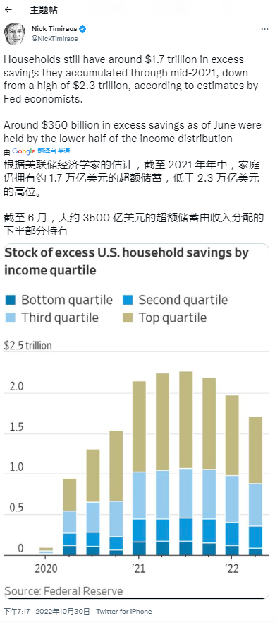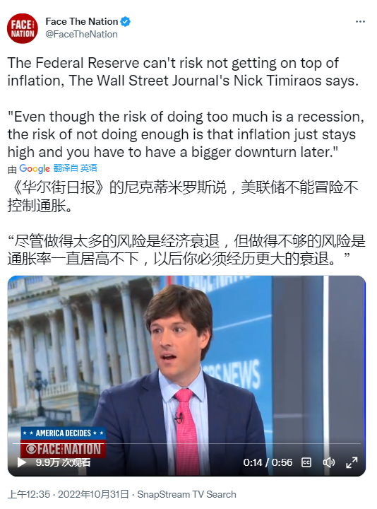 有“新美联储通讯社”之称的华尔街日报记者 Nick Timiraos 此前关于美联储的鸽派论调发生了180度的逆转。 10月21日,Nick Timiraos 撰文表现,美联储大概思量暗示缩小12月加息幅度。美联储现在盼望在不引发市场大涨的环境下,缩减加息幅度。一个大概的办理方案是,美联储官员在12月答应加息50个基点。此番言论随后动员美股美债全面拉升。 然而,就在短短十天内、本周美联储即将召开政策集会的前夕,这位“美联储御用喉舌”亲手把自己推动的宽松预期给打退归去了。 10月30日,Timiraos 在推文中暗示,美国斲丧者的储备水平依然非常强劲,而这种现金充裕大概意味着更高的利率会一连更长时间: 斲丧者有很强的储备缓冲。企业已经低落了他们的偿债资源。 对美联储来说,更具弹性的私营部门意味着,当利率上升时,利率峰值大概比预期的要高。 他还再度发文称,付出对加息的敏感度低落意味着须要更高利率。疫情期间的大放水导致家庭和企业财政状态非常强劲,储备缓冲更高,利钱付出更低,使美联储遏制高通胀的工作更加困难。 Timiraos 指出,当前美联储正通过收紧金融条件(如较高的借贷资源和较低的股票代价)来减缓经济增长,防止通胀根深蒂固。为此,美联储本年大幅加息,并大概在本周再加息75个基点,来克制需求,进一步淘汰就业、收入和付出。 当地时间周日上午,在一档电视节目中,Timiraos 以致发出了更为响亮的鹰派告诫: 只管做得太多的风险是经济阑珊,但做得不敷的风险是通胀不停居高不下,随后将出现更大的阑珊。 从实际经济状态来看,环球斲丧巨头团结利华的三季报表现,该团体在陈诉期内业务收入为158亿欧元(约合人民币1148.7亿元),与2021年同期相比增长17.8%。企业正通过提价的方式将不绝上涨的资源转移给斲丧者,而斲丧者的需求依然非常强劲,毫无畏缩之势。 市场谍报公司 Corbu LLC 的董事总司理 Samuel Rines 批评称:“这不是美联储盼望看到的财报季。就现在而言,斲丧者太强盛了。” 而 Timiraos 此番态度的逆转也在向市场发出警示——那些此前押注美联储转鸽的投资者,大概须要重新调解预期了。 |