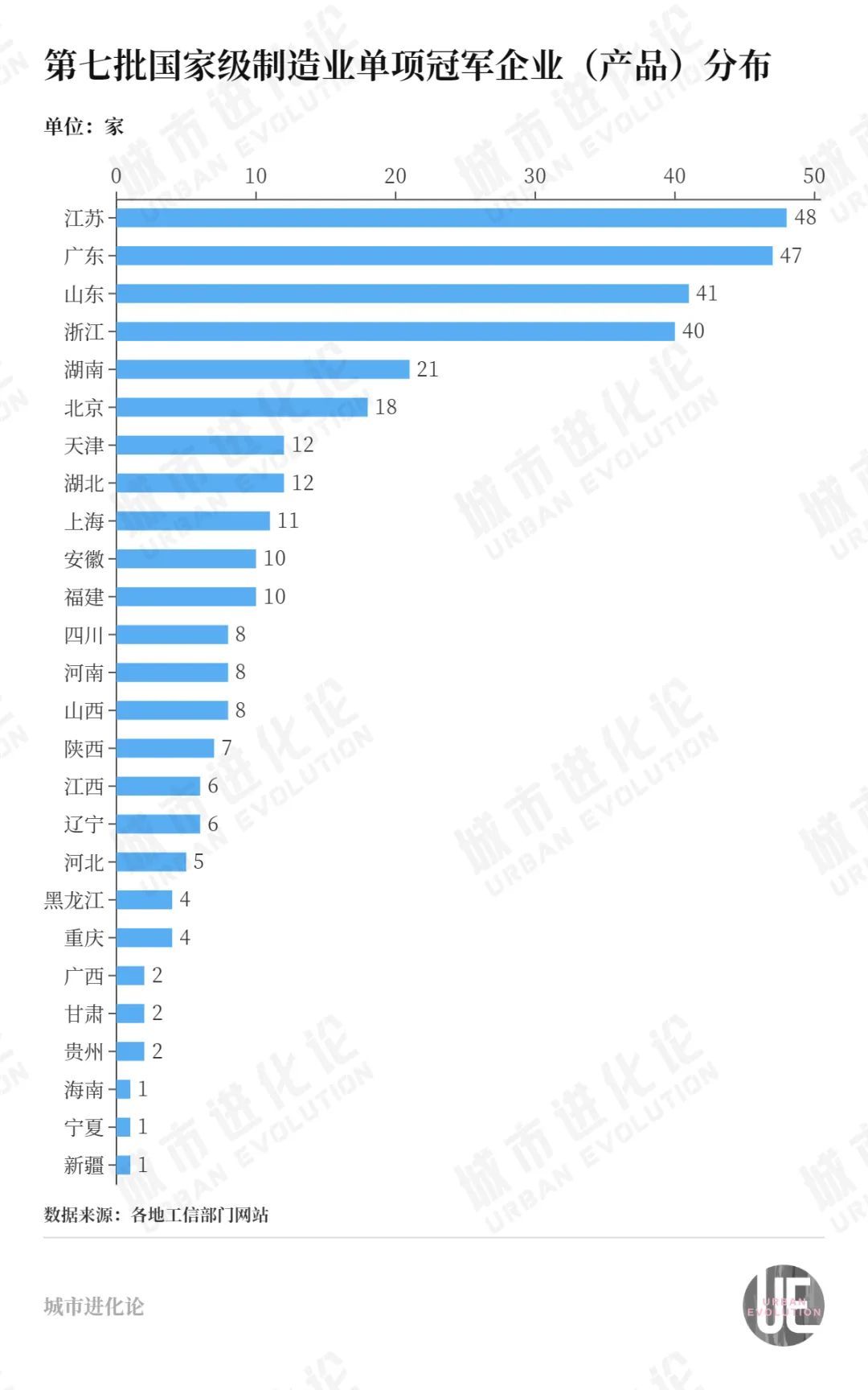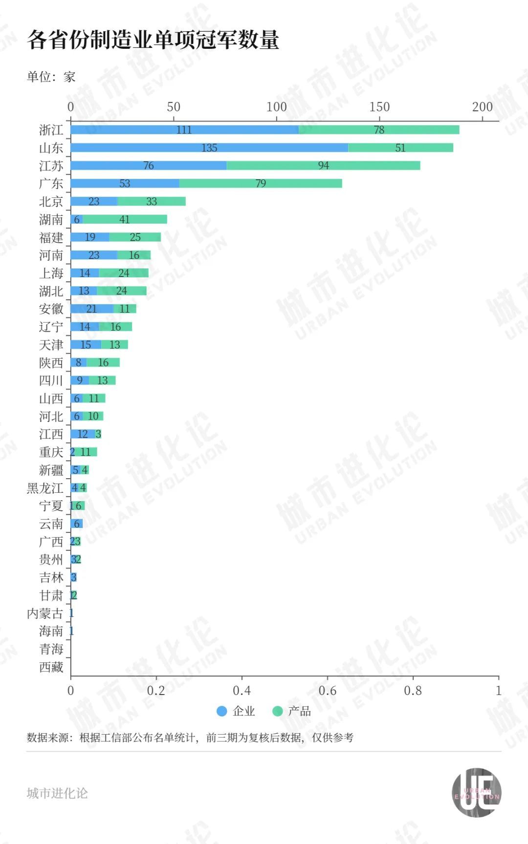 每经记者:淡忠奎 每经编辑:杨欢 从“专精特新”中小企业,到“专精特新”小巨人企业,再到制造业单项冠军……这是一家中小型制造业企业的发展阶段,亦是登上制造业“塔尖”的必经之路。 克日,工信部委托各省(直辖市、自治区)及筹划单列市,公示了第七批国家级制造业单项冠军企业(产物)和第一批、第四批制造业单项冠军企业(产物)复核通过名单,天下凌驾300家企业入选制造业单项冠军企业(产物)。 单项冠军企业意味着长期专注、举世市场占据率高、体量大且利润率高,单项冠军之省亦是各大制造业强省竞相追逐的目的。 停止如今,工信部在天下范围内已遴选出七批次超1100家单项冠军企业,从分布上看,天下31省份中仅有两省份“缺席”。 此前占据近六成份额的浙鲁苏粤,在本年继承霸榜,新增入围企业数量均在40家及以上(含筹划单列市),湖南、北京、天津、湖北等地也斩获颇多,成为“腰部”格局的搅动性力气。聚焦头部都会,竞争格局更为剧烈,十强名单中,淄博已确定“出局”。 自2016年工信部发布《制造业单项冠军企业造就提升专项举措实行方案》以来,盘货积年纪据,制造业的地区格局发生哪些新厘革?谁可以或许终极“制霸”天下制造业的塔尖? 头部竞争,海南破零 制造业单项冠军被誉为制造业皇冠上的“明珠”、金字塔的“塔尖”,其数量和质量,是权衡地区制造业发展程度的紧张指标。 停止客岁底,浙江、山东和江苏分别以149家、145家和122家的数量排在天下制造业单项冠军树模(产物)企业的前三位,浙江和山东的差距仅有4家。 在第七批制造业单项冠军树模企业(产物)中,浙江、山东、江苏和广东分别以40家、41家、48家和47家的入围数量领跑天下,进一步“搅动”头部格局。 浙江、山东、江苏和广东的入围企业(产物)数量随之攀升至189家、186家、170家和132家,山东和浙江的差距进一步缩小至3家,成为天下单项冠军“第一省”的有力图夺者。 不外,就在山东连续“紧咬”浙江的同时,江苏也正在悄悄逼近山东。从最新数据来看,江苏和山东的差距从客岁的23家缩小至16家。广东则依附近两年的迅猛增势乐成突破130家,正式跻身“头部阵营”。 广东省产业与地区经济研究会副会长、省社会科学院经济学研究员丁力告诉城叔,从举世市场理论来讲,单项冠军对举世市场份额有肯定要求,肯定程度上是长期国际产业分工的效果。广东具有显着的开放上风,而江苏借力上海,也在努力拉开与广东的间隔。 浙鲁苏粤四省入围企业(产物)数量合计达677家,占据天下制造业单项冠军版图的近6成份额,成为天下制造业产业集群最具活力的地区。 别的,北京、福建、河南、上海和湖北增长也较为显着,除河南外别的省份新增数量均在10家及以上,继承与前述省份构玉成国前十强的拼图。 此中,湖南新增入围企业数量达21家,仅次于浙鲁粤苏四省。这也反映出湖南在相干制造业产业集群的竞争力正在增强。 与此同时,海南金盘智能科技股份有限公司的“干式变压器”乐成入选第七批制造业单项冠军企业(产物),海南借此一举破“零”。 根据本年5月印发的《海南省优质企业夸奖资金管理实行细则》,2021年以来初次得到国家制造业“单项冠军”的省内企业将给予一次性500万元夸奖。 停止如今,天下31省份中仅有青海和西藏尚无制造业单项冠军的突破。 宁波领衔,两城进榜 头部的竞争,进一步投射在都会身上。 浙江宁波再次拿下单项冠军“第一城”。最新数据表现,宁波新增入围单项冠军企业10家、单项冠军产物10家,前7批累计入围企业数量达83家,继承位居天下首位。 紧随厥后,深圳新增单项冠军企业13家、单项冠军产物7家,增量上与宁波“打平”。作为天下制造业强市,二者贡献了各自省份50%的单项冠军企业(产物)增量,是省级竞争最有力的支持。 这与宁波深圳在专精特新“小巨人”上的体现大抵相当,停止如今,深圳和宁波“小巨人”企业数量分别排在天下第三、四位,仅次于北京、上海。 在专精特新中小企业-专精特新小巨人企业-制造业单项冠军的梯队体系中,深圳和宁波在“小巨人”企业上的明显上风正不停向单项冠军企业扩散。 从两地单项冠军总量上看,深圳入围企业数量累计67家,继承维持跟宁波16家的差距。 除了宁波、深圳和北京之外,别的都会之间的差距并不悬殊,“逾越与被逾越”均是常态。 从第七批国家级制造业单项冠军树模企业(产物)来看,北京、天津、上海、长沙、苏州和武汉新增入围企业(产物)数量均在9家及以上,是单项冠军都会格局的紧张寻衅者。 此中,北京、上海、杭州、常州、青岛和苏州累计入围企业(产物)数量均在30家及以上,乐成“守位”前8名。 天津、长沙分别依附12家和10家的增量,跻身单项冠军总量天下前十都会之列。 天津入围企业(产物)数量达28家,逾越淄博、南通;长沙入围企业(产物)数量达25家,逾越淄博、广州和潍坊,跟南通并列天下第10位。 十强之外,武汉新增入围企业(产物)数量达9家,从天下第25位上升至第16位,增势亮眼。 从地区分布来看,在天下20强都会中,浙江有宁波、杭州两座都会入围,广东有深圳、广州、佛山3座,江苏有常州、苏州、南通、南京4座围,而山东则有青岛、淄博、潍坊、济南、烟台和泰安6座。 这四大省份直接包办15个座次,可见头部强省在单项冠军范畴的上风非常会合。从布局来看,浙江、深圳