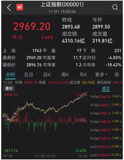 11月股市开门红,A股、港股迎来强劲反弹。沪指大涨逾2%收复2900点,创半年多最大涨幅,深证成指、创业板指双双大涨逾3%。港股恒生科技指数大涨7.8%,亦创半年多来最大涨幅。 两大“股王”表现亮眼。贵州茅台股价涨超8%,创一年多最大涨幅,市值一天回升约1400亿元至约1.84万亿元。腾讯控股涨超10%,创半年多最大涨幅,市值一天回升逾2000亿港元至约2.19万亿港元。 市场分析人士指出,A股、港股强劲反弹背后,一则未经证实的听说或提振了市场感情,同时市场估值已到低位,超跌反弹并不不测。不外,困扰市场的美联储加息、疫情反复、经济下行压力等因素仍在,反弹能否一连仍有待观察。 A股逾4300只个股收涨 11月1日,A股三大指数高开高走,收盘团体强势大涨。制止收盘,沪指涨75点或2.62%,报2969.2点;深证成指涨3.24%,报10734.25点;创业板指涨3.2%,报2337.65点。 此中,沪指创2022年3月16日以来最大涨幅,深证成指创4月29日以来最大涨幅,创业板指创10月14日以来最大涨幅。 通联数据表现,沪深两市全天成交额达9775亿元,较前一买卖业务日放量逾940亿元,北向资金全天净买入逾61亿元。两市逾4300只个股收涨,下跌个股仅400余只,涨停个股多达90只,跌停个股仅2只。 行业板块方面,申万二级行业广泛收涨,旅游及景区、旅馆餐饮、白酒、航空机场、工程机器领涨,航空装备、通讯装备、国有大型银行、军工电子行业小幅收跌。此中,旅游及景区、旅馆餐饮板块涨幅均超8%。 消息面上,在线旅游板块迎来政策利好。11月1日,文化和旅游部发布关于《文化和旅游部关于推动在线旅游市场高质量发展的意见(征求意见稿)》公开征求意见的公告,意在进一步加强在线旅游市场管理,发挥在线旅游企业整合旅游要素资源的积极作用,动员交通、留宿、餐饮、游览、娱乐等相干旅游企业协同发展,促进平台经济一连康健发展,保障旅游者合法权益,推动旅游业高质量发展。 贵州茅台创一年多最大涨幅 白酒板块的稀有反弹,成为市场一大核心。Wind白酒指数收盘大涨6.55%,为2021年9月27日以来最大涨幅。 制止收盘,白酒板块个股全线收涨,顺鑫农业、酒鬼酒涨停,舍得酒业大涨9.8%,泸州老窖大涨8.73%,山西汾酒大涨8%。 贵州茅台股价收盘大涨8.3%,报1462.01元每股,创下2021年9月27日以来最大涨幅,市值一天回升约1400亿元至约1.84万亿元。不外,10月份以来,贵州茅台股价跌幅仍有约22%。 近期以来,贵州茅台股价遭遇了史上稀有的跌幅。Wind数据表现,在刚刚已往10月份,贵州茅台股价累计下跌27.9%,为其有史以来第二大月度跌幅。 记者注意到,贵州茅台股价史上前三大月度跌幅都是在10月份。分别是2008年10月单月累计下跌约30%、2018年10月下跌了24.8%。不外,这两次大跌月份后都出现反弹,2008年11月单月涨约10.4%、2018年11月涨约2.9%。 值得一提的是,中国酒业协会团结贵州茅台、五粮液等白酒巨头在31日发布题为《中国白酒产业是充实市场化的长周期产业》文章称,中国白酒产业不绝处于稳步发展的增长通道,长周期产业属性非常显着。依照长周期发展理论,站在汗青的时间轴上看中国白酒,增长是恒久趋势,调解是阶段性形态,已往高速发展,将来依然可期。文章同时号令投资者理性对待资源市场变革,客观分析产业发展态势,公道调解根本投资计谋。 港股暴涨腾讯涨超10% 相较A股表现,处在13年低位的港股,反弹势头更为强劲。 制止收盘,恒生指数大涨5.23%,报15455.27点,创2022年10月5日以来最大涨幅;恒生科技指数大涨7.8%,报3075.16点,创2022年4月29日以来最大涨幅。 恒生科技指数身分股全线收涨,明源云、快手涨逾15%,携程团体、美团、哔哩哔哩涨逾11%,阿里康健、蔚来涨逾9%,京东团体、小鹏汽车涨逾8%,阿里巴巴、百度团体涨逾7%。 腾讯控股收盘大涨10.6%,报227.4港元每股,创下2022年4月29日以来最大涨幅,市值一天回升逾2000亿港元至约2.19万亿港元。 值得一提的是,11月1日,针对有关中信组团收购腾讯股份的消息,中信团体向媒体表现,听说不实,无相干筹划。腾讯最大股东、南非Naspers团体荷兰子公司Prosus同日也发布声明予以否认。 估值底部机会大于风险 对于此次A股、港股大涨,有市场观察人士告诉记者,一则未经证实的听说或提振了市场感情,旅游及景区、旅馆餐饮等板块得益于此强劲大涨。不外,现在美联储加息、疫情反复、经济下行压力等利空因素并未完全消除,市场反弹能否一连依然有待观察。 北京时间11月3日(周四)破晓两点,美联储在竣事为期两天的议息集会后,将公布最新加息决定。现在,市场广泛预计美联储将再次加息75个基点,同时注意于通过此次集会看到美联储转向的信号。 前海开源基金首席经济学家杨德龙告诉记者,进入到四序度,美联储加息缩表已经靠近尾声。当下美国房地产市场低迷,经济增速出现下滑,加上美国通胀率已经开始有所掉头向下,美联储预计在11月和12月两次加息后,根本上就已经靠近这轮加息的尽头。来岁制止加息的概率很大,这为中国实行较为宽松的货币政策打下底子,也有利于稳固人民币汇率。 杨德龙以为,现在影响市场的利空因素固然没有完全消除,但是在边际改善,因此市场有望迎来规复性上涨的机会。他发起投资者在市场低位保持信心和耐心。 财经批评员郭施亮则向记者表现,A股、港股出现久违的上涨行情,但单一阳线并不可以或许分析题目,关键还要看反弹的一连性,且市场能否放出量