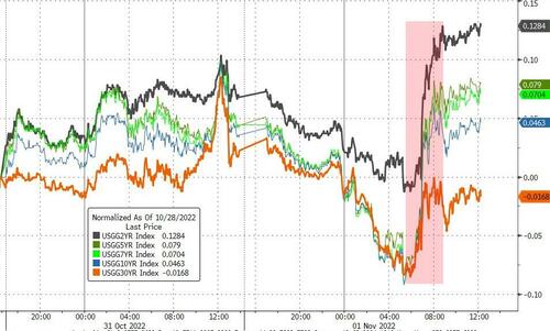 美联储货币政策集会召开,市场等待周三会否一连第四次暴力加息75个基点,并暗示12月起更小幅度加息。投资者预期周四英国央行加息75个基点,12月也将加息步调放缓至50个基点。 美国9月JOLTS职位空缺数超预期激增,表明劳动力供应仍旧吃紧,或刚强美联储本周加息75个基点的刻意。 美国10月ISM和Markit制造业PMI均靠近停滞,紧张代价指数创两年新低,代表通胀压力有所减轻,或支持美联储从12月起放慢加息步调,美元和美债收益率一度齐跌。 团体来说,对12月美联储加息75个基点和来岁2月加息50个基点的市场预期抬升 英国央行出售7.5亿英镑短期国债,完成自动缩表第一步,是本轮紧缩周期中首个自动出售国债的重要央行。英镑兑美元回吐全部涨幅转跌,自日高回落超百点,英债收益率保持跌势。 美联储加息决定前纳指100跌1%,亚马逊跌超5%,2020年4月来初次市值不敷1万亿美元11月1日周二是11月首个买卖业务日,在美联储公布利率决定之前,美股高开低走,标普500指数抹去1%的涨幅转跌,无缘3900点整数位,道指最深跌近250点,纳指振幅由涨1.5%至跌1%。 停止收盘,美股均连跌两日,标普从逾六周高位继承回落,道指进一步阔别两个月新高。科技股居多且对利率敏感的纳指全天跌幅居前,纳指100跌1%,罗素小盘股收涨: 标普500指数收跌近16点,跌幅0.41%,报3856.10点。道指收跌近80点,跌幅0.24%,报32653.20点。纳指收跌超97点,跌幅0.89%,报10890.85点。纳指100跌超1%,罗素2000小盘股涨0.3%,盘中最高涨1.2%。 美股高开低走,标普500指数抹去1%的涨幅转跌,道指最深跌近250点,纳指一度由涨1.5%至跌1% 明星科技股多数下跌,亚马逊跌超5%,2020年4月来初次收盘市值不敷1万亿美元。苹果、微软和奈飞均跌超1.7%,谷歌母公司Alphabet跌超4%至客岁1月来最低。但“元宇宙”Meta涨超2%从七年低位反弹,筹划来岁底量产电动皮卡Cybertruck的特斯拉涨超4%后收涨0.1%。 明星科技股多数下跌,亚马逊跌超5%,2020年4月来初次收盘市值不敷1万亿美元 热门中概跑赢美股大盘。中概ETF KWEB涨5.5%,CQQQ涨近4%,纳斯达克金龙中国指数(HXC)涨近4%。纳斯达克100四只成份中,京东涨3%,网易涨超7%,百度涨超2%,拼多多跌近2%。其他个股中,阿里巴巴和B站涨超3.5%,腾讯ADR涨超8%,“造车三傻”中蔚来微涨,小鹏汽车跌超3%,理想汽车涨近7%。与赌场干系的美股走高,拉斯维加斯金沙团体涨近2%,永利度假村涨超6%,但米高梅跌超5%。 其他变更较大的个股包罗: 爱彼迎Airbnb三季度营收、红利和总体预定金额超预期,四序度营收指引略逊,盘后一度跌9%。 优步Uber涨12%至六周新高,三季度营收超预期,四序度红利指引强劲。其他零工经济类股齐涨,Lyft和DoorDash在分别涨12%和涨超9%后均收涨超3%。 金融科技公司SoFi一度涨近19%,创8月3日以来最大盘中涨幅,收涨超5%至六周新高,三季度亏损小于预期,营收超预期并上调本年收入指引。 药企巨头辉瑞涨超3%至8月23日来最高,三季度财报全面超预期,上调本年红利和收入指引,对公司旧药的强劲需求有助于抵消新冠病毒干系产物销量的降落。 礼来制药跌超4%后跌幅砍半,三季度财报超预期,但下调整年指引,美元走强、抗癌药物竞争加剧和胰岛素代价降落带来负面影响。美国当局预计不会再预定更多公司的抗新冠病毒药品。 心肺肾脏体系医疗装备公司Abiomed飙升近50%至四年新高,股价一度上逼382美元,强生将以每股380美元、近166亿美元收购该公司,强生跌2%后收跌0.5%。 英国BP石油公司欧股涨超1%,美股涨1%后转跌0.2%,三季度创下2008年以来最高利润至82亿美元,较客岁同期翻倍,受益于大宗商品代价高企和自然气贩卖强劲,与壳牌、道达尔、埃克森美孚和雪佛龙三季度利润总额近500亿美元,更多声音号令征收油气企业暴利税。 跟随隔夜亚洲市场感情改善,泛欧Stoxx 600指数收涨0.58%,创9月15日以来的近七周高位,与欧元区Stoxx 50指数盘中均涨超1%,大多数板块走高且矿业类股涨超3%领跑,重要国家股指广泛收涨,英国股指涨超1%居前,分析称这与市场对西欧央行即将加息步调收窄的预期有关。 西欧国债收益率V形反转,10年期美债收益率一度失守4%,短端美债收益率涨幅突出在央行年底鸽派转向预期下,10年期美债收益率一度跌16个基点至3.92%,但美国职位空缺数据支持了美联储鹰派态度,基债收益率在美股盘中跌幅收窄并重回4%上方。对利率政策更敏感的两年期美债收益率抹去10个基点的跌幅转涨5个基点,上逼4.55%至逾一周高位。 JOLTS职位空缺数据发布后,美债收益率V型反转,10年期美债收益率重返4%,短端收益率涨幅突出 欧元区国债收益率也齐跌,尾盘跌幅大为收窄。欧元区基准的10年期德债收益率一度跌11个基点至2.05%,随后收窄至跌1%个基点并重返2.13%,靠近上周欧央行加息之前的水平,10年期意债收益率一度跌10个基点至4.21%。10年期英债收益率跌5个基点至3.47%。 油价盘中齐涨约3%,荷兰自然气跌近6%革新四个半月最低,美自然气大跌10%美元走弱提振油价,WTI 12月原油期货收涨1.84美元,涨幅2.12%,报88.37美元/桶,盘中最高涨2.89美元或涨3.3%,日高升破89美元。布伦特1月原油期货收涨1.84美元,涨幅1.98%,报94.65美元/桶,盘中最高涨2.72美元或涨2.9%,一度升破95美元,均扭转昨日1%的跌幅。 美元走弱提振油价,油价盘中齐涨约3% 一方面,拜登的高级能源顾问体现,美国须要回购2亿桶石油来增补战略石油储备,暗示需求尚存。同时,OPEC+从11月起大幅减产200万桶/日和美国石油出口