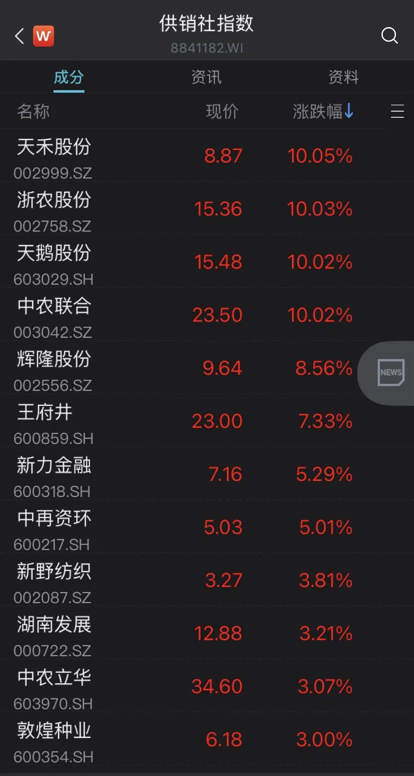 供销社概念股突然“爆红”。2日早盘,供销社概念股仍旧生动,已有海欣食品、雪人股份、美农生物等A股公司披露希望。 概念股纷纷涨停 提起供销社,许多“90后”“00后”比力陌生,但“60-80后”大概还影象犹新。 《湖北日报》此前发布的一则《下层供销社规复重修至1373个》报道10月31日发酵,并登上微博热搜,也把供销社拉回大众视野。 受消息影响,11月1日,供销社概念股火爆,天禾股份、辉隆股份午后封板,天鹅股份、中农团结两连板,浙农股份、新力金融、中再资环涨停,中农立华、浙江东日、敦煌种业等纷纷大幅冲高。 停止午盘,供销社概念股走势。泉源:Wind 本日(11月2日)开盘,供销社概念股连续生动。停止午间收盘,天禾股份、浙农股份、天鹅股份、中农团结4股涨停,辉隆股份、中再资环、新野纺织、中农立华等纷纷上涨。此中,天鹅股份、中农团结三连板。 Wind体现,现在供销社概念股包罗辉隆股份、天禾股份、中农团结、天鹅股份、罗牛山、中再环资等19家A股公司。 停止11月2日午间,相较于10月31日收盘,供销社概念股“爆红”的一天半时间内,王府井总市值增长最多,达31.78亿元;其次是辉隆股份,总市值增约14.98亿元;天鹅股份、新野纺织总市值增超3亿元。 业绩方面,上述19只概念股中,前三季度业务收入超百亿元的有5只,分别是浙农股份、辉隆股份、天禾股份、海南橡胶、东方团体。前三季度业绩增幅为正的有9只,此中天鹅股份、罗牛山净利增速分别高达127.07%、104.66%。 多家上市公司回应 辉隆股份网站先容,公司是天下供销互助社体系首家上市公司,实际控制人为安徽省供销互助社团结社;敦煌种业、新野纺织、湖南发展等个股的参股股东中则有供销互助社的影子。 “V观财报”(微信号ID:VG-View)欣赏互动平台发现,已有多家上市公司对相干供销社概念举行回应。 对于和各地区供销社有无业务往来和互助的提问,雪人股份称,已为部分省市供销互助社的冷链物流项目提供产物与服务。公司正在与各地区供销社进一步探究冷链物流根本办法建立方面的互助。 对于“公司是否加入供销社、公司是否有结构农副产物、是否加入墟落振兴”的提问,武商团体称,公司深化拓展“国企联村”办法,探索助农增收的有效路径,助力实现墟落振兴。 辉隆股份此前曾复兴投资者提问称,供销社作为国家实验墟落振兴战略的紧张抓手,将在农村物流体系建立、农产物商业、农村金融等方面发挥积极作用。公司作为供销社控股企业,将积极运用今世流畅方式和信息技能改造升级传统策划网络,创新农业社会化服务方式,加快创建农业社会化服务体系,提拔为农服务质量和水平,打造为农服务龙头企业,进一步提拔主业市场占据率。 张家港行称,在全面推动墟落振兴的配景下,鼎力大举加强与各村级团体构造的互助、一连深耕普惠金融,多措并举推进支农支小业务发展。 也有上市公司明确体现“现在未与供销社互助”。 如:美农生物称,公司从事饲料添加剂和酶解卵白饲料质料研发、生产和贩卖;紧张客户包罗饲料生产企业、养殖企业和经销商。公司现在未与供销社举行互助。公司会根据实际情况和国家财产政策导向,把握发展机会。 天禾股份10月28日体现,公司紧张从事化肥、农药等农资产物的贩卖并提供专业农技服务,公司会根据实际情况把握发展机会。 别的,海欣食品在厚交所互动易平台称,公司现在暂未直接向供销社贩卖公司产物。公司贩卖模式以流畅和今世渠道为主。此中,流畅渠道模式下各级经销商署理本公司产物,通过批发市场、农贸市场、专营门店等将公司产物贩卖给终端消耗者;今世渠道模式下公司产物通过KA、BC等连锁大卖场、中小型超市、社区便利店及佳构超市等贩卖给终端消耗者。 川财证券首席经济学家、研究所所长陈雳担当“V观财报”采访时提到,供销社概念股热度的提拔紧张由于近期各省份对于下层社的重修渐渐取得了阶段性效果,对于大众的服务覆盖面将更加广泛,国家民生政策正渐渐落实到下层。供销社的发展是国家为了推进墟落振兴的中坚气力,仍旧存在进步发展空间。供销社需更好的链接实体经济与资源市场的接洽,现在市场属于估值低位,近期关注为主。 前海开源基金首席经济学家杨德龙对“V观财报”体现,作为一个流畅渠道,供销社是有肯定的业绩增长本领,但不发起投资者去跟踪炒热门,由于许多热门股实际上从长期来看,并没有太好的业绩体现,更多的还是得当一些短线投资者。 杨德龙还称,代价投资在A股市场已经深入民气,是否要投资还要看企业是否有精良的财务回报,是否有比力好的发展空间,综合举行分析。 (文中观点仅供参考,不构成投资发起,投资有风险,入市需审慎。) 封面、导语图泉源包图网 作者 |张澍楠 编辑| 董文博 审校 | 姜 莹 |