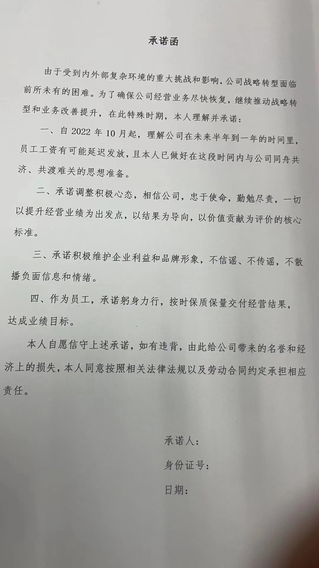 央广网北京11月4日消息(记者 金龙)3日晚间“国美停发员工工资”话题登上交际媒体微博热搜榜第一。一边是谋划业绩连续下滑半年净亏损29.66亿,另一边实控人却不绝套现,曾经的家电零售巨头国美怎么了? (微博热搜截图) 12月尾之前不发工资只给上社保? 员工被要求签允许函 克日,有消息称,10月28日,北京鹏润大厦国美总部的员工接到了一份全员大会关照。国美电器董事长黄秀虹体现:公司到12月尾之前,只会给员工上社保,不会再发工资了。黄秀虹品评了员工们近期的工作态度,以为各人缺少大局观,困难时期应不计得失,与公司共进退。她接着增补了一句:以后中长期,工资发放也存在不确定性。会后公司会出具一份允许书,员工可以各自去找主管具名。 “这是变相逼员工去职,我身边有的人签了允许函,我没有签。”一位国美内部人士向央广网确认有被公司要求签允许函。 另据第一财经日报报道,一位国美内部人士称,公司只是提示将来半年大概会出现工资缓发的环境,并不是说不发工资。 (员工允许函截图) 央广网此前获悉的一份允许函图片体现,国美自称“由于受到表里部复杂环境的庞大挑衅和影响,公司战略转型面临亘古未有的困难。” 允许函第一条就要求员工,“自2022年10月起,明白公司在将来半年到一年的时间里,员工工资有大概耽误发放,且本人已做幸亏这段时间内与公司守望相助、共渡难关的头脑预备。” 允许函的要点还包罗:允许积极调解心态,信任公司统统以提升谋划业绩为出发点,以效果为导向以代价贡献为评价的焦点标准;允许积极维护企业优点和品牌形象;允许躬身力行,按时保质保量交付谋划效果,告竣业绩目的等。 司法实务中,拖欠员工工资的环境并不鲜见,对此,北京市京师状师变乱所状师孟博在继承央广网记者采访时体现,根据《劳动法》第五十条的规定,工资应当以货币情势按月付出给劳动者本人,用人单位不得剥削大概无端拖欠劳动者的工资。根据《劳动条约法》第三十条的规定,用人单位应当按照劳动条约约定和国家规定,向劳动者及时足额付出劳动报酬,用人单位拖欠大概未足额付出劳动报酬的,劳动者可以依法向当地人民法院申请付出令,人民法院应当依法发出付出令。 “工资收入是员工生存的根本,也是有劳动条约和法律法规予以保障的。须要注意国美上述允许函是否是员工真实意思的体现,纵然是员工真实意思的体现,也违背了国家法律的规定。只给员工上社保,不再发工资既不公道也不合法。”另一位状师在继承央广网采访时体现。 值得一提的是,据国美中报体现,停止本年6月尾,国美零售的员工总数从客岁年底的32278名降至了25701名,半年员工人数少了6500余人。 半年巨亏30亿 前首富黄光裕1年内套现近10亿 收入的腰斩,是公司窘境的最直观体现。根据国美零售8月31日发布的半年报,本年上半年,国美实现收入约为121.09亿元,同比降落53.5%;归属于母公司拥有者应占亏损约为29.66亿元,对比客岁同期亏损19.74亿元,亏损额度同比扩大50.24%。停止陈诉期末,国美零售资产合计744.7亿元,总负债585.7亿元,资产负债率为78.65%。 (国美零售净利润连续亏损 泉源:Wind) 面临业绩的下滑,国美零售高级副总裁方巍此前体现,“国美将来将操持关撤30%-35%低效自营店;对于非关联或亏损业务,公司将接纳予以剥离、出售或克制发展的步伐,渐渐镌汰对费用较大业务的投入。” 业绩体现不佳,国美高管团队本年以来也历经动荡。时任国美电器CEO的张德炬于2021年7月因“身材环境需苏息调解”为由去职;2021年10月接任国美电器CEO的王波,于本年职务变更,现为国美电器华东大区兼上海地区负责人。而继承接办该职位的王巍,又于本年9月19日去职。 除了CEO频仍更替外,本年以来国美团体旗下多个公司的高管也相继去职。此中包罗客岁任职国美投资公司CEO的何阳青于近期去职。本年7月,国美团体旗下“打扮家”的首创人崔健、CEO高非相继去职。本年8月,任职刚满一年多的国美电商平台“真快乐”APP的实验副总裁丁薇去职。 二级市场方面,国美零售在2021年月朔度站上2港元/股的高位,随后陷入连续下跌趋势,该股停止11月3日港股收盘报0.124港元/股,最新市值44亿港元,相比客岁高低市值已经跌去超90%。 公开资料体现,黄光裕为当代潮商代表人物之一,2004、2005、2008年曾三度问鼎胡润百富榜之中国首富。2010年5月,黄光裕因非法谋划罪、内幕买卖业务罪和单位行贿罪数罪并罚,被判处有期徒刑14年。2021年2月16日,黄光裕正式获释,当年4月7日,黄光裕回归国美后第一次出席国美零售举行了举世投资人电话集会。 国美零售股价连续低迷却不妨碍大股东黄光裕、杜鹃夫妇接连套现。 据港交所9月20日披露,在9月14日减持套现5.31亿港元后,国美大股东黄光裕、杜鹃9月15日再度减持公司股份8892.5万股,合计约1680.68万港元。 港交所披露易体现,黄光裕夫妇在9月14日以0.195港元的均价,出售了12.15亿股国美零售股份,同一日他们还以0.186港元的均价出售了约2.24亿股国美零售股份。股东恒海投资有限公司(Ever Ocean Investments Limited,以下简称“恒海投资”)和国美管理有限公司(Gome Management Limited,以下简称“国美管理”)同日减持12.98亿股。国美零售2021年年报体现,黄光裕全资持有恒海投资和国美管理两家公司。大抵盘算,9月14日,黄光裕夫妇合计减持约27.37亿股,约5.31亿港元。 根据