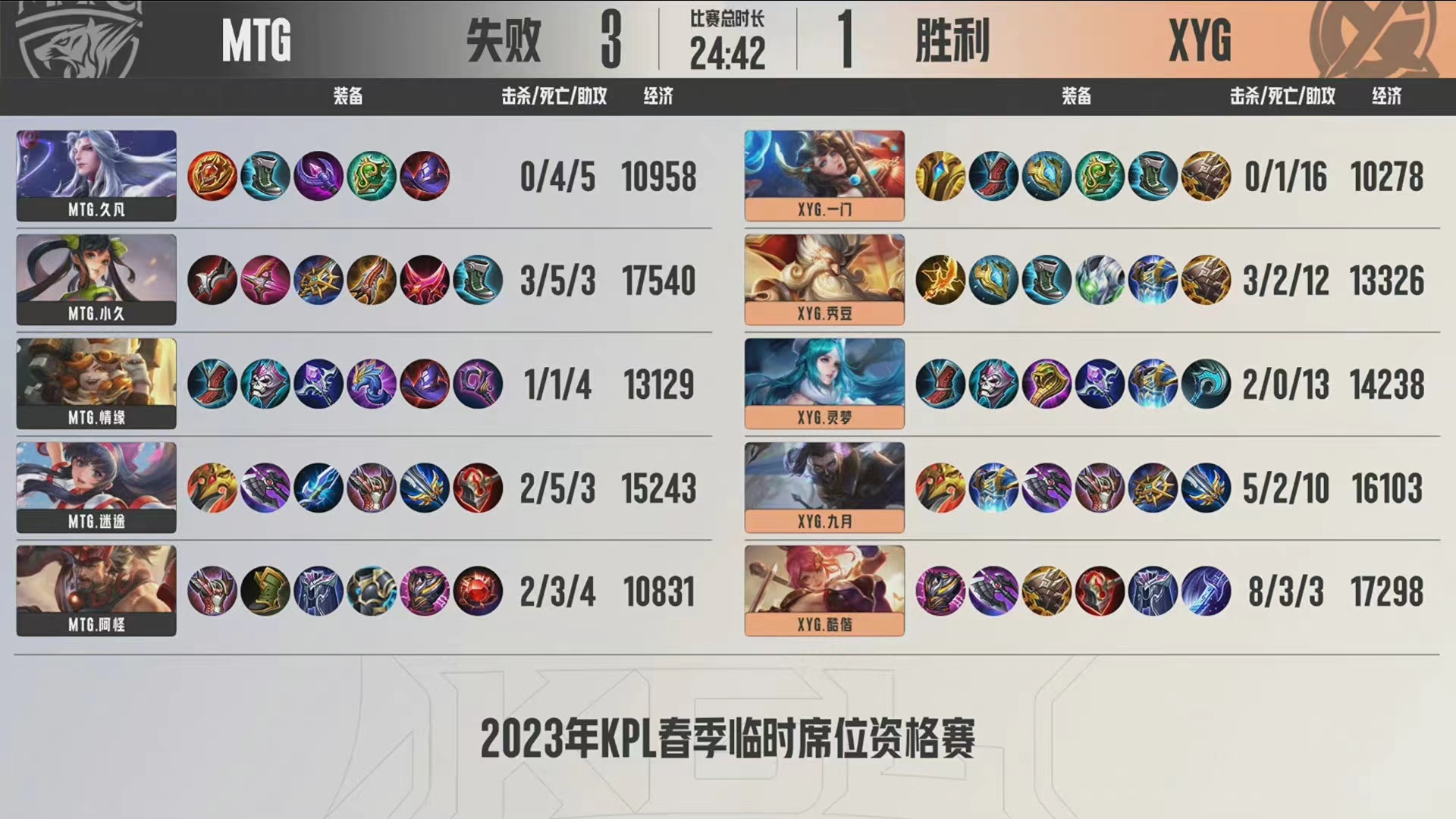 王者光彩电竞圈,在这段漫长的休赛期中,除了各大平台杯之外,实在还是有一个重量型角逐值得各人关注的。那就是2023年KPL暂时席位赛,现在根据KGL甲级联赛官宣,KPL暂时席位赛将于11月4日正式开赛,连续三天。 在11月4日竣事的角逐中,XYG以1-4的比分,爆冷不敌MTG!纵观这场BO7,除了第四局外,XYG可以说是全程被MTG吊打,没有丝毫还手的本领。而赢下的第四局,紧张也是对抗路酷偕花木兰发挥精彩,以及MTG不会打大乔所致。 从整场角逐看下来,XYG无论是上风阵容,还是劣势阵容,只要局面陷入逆风,就会快速崩盘,一个接一个的送个不绝,丝毫没有当年逆风守家的韧性。本次角逐,XYG首发辅助是一门,但其他四人貌似和一门并不是很调和,大概还是缅怀羲和,盼望整整齐齐罢了。 然而尴尬的是,XYG自从2022年KPL夏日赛季后赛一轮游之后。在这么漫长的休赛期中,既不消打挑衅者杯,首发阵容也没有去打各种平台杯,结果就练了个这么个程度出来,略显尴尬! 第一局角逐,MTG蓝色方,拿到了宫本武藏+公孙离+中单拿到了新好汉海月;XYG赤色方,选择了澜+戈娅+太乙真人的组合来应对。开局XYG击杀吕布,拿下一血。8分钟,MTG强推上路二塔,阿怪吕布一闪带走戈娅,MTG一波团灭XYG,二换五。11分钟MTG强越下路高地,瞬秒戈娅,直推下路高地,经济差拉开五千。决胜团,MTG连推三路高地,直接一波推掉水晶,先下一局。 第二局角逐,XYG蓝色方,拿到了橘右京+马可波罗+桑启的组合;MTG赤色方,选择了露娜+鲁班七号+鲁班各人的父子组合。开局下路MTG中野共同击杀马可波罗,拿下一血。7分钟,MTG项羽大闪共同露娜瞬秒桑启,一波零换四,直推中路一塔,经济差拉开五千。12分钟上路MTG露娜单杀橘右京,MTG直推上路高地。决胜团,MTG拿下暗影包罗,直推水晶,再下一局! 第三局角逐,XYG蓝色方拿到了宫本武藏+公孙离+张飞的组合;MTG赤色方,选择了澜+马可波罗+孙膑的组合来应对。开局XYG击杀嬴政,拿下一血。6分钟,XYG强行反红,MTG集火秒掉弈星,一波零换三,直推中路一塔。11分钟,MTG直推中路高地,经济差拉开八千。决胜团,MTG一波团灭XYG,二换五,马可波罗拿下四杀,直推水晶,拿下赛点。 第四局角逐,MTG蓝色方,拿到了娜可露露+孙尚香+辅助拿到了明世隐的组合;XYG赤色方,选择了兰陵王+花木兰+老夫子+辅助拿到了大乔的组合来应对。开局MTG击杀花木兰,拿下一血。11分钟,MTG直推中路一塔。12分钟,XYG花木兰抢下暗影包罗,一波二换四,反推中路一塔。决胜团,XYG兰陵王绕后切掉孙尚香,一波团灭MTG,直推水晶,扳回一局。 第五局角逐,XYG蓝色方,拿到了镜+孙尚香+孙膑的组合;MTG赤色方,选择了阿古朵+马超体系+射手狄仁杰的组合来应对。开局MTG击杀海月,拿到一血。7分钟,MTG直推中路一塔。11分钟,MTG率先打残孙尚香,正面照零换四,经济差拉开三千。16分钟,MTG连推两路高地,经济差拉开六千。决胜团,MTG先手秒掉镜,一波团灭XYG,直推水晶,轻松拿下胜利! 输掉角逐后,张大仙直接破防,直播中仿佛都要裂开了。对于这场角逐,囧王者以为,这次角逐的责任,大概新的主锻练折夕大概是要背锅了,究竟折夕执教生活的数据确实太菜了。但是这场BO7看下来,折夕的BP在第一局确实拿了劣势阵容,但其他几局都是在五五开,以致第三局的阵容还是大优。XYG云云溃败,选手的状态和磨合程度,实在是更紧张一些。究竟上,正如囧王者之前分析的那样,XYG在前几个赛季,还是KPL四强,但每次卡位赛都打的相当艰巨。这赛季是夏日赛十强,打成如许只能说是很正常了。不外,幸好另有火豹这个菜鸡战队兜底,XYG生存在KPL应该是没有标题的。 |