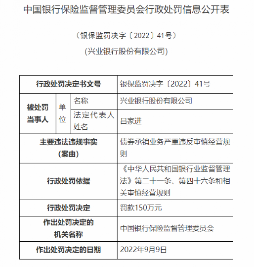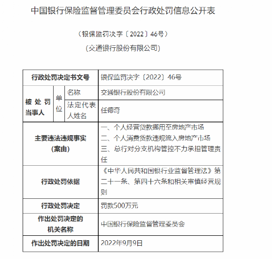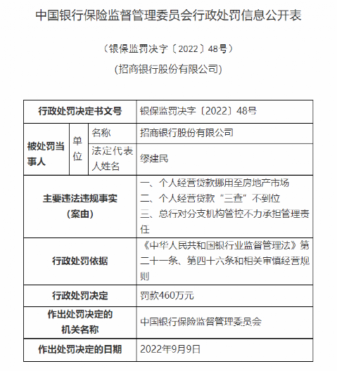 中国基金报 颜颖 又有一大批国有大行及股份行遭遇羁系罚单! 11月4日,银保监会公布2022年41号-48号罚单。因个人谋划贷款“三查不到位”、总行对分支机构管控不力、债券承销业务违反审慎谋划规则等差别来由,交通银行、招商银行、创建银行、兴业银行4家分别被罚500万元、460万元、260万元、150万元,总计到达1370万元。 与此同时,各地分行对违规事项负有责任的行长、副行长,也均被处以告诫的行政处罚决定。 来看详情—— 个贷违规流入房市 谋划贷“三查不到位” “房住不炒”的主基调下,针对信贷资金违规流入房市,羁系再次脱手,国有大行也未能幸免。 起首来看此次处罚金额最高的交通银行,此次遭遇罚单共涉“三宗罪”:一是个人谋划贷款调用至房地产市场,二是个人消耗贷款违规流入房地产市场,三是总行对分支机构管控不力负担管理责任。 基于此,银保监会对交通银行处罚500万元。别的,时任交通银行湖北省分行副行长龚青对该行个人消耗贷款违规流入房地产市场负有责任,被银保监会予以告诫。 招商银行的处罚事由与交通银行雷同,也存在个人谋划贷款调用至房地产市场、总行对分支机构管控不力的题目。别的,招商银行还存在个人谋划贷款“三查”不到位的情况。对于上述三项题目,招商银行合计被处罚460万元。 据相识,个人谋划贷款“三查”即贷前、贷时、贷后三查,银行机构必要对贷款申请人根本情况、是否符合贷款条件、贷款资料考核、贷款发放后实行情况、乞贷人谋划情况等举行综合全面观察。 《2022年二季度金融机构贷款投向统计陈诉》表现,2022年二季度末,本外币住户贷款余额73.29万亿元,同比增长8.2%,本外币住户谋划性贷款余额17.75万亿元,同比增长15.1%,个人住房贷款余额38.86万亿元,同比增长6.2%。 不难发现,住户谋划性贷款增速显着高于住户贷款增速和个人住房贷款增速。这肯定水平上也意味着,谋划性贷款流入房地产市场存在肯定大概。 别的,创建银行同样存在个人谋划贷款“三查”不到位、个人谋划贷款制度不审慎、总行对分支机构管控不力等题目,被合计处罚260万元。 上述违规事项重要发生在创建银行深圳分行,副行长刘江也被银保监会处以告诫。 值得关注的是,比年来建行深圳分行曾多次因贷款“三查”不尽职、贷款资金被调用,以及贷款观察、查察不尽职等题目,收到羁系罚单。 比方,本年2月,建行深分即被深圳银保监局处以两笔罚款,分别为170万元、90万元。2020年10月,银保监会更是对建行深分重罚852.70万元,涉及住房租赁贷款资金用于房地产开辟等10项违法违规举动。 债券承销被罚150万元 与上述三家银行的处罚事由差别,兴业证券此次招致银保监会脱手,是因其债券承销业务违规所致。 由于债券承销业务严厉违反审慎谋划规则,兴业银行被银保监会处以150万元的罚款。时任兴业银行合肥分行行长荣益民、兴业银行合肥分行副行长许捷对该违规事项负有责任,双双被处告诫。 债券承销向来是兴业银行的上风业务,在业内素有“债券银行”之名。Wind数据表现,2022年以来兴业银行完成债券承销金额8176.25亿元,银行业内排名第六位,在股份行中排在首位。 编辑:小茉 |
