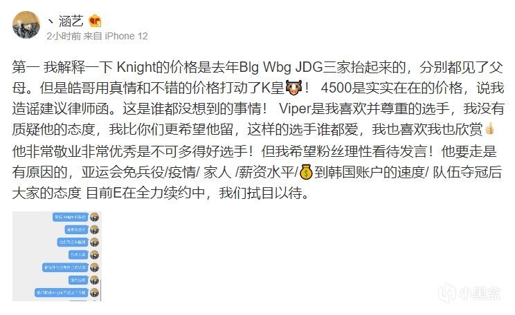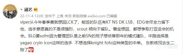 宁王宝蓝携手试训UP 之前77号已经爆料S8FMVP有试训了,没想到很快网友就扒出了宁王的试训战绩,iG冠军野辅携手试训中鄙俚战队UP。宁王操刀弱势打野猪妹打出9/2/9的豪华战绩。固然试训战绩不错但不能高兴得太早,由于Doinb爆料宁王试训的谁人队伍一天试训十几名选手,宁王和宝蓝的竞争压力很大。 多方爆料左手客岁身价4500万,本年腰斩 作为客岁转会期的大鱼,左手被77爆料客岁有一份4500万的条约,引发很多人的质疑。前LPL锻练、现LPL选手经纪人涵艺表现左手的代价被BLG、WBG和JDG抬起来了,客岁确实是4500万,以为造谣的可以状师函。只不外没想到左手被世一嘴郭皓说动半价续约TES。 但本年左手的身价直接腰斩。K皇本年身价骤降很好明白,第一个缘故起因是他本身的表现拉胯,在世界赛隐身把本身身价打没了。 第二个缘故起因就是本年自由人市场的中单大鱼太多了,Doinb、小虎,Rookie,Scout都在,竞争的人多了,K皇肯定没有那么抢手。 现在不知道左手会不会悔恨半价续约了TES,钱和结果一个都没拿到。 Viper留队意愿不强,红米回家二胎 涵艺还爆料viper春季赛就想回LCK了,Kanavi也想回LCK。有亚运会的缘故能明白选手的返国的欲望,韩国国防部已经承认了只要在来岁亚运会夺得金牌,电子竞技选手就可以享受和孙兴慜一样的报酬,无需服役只必要完成社区志愿工作。 外网也爆料Viper正在和DK会商,加入队伍的条件是DK买下T1辅助选手Keria。不外T1老板复兴表现:“哈哈不大概” 对EDG粉丝来说好消息是爱德朱已经把钱准备好了,老岳也爆料EDG开出的报酬是最高的,接下来就看自由人Viper怎么选择了。 GAM打野选手Levi求职:我渴望得到大赛区的工作 GAM打野选手Levi更新推特求职:我和GAM的条约在2022年11月21日到期,现在我还在和GAM商讨我的将来,不外他们允许我探索其他的选择。我想探求一些大赛区的时机。随后他还晒出个人履历: 2022年VCS春季赛未尝一败(15-0) 东南亚运动会金牌 2022年VCS夏日赛冠军,且春夏日赛都是队伍内得到MVP次数最多的选手 2022年举世总决赛小组赛有超高的操纵和出色的指挥本领 Levi就是那位把TES送走的死歌,估计给LPL观众留下了相当深刻的印象。 |