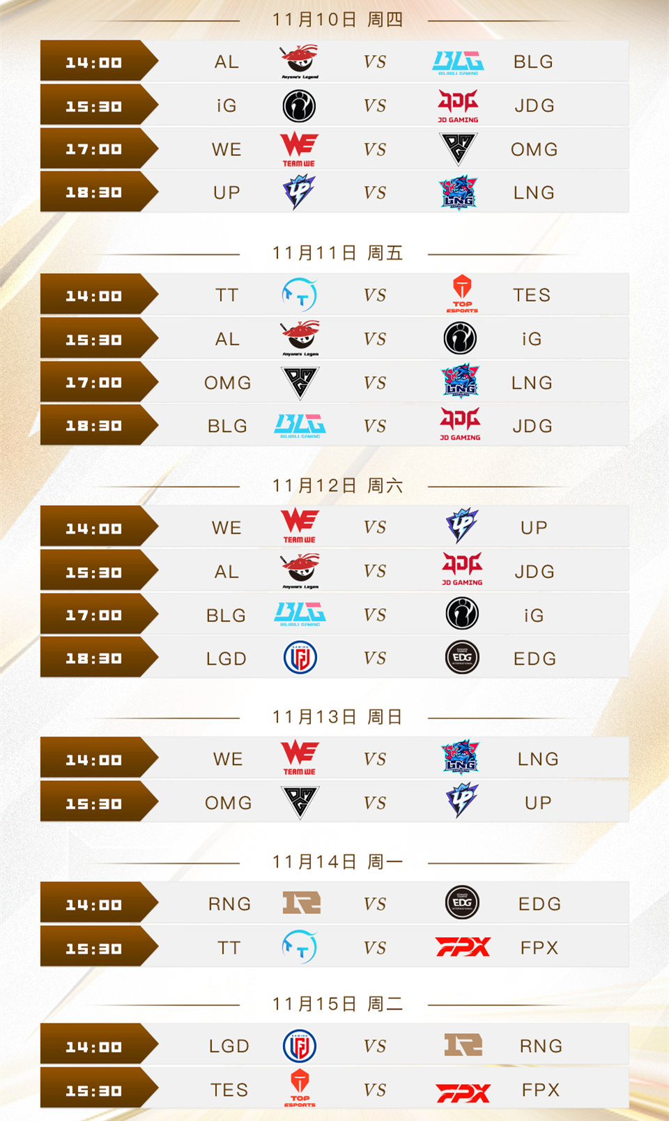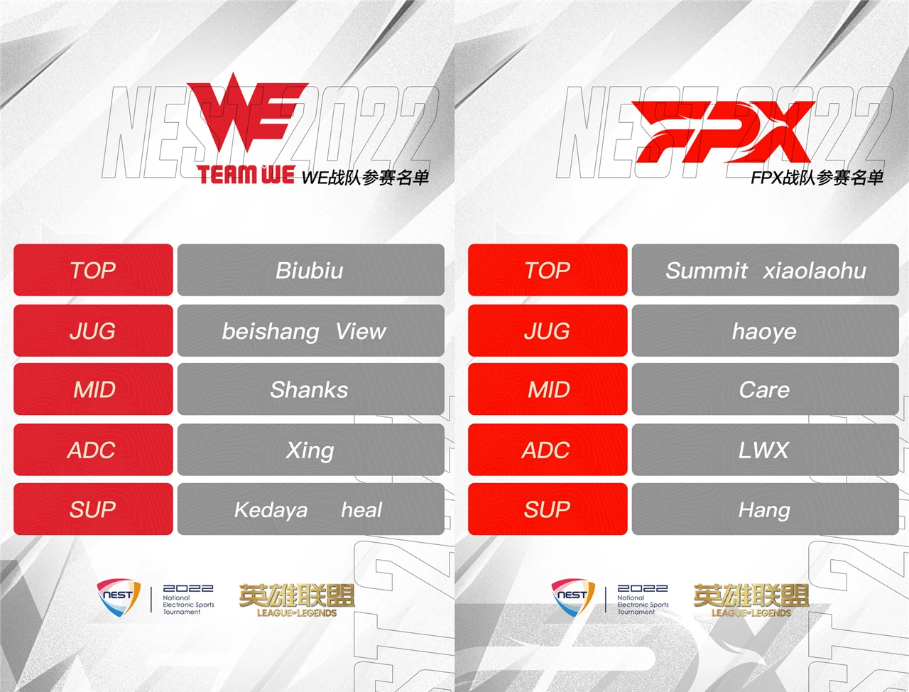 前言:好汉同盟S12环球总决赛竣过后,国内会举行两场杯赛,第一场是NEST天下电子竞技大赛,第二场是德玛西亚杯。NEST率先打响,这场杯赛参赛队伍全都来自LPL,大多数都选择让新人上场检验。NEST好汉同盟项目战队台甫单公布,EDG和RNG同组,有4支队伍首发一队主力,看来是要打击总冠军的节奏,我们一起来看看名单! 2022NEST好汉同盟线上预选赛将于11月10号14点打响,参赛队伍为:BLG、JDG、RNG、EDG、TES、IG、AL、WE、OMG、UP、LNG、LGD、TT、FPX,WBG、V5、RA没有到场。14支队伍随机分为四个小组,每组举行BO2单循环积分赛,2:0积三分,1:1各积一分,0-2不积分,小组积分前二晋级NEST年度总决赛,角逐地点定在福建晋江。 A组:BLG、JDG、IG、AL; B组:LNG、WE、OMG、UP; C组:RNG、EDG、LGD; D组:TES、FPX、TT; A组和B组有四支队伍,C组和D组只有三支,晋级压力相对来说会小一点。S12四支LPL队伍都参加进来,固然都是二队年轻小将上场,给一队主力多一些苏息时间。EDG和RNG一起被分在C组,大概这就是运气的安排,同组的另有夏日赛洪流鬼LGD,有点刺激。 NEST各队出战台甫单已经公布,根本都是首发二队小弟,固然也有老带新,像BLG就首发了Bin选手,应该能统治上单元置。有四支队伍选择首发一队主力,WE、TT、LGD根本就是夏日赛的阵容,FPX除了打野位,其他也都是主力选手,冠军AD林炜翔带队出征,难道老板说的三年一冠是NEST冠军?等待这四支队伍的体现。 WE、TT、LGD、FPX根本能锁定八强席位,BLG有Bin带队出线也不是题目,剩下三个名额就看谁家的二队选手更给力了。我先来猜测一下,A组BLG和IG、B组WE和OMG、C组LGD和EDG、D组FPX和TT可以或许晋级八强,实在也是看谁上的主力比力多。NEST由国家体育总局体育信息中央主理,自2013年举行以来,我就不停关注这个角逐,感爱好的朋侪可以看一看。 克格汪总结随着LPL竞争越来越剧烈,各队都在徐徐器重德玛西亚杯,从前根本都是让二队上场,现在用于检验转会期之后新阵容的强度,是一个很好的练兵场。NEST算是给二队小将一个显现自己的时机,本年有四支队伍上了主力选手,关注度肯定会上升一些,否则满是新人就不好玩了。年轻选手去寻衅老大哥,才会引发斗志,以后要是上了顶级联赛也不会过于告急。 本期讨论题目:你以为哪支队伍会夺得2022NEST好汉同盟冠军? |