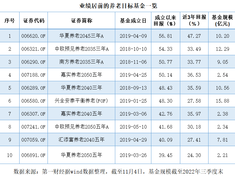 个人养老金业务正在加快推进。 11月4日,个人养老金实行办法以及个人养老金投资公开召募证券投资基金业务管理暂行规定等多个配套政策一连被推出。 “个人养老金制度的实行落地,将补齐我国多条理、多支柱养老保险体系的末了一块拼图,标记着关乎国计民生的个人养老金已经从‘有没有’的期间迈向‘强不强’的阶段。”招商基金相干职员对第一财经表现。 作为第三支柱的代表性产物之一,养老目的基金比年来一连扩容。Wind数据表现,制止现在,市场现存的养老目的基金有200只左右,合计规模达近千亿元。与此同时,另有二十余只养老目的FOF正在发行或等候发行中。 142只“达标”产物 11月4日,人力资源和社会保障部、财务部、国家税务总局、银保监会、证监会团结发布《个人养老金实行办法》。同日,证监会也发布了《个人养老金投资公开召募证券投资基金业务管理暂行规定》(下称《暂行规定》),进一步明确了公募基金加入个人养老金的制度安排。 《暂行规定》告急对三方面内容举行了详细规定:一是明确基金管理人、基金贩卖机构开展个人养老金投资基金业务的总体原则和根本要求;二是明确个人养老金可以投资的基金产物标准要求,并对基金管理人的投资管理和风险管理职责做出规定;三是明确基金贩卖机构的展业条件要求,并对基金贩卖机构信息提示、账户服务、宣传推介、恰当性管理、投资者教导等职责做出规定。 通过对比证监会曾于6月24日发布的征求意见稿,记者发现《暂行规定》对养老目的基金的准入门槛举行了调解,从“近来四个季度末规模不低于5000万元”改为“近来四个季度末规模不低于5000万元大概上一季度末规模不低于2亿元”。 门槛的拓宽也意味着,将会有更多的公募产物加入此中,投资者也会有更多的选择。“将来,随着履历的积聚和条件的成熟,将会有更多其他范例的公募基金纳入投资范围,这也将为个人养老金投资提供更加丰富的产物选择。”广发基金对记者表现。 据此前多家券商测算,将来10年个人养老金累计缴费规模可达2.5万亿元左右,此中公募基金投资比力大,在乐观、中性、悲观环境下,公募基金占比分别为90%、70%、50%。那么,现在市场中有哪些基金产物符合条件?第一财经记者团结《暂行规定》的标准,举行了开端盘算。 Wind数据表现,制止2022年三季度末,满意“近来四个季度末规模不低于5000万元”的养老目的基金产物共有116只,满意“上一季度末规模不低于2亿元”的则有97只,去掉重复产物后,共计有142只养老目的基金符合规模门槛,合计规模为927亿元。 上述规模“达标”养老目的基金,共分布在46家基金公司中,有9家公司有5只及以上数量的产物。此中,数量最多的是中原基金,有9只;汇添富基金和南方基金则分别有8只,嘉实基金和易方达基金分别有7只。 就业绩而言,制止11月4日,在上述142只养老目的基金中,有92只基金产物自创建以来的累计回报为正,占比凌驾六成;累计收益率凌驾40%的有9只。此中,中原养老2045三年A收益率居首,自2019年4月以来的累计回报为56.81%;别的,中欧遇见养老2035三年A、南方养老2035三年A的业绩居前,二者自创建以来的回报率分别为54.33%、50.77%。 养老FOF一连扩容 第一财经记者留意到,在证监会发布《暂行规定》的同一天,即11月4日,另有15只养老目的FOF会合获批。 中国证券监视管理委员会官网表现,易方达基金、南方基金、广发基金、汇添富基金、永赢基金、英大基金、兴全基金、天弘基金、浦银安盛基金、农银汇理基金、工银瑞信基金、国海富兰克林基金、创金合信基金等13家公司旗下的14只养老目的持有期FOF产物得到了准予注册的批复。 别的,证监会还公布了关于准予招商中证举世中国教导主题(QDII)变动注册的批复,该基金将变动注册为招商乐颐和惠养老目的日期2035三年持有期混淆型发起式基金中基金(FOF)。 从持有限期来看,在上述15只获批的养老目的FOF中,数量最多的是3年期产物,共有8只;而5年期的则有4只,1年期有3只。上述产物将在自批复下发之日起6个月内举行基金的召募活动。与此同时,市场上正在发行或等候发行的养老目的FOF产物另有9只。 究竟上,公募基金行业早在2018年就开始为个人养老金的投资举行了积极的探索。自国内第一只养老目的基金产物创建以来,随着养老金投资需求的不绝上升和相干制度的一连推出,养老目的基金比年来也得到了快速发展,数量和规模都有显着的扩张之态。 另据数据表现,养老目的基金资产净值从2018年底的55亿元扩至2021年底的1101亿元,年度复合增长率高达171%。2022年一季度受到权益市场颠簸影响,该类产物净资产有所回落至1047.34亿元,二季度回升至1057亿元。 制止2022年三季度末,全市场共有50余家公募基金公司布局了200只养老目的基金产物(只盘算初始基金,下同),此中188只已有数据的产物总规模合计为945亿元(差别份额归并盘算,下同),包罗177.4亿元的目的日期FOF、767.46亿元的目的风险FOF。 “首批养老目的FOF履历近四年的实践运作,积聚起了丰富的产物计划、投资管理、风险控制、渠道维护、客户体验优化等全方位的履历。对公募基金而言,第三支柱的个人养老金体系大发展也将为行业的进一步凌驾式发展创造良机。”南方基金称。 招商基金对第一财经表现,“从个人养老金顶层计划构想之初,基金行业就积极筹办,一方面积极