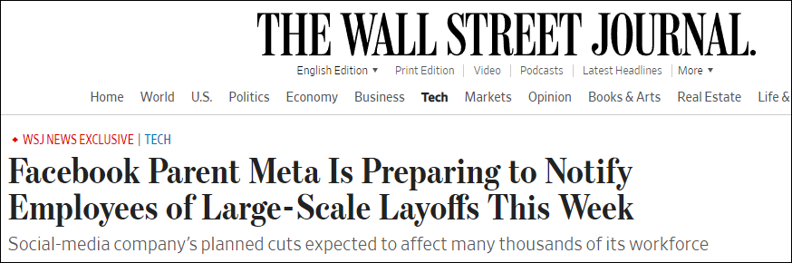 【文/观察者网 熊超然】亿万富翁马斯克收购推特后,即公布举行50%的“暴力裁人”,而另一大交际媒体巨头脸书,其员工的日子好像也不好过。 据《华尔街日报》当地时间11月6日援引知恋人士报道,脸书母公司Meta筹划在本周开始大规模裁人,受影响的员工将达数千人,裁人筹划最早将于11月9日公布。 报道称,根据Meta的数据,制止9月尾,公司员工总人数凌驾87000人。此次筹划中的裁人将是公司18年汗青上的初次大规模裁人,固然裁人比例低于推特,但预计Meta公司中的赋闲员工数目将是本年科技行业裁人潮中最多的。 《华尔街日报》独家报道截图 据报道,Meta方面拒绝就《华尔街日报》的裁人报道发表置评。该公司一名发言人指出,Meta首席实行官扎克伯格近期曾表态,公司“将把投资重点放在少数高优先增长范畴”。 10月26日,扎克伯格在Meta第三季度财报电话集会会议上体现:“因此,这意味着一些团队将显着增长,但其他大多数团队在来岁将保持安稳或萎缩。”他称:“总体而言,我们预计在2023年竣事时,我们的规模将与现在大抵雷同,以致比如今的规模略小。” 《华尔街日报》9月曾报道称,Meta筹划在将来几个月淘汰至少10%的开支,部门本领则是通过裁人来实现。本年6月,脸书淘汰了至少30%的工程师雇用筹划,扎克伯格告诫员工要为经济阑珊做好预备。他说:“现实上,公司里大概有一群人不应该在这里。” 资料图:美国交际媒体平台脸书的母公司Meta首席实行官扎克伯格 图自汹涌影像 路透社则指出,Meta在10月曾作出猜测,来岁公司效益将体现疲软,本钱将大幅增长,股票市值也会大幅蒸发,本年就已丧失了逾5000亿美元。 报道称,Meta当前正在应对环球经济增长的放缓,同时来自TikTok的竞争、苹果公司的隐私条款厘革,以及无处不在的羁系压力等因素,也让公司远景变得令人扫兴。 由于利率上升、通货膨胀加剧和欧洲能源危急导致环球经济增长放缓,近几个月以来,包罗微软、推特和Snap在内的多家科技公司纷纷开始裁人和缩减雇用规模。 美国科技媒体The Verge报道称,马斯克于10月27日刚刚收购并接受推特公司,就已开始敏捷采取举措。他筹划针对迩来没有为代码库做出贡献的中层管理职员及工程师举行大规模裁人。报道称,预计裁人筹划将从本周开始,推特的司理们已经拟出了将被裁人的员工名单。《华盛顿邮报》10月29日援引消息人士称,裁大家数大概靠近50%。 当地时间11月4日上午,马斯克发推文称,推特“收入大幅降落”,他将其归咎于“激进构造向广告商施压”,随后他在推特上谈到了裁人,称“不幸的是,当公司每天亏损凌驾400万美元时,我们别无选择。” 本文系观察者网独家稿件,未经授权,不得转载。 |