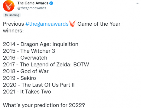 时隔四年,谁人虬髯大汉带着本身的儿子又杀了返来!随着上周《战神:诸神薄暮》媒体评分的解禁,业界予以了这款由索尼发行、圣莫妮卡工作室开辟的作品极高的评价。超40家媒体给出了满分评价,测评者都为游戏的技本事、画面、玩法所折服。 但有一人却给出了反对意见,IGN韩国的评测者在试玩过游戏之后,终极只给出了6分的评价。来由是:“玩法变革不大,推动剧情发展的亲子故事,难掩其无聊的本质。团体感觉就像是《战神4》的DLC,而不是一款独立游戏。” 而在另一边,IGN主站却给出了满分10分的评价。 固然《战神:诸神薄暮》要到11月9日才正式上线,但这并没有影响到玩家对IGN韩国的游戏评测者提出质疑。由于按照他的尺度,全部游戏的续作都可以被称作DLC。每一代《刺客信条》中标记性的鹰眼、信奉之越、暗杀玩法,也都是没有创新的表现。 由于触到了《战神》粉丝的逆鳞,不少人对他举行了爆破,以致发出了“殒命威胁”,旨在让他对评测中所说的话致歉。但当事人并没有表现出丝毫张皇,反而在交际媒体上不卑不亢地表明本身的态度: “我信赖各种意见可以资助发展游戏行业,我大概会继承从差别角度写评测。而且我想告诉各人,仅仅由于我写了一篇差别角度的评测,并不会改变你的游戏体验。” 另有一个月,玩家们就将迎来一年一度的TGA(The Game Awards)年度游戏展。这场被称作“游戏界的奥斯卡”的盛会,不停象征着游戏界的至高荣誉。 只管《索尼克:未知领土》、《地平线:西之绝境》、《异度神剑3》等游戏,都是不错的作品,但大部门玩家都信赖,本年的“年度最佳游戏”奖项的竞争者,着实只有《艾尔登法环》和《战神:诸神薄暮》。 本日,TGA官推还特意发布了动态。挂出历届“年度最佳游戏”奖项得到者的同时,也扣问各人本年更看好谁? 只管《战神:诸神薄暮》要到11月9日才会上线,但并不妨碍玩家们现在无穷看好这部作品的后续表现。正如IGN韩国的评测者所形貌的那样,媒体或或人的评价并不会改变大众对一款游戏的评价尺度。 待到游戏正式发布后,谁更配得上“年度最佳游戏”这个奖项也就没牵挂了。 那么各人本年更看好哪款游戏,终极赢得这场“游戏界的奥斯卡”呢? |