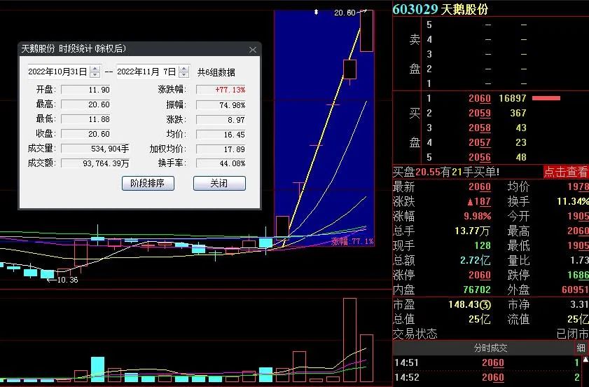 本报记者 张颖 周一,A股三大股指震荡攀升,全线飘红,均走出六连阳的态势。石油石化行业涨幅居前超2%。A股的反弹能否连续呢?后市的投资机遇在那里呢? 周一(11月7日),A股三大指数团体收涨,均走出六连阳的态势。停止收盘,上证指数涨0.23%报3077.82点,深证成指涨0.18%报11207.73点,创业板指涨0.14%报2454.69点;两市合计成交10061亿元,连续第2个买卖业务日突破万亿元;北向资金净卖出40.32亿元;总体来看,A股个股涨多跌少, 从申万一级行业看,本日,有23个行业实现上涨,石油石化、传媒和有色金属等行业涨幅居前,均超2%,分别为2.38%、2.28%和2.20%。别的,国防军工行业跌幅居前超1%。 涨停板方面,11月7日,有79只个股涨停,没有跌停个股。此中,有20只涨停股,股价已连续上涨5个买卖业务日以上。从行业方面看,传媒(7只)、医药生物(7只)、电子(6只)、纺织服装(6只)、盘算机(6只)等行业涨停股居前,均在6只及以上。 表:连续上涨5日且本日收盘涨停个股环境 制表:张颖 对于本日的市场表现,排排网旗下融智投资基金司理助理刘寸心以为,现在市场已经见底的概率较大,短期的利空根本已被消化。此前市场的感情非常低迷,而近期出现的则是有点利好消息都会给到市场较大的鼓励,这是短期估值底的表现。我们以为反弹有机遇在短期内连续,一是,由于此前在极度悲观的感情下超卖较为严肃,二是,在利空根本落地的环境下,任何的利好都有机遇让市场再往上抬一抬。行业上,起首发起关注政策利好的,如新能源、信创等,其次是各种受复苏利好、政策向好的行业如医药等。 对于后市,时田丰投资总监周功宙表现,进入11月,市场做多动能开始聚集,后市将会继续反弹,但V型反转的概率不大。 君茂资源合资人仇晓光表现,短期看,受各种信息打击的影响,市场大概仍然面临妨害,强势反弹或有肯定的反复。但是中期来看相对乐观,随着白马股的末了杀跌,市场团体的风险开释根本竣事,部门行业已经开始领先市场进入上行期。近来一个阶段市场内部布局大概会分化较大,但总体上看,处于机遇大于风险的播种期阶段。 操纵方面,丹羿投资基金司理朱亮以为,现在团体经济弱复苏,运动性充裕。对于将来的市场,我们将它分为上下两个半场。这个分界限,就是经济复苏的预期。基于经济痴钝复苏的预期,预计将来上半场的连续时间较长。上半场,估值牛,运动性推升,提估值为主。我们看好:①各范畴的自主可控,即大安全。包罗信创、科学仪器装备、医疗装备、高端机床等。凡是有自主可控的,凡是可以入口更换的,均表现较好,预计可连续一段时间。②医药方面:已往两年,创新药、东西耗材等,由于被集采压抑,表现不佳。8月以来,对体外检测(IVD)生化试剂的集采,贬价较暖和。反馈到市场上,这些股票得到一个估值的快速修复。第一阶段估值修复后,将来照旧以公司利润业绩为主导方向。下半场,业绩牛,根本面推升。经济复苏以后,市场重要是看业绩。经济低迷时,市场乏善可陈。经济生动起来,投资机遇也将增多,像受伤较重的港股机会,疫后复苏的服务业和消耗品(比方旅游航空、餐饮等),以及顺周期的制造业等。 天鹅股份6连板飙升近80% 11月7日,热门股天鹅股份再度涨停,停止收盘,报20.60元,连续6个买卖业务日涨停,累计涨幅达77.13%。 11月7日,龙虎榜数据表现,买入总计5046.31万元,占总成交额比6.74%,卖出总计4967.48万元,占总成交额比6.64%,净买入额78.83万元,占龙虎榜总成交额比0.79% 公告表现,公司前三季度业务收入279,082,881.31元,同比增长15.77%,归属上市公司股东的净利润12,630,287.28元,同比增长127.07%。 公告表现,十大流通股东中,刘利、宋洪刚、法国兴业银行、张嘉芮为新进流通股东。 公开资料表现,公司是国内可提供机采棉采摘及加工全程机器扮装备的重要厂商之一,是我国棉花加工机器制造行业的龙头企业,也是该行业内唯一的上市公司,专业提供机采棉加工全程机器化、智能化、信息扮装备一站式供货及服务。重要从事棉花采摘机器及棉花加工机器成套装备的研发、生产及贩卖。现在,公司已经形成较全面的产物系列,可提供从棉花机器采摘、开模喂花、整理、轧花、打包、码包、棉籽剥绒及下脚料接纳等一站式供货和服务,为客户提供量身定做的团体办理方案。 石油石化行业涨逾2% 11月7日,石油石化行业涨幅居首,达2.38%。此中,仁智股份涨停。 对于石油石化行业的投资,兴业证券分析以为,石化上市公司三季报已出,受损于原油代价快速回落,及需求边际走弱导致价差收窄,部门企业出现亏损状态。当前原油代价高位震荡,产物价差已收窄至汗青底部地区,油价企稳下,优质企业红利有望快速反弹。同时更换门路质料(如乙烷)代价亦从高位有所回落,干系企业质料压力有所减轻,红利亦有望回升。发起关注恒力石化、荣盛石化、东方盛虹、卫星化学、华峰化学、桐昆股份、新凤鸣。 申港证券发起,连续关注国内以民营大炼化为代表的龙头白马:我国大炼化一体化产能具备资本上风,将来炼化行业政策门槛大幅提升,炼能扩张空间有限,以民营大炼化为代表的龙头白马不停美满鄙俚财产链布局的将带来可观的业绩增量,具备较高发展性。同时以为将来外洋制品油的阶段性紧缺,拥有外洋炼厂产能大概国内具备制品油出口套利的企业具有显着上风。保举关注:荣盛石化、恒力石化、恒逸石化、东方盛虹等。 图片 | 