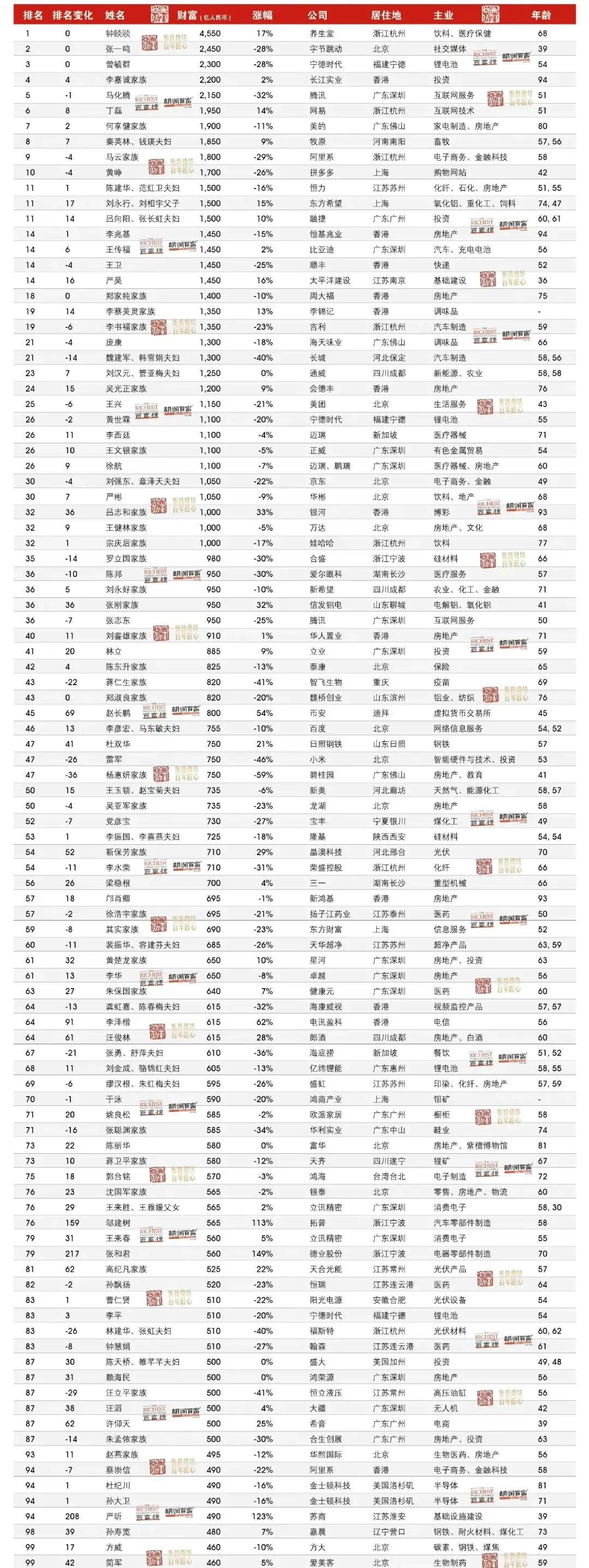 11月8日,胡润研究院发布《2022胡润百富榜》。农夫山泉68岁的浙商钟睒睒财产比客岁增长650亿元,以4550亿元第二次成为中国首富。 钟睒睒创造了二十多年来中国首富财产的最高记录。字节跳动39岁的张一鸣财产比客岁降落950亿元,以2450亿元位列第二。宁德期间54岁的曾毓群财产比客岁降落900亿元,以2300亿元位列第三。 2022胡润百富榜全榜单—— 杭州新增2例无症状感染者,此中1例为社区筛查发现!滨江区最新关照:这些人赋黄码飞机坠毁!有中国籍搭客,外交部最新回应李佳琦直播间卖得比官方还贵?资生堂回应称“体系错误”,网友坐不住了直冲30℃!立冬天气大反转,浙江人懵了,尚有一波冷氛围这天到泉源:中国消息网、胡润百富微信公众号责编:张筱编辑:董沈涛版权归原作者全部,如有侵权请实时接洽。 |