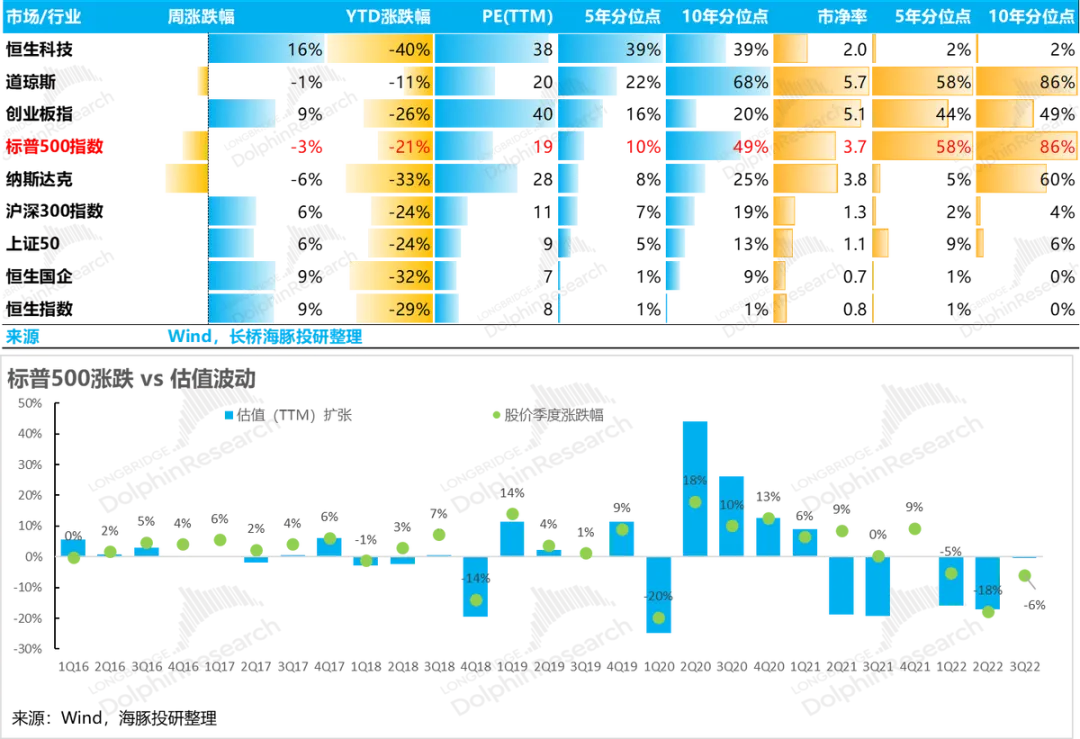 陪同三季度巨头陨落的盛行雨,环球股指本年到现在跌幅广泛都到达了20-30%之间,从估值的角度,标普500指数的PE估值只有已往五年估值汗青分位的8%左右,看起来充足自制。 那么,到现在这个位置,加息走到那里了?估值到底杀完了吗?估值杀完了之后,会有业绩杀吗?业绩杀到底会有多惨烈? 这两大题目险些是压在海豚君所看的大多数公司的两座大山。因此海豚君在深入分析个股之前,先实验从个股和宏观层面粗浅地探究一下这两大题目。 一、估值杀:加息到底有完没完? 本年年初以来,美联储颠末六次加息(前两次25、50+迩来四次每次75个基点)后,美联储的政策利率已经从零利率(0-25个基点)加快推进到了3.75%-4%。 在观察几个核心指标:(1)9月核心CPI 6.7%,加息启动以来的九个月内颠簸在6%-6.7%之间;(2)9月核心PCE 5.15%,九个月颠簸在4.7-5.4%。尤其是9月单月,在加息大步快跑追赶通胀过程中,通胀环比同比好像都在拉大。 由于环球上一波通胀的汗青太过长远,而从长周期从有限的汗青信息来看,之前每一轮通胀周期当中,美联储加息之后政策利率的顶点都明白凌驾了当轮核心PCE通胀率的顶点。 那么有一种很大的大概是,当市场好像把利率预期到5.0-5.5%左右的时间,市场真实利率(相对于需求侧驱动的通胀率)渐渐转正,加息有盼望渐渐到顶。 以9月5.15%的核心PCE作为参照,当前政策利率在4%,只必要两次50个基点+一次25个基点就能到达。而美联储11月加息集会公布后,市场正在打满这个预期: 从海豚君11月3日在彭博上截取的市场对加息的预期根本对应接下里12月和1月的加息当中各加50个基点,跟上通胀率水准,然后进入慢加息或高位停滞,到2023年下半年开始有人预期会降息。 这一轮美联储加息三阶段:“加息踩油门、利率高水准、高息拉锯战”。在这三阶段中,如果接下来两次用75+50的组合,会敏捷把利率推升到逾越当前核心PCE的区间,因此加息踩油门根本进入尾声,这个也是美联储在最新的加息集会上转达的核心信息。放缓加息速率之后,剩下最紧张的题目是加息的止境在那里,以及在这个止境位置上要停顿多久。 而如果参考之前的加息周期每次都凌驾核心PCE的情况,把加息的止境预期在5.25-5.5%左右,当期预期5-5.25%的止境预期,也正在靠近这个临界点。尤其是在渐渐靠近止境的情况下,越快的加息速率除了临时性的惊吓,很大概是会让市场接下来以为越来越靠近于加息的止境。 在这一波加息速率和止境不绝抬升的过程中,无风险资产美债收益率不绝攀升,导致环球权益市场广泛遭遇了杀估值。进入紧缩性高利率要维持多久的阶段,这个对于海豚君重点关注的港、美市场来说,有着完全差异的意味: 1).港股作为美元的外围市场而承载的紧张是本地资产,强美元周期内,美元连续流出导致估值在各大市场中完全垫底。而加息到顶、运动性企稳,对港股来说是卸掉了一座大山;而业绩根本面上跟随本地政策,港股以地产和科技股为核心的公司已经履历了最差时间,背面有修复预期,由超低估值作为安全边际,港股的时机大概正在靠近,宏观方面真正的风险着实紧张就剩下退市题目。 2). 而对于美股资产而言,加息最猛的阶段已往,但高息恒久维持,更多是要让经济充实领受高息的“寒气”,让高借贷本钱传导到每一个本币计价谋划的行业,换句话说,高息连续多久影响的是美股公司的业绩根本面是否会烂掉。 从控制通胀的角度,在就业率居高不下的情况下,是必要把赋闲率打上去,经济进入微阑珊状态,才气冲破人力不敷、薪资上涨、物价上涨的循环当中,从美联储9月份的经济猜测数据中也能看到这个意图。 以是,对于接下来的美股,走出体系性杀估值的压力之后,接下来一个阶段会更加侧重公司根本面本身的表现。接下来,海豚君就从根本面的角度,看一下美国经济到底走到那里了? 二、个股巨头里的宏观眼:“巨头陨落”流星雨背后的 B、C二极分化 一个词来概括刚刚落下的美股三季度财报季的话,“巨头陨落”恐怕是最点题的形貌。海豚君覆盖的巨头当中,苹果成为美股巨头中唯一还算坚挺的脊梁骨,微软、谷歌、亚马逊、Meta都已悉数卧倒。 而细致看这里的卧倒,更多是预期的“卧倒”,四序度指引一概差,思量到指引本身有公司市值管理、预期引导等主观性因素,海豚君重点来观察三季度现实业绩本身所隐含的核心信息: 1)本土业务增长不逊色 从互联网科技五巨头的团体收入增长来看,五巨头北美业务收入(用只管精准意义上的美国地域收入,如无美国再用近似地域代替)三季度不但没有低落,反而还在加快增长,没有巨头们指引得那么悲观。 2)to C交易强于to B交易 而具体分类可以看到,这波边际厘革当中,面向to B客户的交易创能变差的速率显着快于面向 to C客户的交易: a). to B业务之广告:广告平台广泛赚的是企业主的广告预算,收入增长放缓的坡度非常快,团结海豚君上篇对广告板块的综述《寒气转达接力赛,谷歌、Meta没有免死令》,广告主不看好谋划远景应该是很大的因素。 b.) to B 业务之公有云:云业务对应的是企业主对于IT付出的预算。可以看到,除了谷歌由于基数较低之外,三大公有云巨头的收入增长团体显着放缓,增速从三季度40%敏捷拉低到31%。 C.) 而 to C交易更能挺:相比于团体 to B业务的拉胯,做to B交易的实物商品贩卖好像日子更好过一些,固然苹果和亚马逊这个季度都有本身的特殊因素