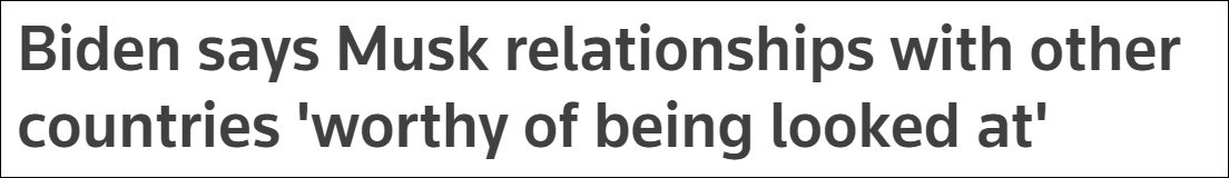 (观察者网讯)美国总统拜登“陪跑冲刺”中期推举之余,再对推特新老板埃隆·马斯克 (Elon Musk)收购推特一事发表见解。 据路透社报道,本地时间11月9日,拜登在消息发布会上表现,他以为马斯克与其他国家的关系值得关注。 路透社报道截图 日前,在履历了六个月的拉锯战后,马斯克收购交际媒体推特公司一事终于灰尘落定。有了华尔街银行贷款和股东的资助,马斯克以440亿美元将推特收入囊中。 羁系文件表现,沙特亲王阿尔瓦利德通过沙特王国控股公司转换近3500万股推特股票,以每股54.20美元的售价盘算,代价约19亿美元。这使其成为“新推特”的第二大投资者。 卡塔尔主权产业基金的子公司卡塔尔投资局则贡献3.75亿美元,变动马斯克的控股公司股份。 在昨天的消息发布会上,拜登被问及,是否以为马斯克对国家安全构成威胁,以及他在一家沙特企业团体的资助下收购推特是否应该受到美国当局的观察。 对于这个标题,拜登先是尴尬地笑了一下,在缄默沉静数秒后,从口中困难的蹦出几个词组称,“我以为...马斯克...与其他国家的互助大概...技能关系值得关注”。 他接着说道,“我并不是在暗示他是否做了什么不符合的事。我的意思是,他们值得关注。” 2022年11月9日,拜登在消息发布会上继承采访 视频截图 由于马斯克收购推特的生意业务中存在外国投资者,上个月,彭博社报道称,拜登当局官员正在讨论是否对马斯克麾下企业的一些项目发起国家安全查察。不外,白宫随后予以否认,表现报道并不属实。 只管云云,路透社指出,马斯克收购推特还是引发了人们对他大概面对来自试图控制网络言论的国家的压力的担心。 此前,同样作为太空探索技能公司(SpaceX)首席实行官的马斯克就因提出克制俄乌辩论的宁静操持,将本身置于舆论的风口浪尖。 他提出,应在团结国监视下在顿涅茨克、卢甘斯克、赫尔松和扎波罗热四地重新举行公投,而且让克里米亚正式成为俄罗斯的一部门,乌克兰要包管克里米亚的供水安全,乌克兰在北约和俄罗斯之间保持中立。 自俄乌辩论发作以来,星链服务为乌克兰部队保持通讯起到了告急作用。但在遭到乌克兰反攻后,马斯克表现,本身已无力捐赠更多的星链终端给乌克兰,也无力恒久为当前的乌克兰终端提供服务。 本文系观察者网独家稿件,未经授权,不得转载。 |