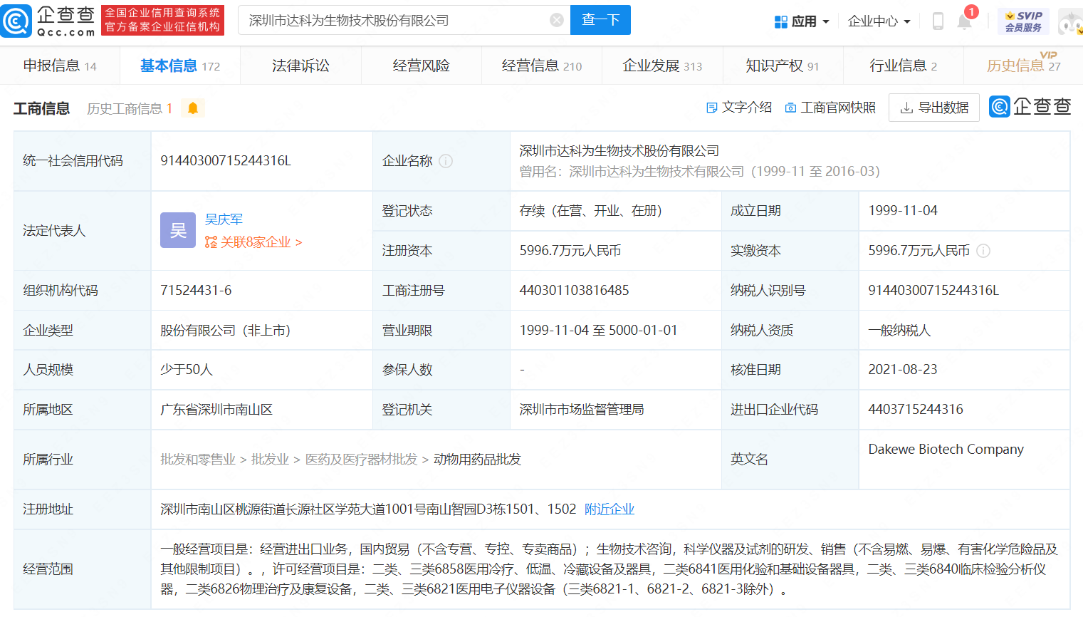 疫情防控常态化,和采样拭子一样被人熟知的,就是采样管了。克日,厚交所创业板表现,一家名叫达科为的公司在本年10月14日提交上市注册申请,即将IPO上市。企查查APP表现,深圳市达科为生物技能股份有限公司创建于1999年11月,注册资源5996.7万,法定代表人为吴庆军,策划范围含生物技能咨询,科学仪器及试剂的研发、贩卖等。该公司控制企业12家,间接持股企业10家,此中全资子公司深圳市达科为生物工程有限公司,自20年起就已得到“多种细胞判定试剂盒及操纵方法”“收罗装置”“游离DNA生存布局”“采样管”等多项专利授权。 |