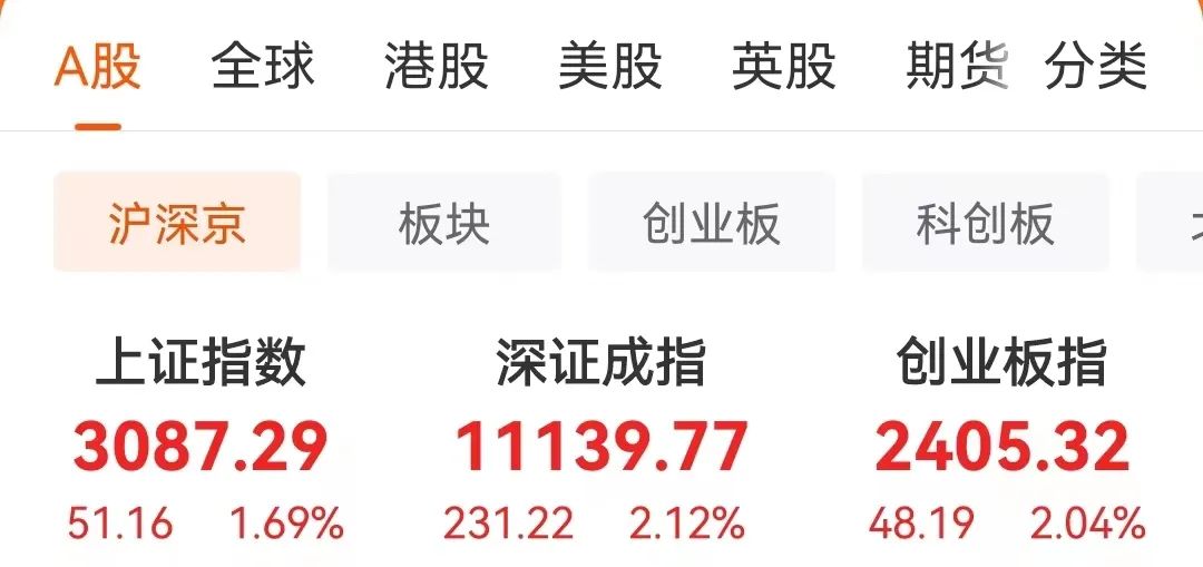 生意业务行情体现,11月11日,A股三大股指团体大幅高开,此中上证综指高开2.09%,深证成指高开2.83%,创业板指高开3.65%。上午盘中稍有回落,克制午间收盘分别收涨1.51%、2.07%、2.49%。下战书开盘后,在国务院联防联控机制综合组发布的优化防控工作的二十条步伐的刺激下,A股三大股指团体冲高,此中沪指盘中一度站上3100点,深证成指、创业板指盘中均涨逾3%。