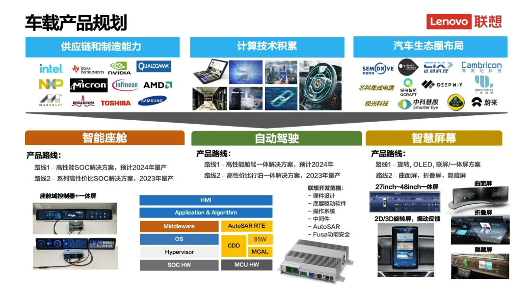 「遐想没有造车筹划,我们要做的是车盘算。」 在 2022 遐想创新科技大会的第二天,也就是 11 月 9 日的演讲中,遐想团体高级副总裁、CTO 芮勇博士如许讲到。 就是如许不造车的遐想,本年年内在环球三大盘算机视觉学术集会会议的此中两个——CVPR 和 ECCV 上,先后拿下了多个寻衅项目的冠军。 此中,在摘下均匀多目的跟踪正确度(mMOTA)寻衅赛桂冠时,跟遐想研究院同台竞技的,包罗了苏黎世联邦理工学院、加州伯克利大学、卡内基梅隆大学、驭势科技等来自环球各地的 20 多支顶尖团队。 如许的遐想,与 ThinkPad 标记性的「小红点」、与过于抢手以至于被中文互联网网友戏称为「氛围本」的旗下品牌接济者(LEGION)、与「环球个人电脑一哥」等等已经深入民气的 icon,着实是相去甚远。 相比于跟遐想在斲丧电子、高性能盘算等多个赛道存在直接竞争关系的华为,同样夸大「不造车」的遐想,算盘又是怎么打的? 车盘算是什么? 「车盘算」可以看做是一个大而化之的概念。 简单来说,遐想的「车盘算」可以看做是对主动驾驶、智能座舱、车身、动力等告急域控制器的整合,末了聚合到中央盘算平台。 进一步来看,这并不简单。 众所周知,汽车的供应链着实是太长了。单就我们之前在文章中探究过的车载表现屏,用户面前的一两块屏幕,其背后大概存在大几十、以致上百家供应商。 同样,车盘算要对汽车上的诸多控制单元举行整合,使之可以或许从相对分散的工作状态会合起来,再通过 OTA 实现更好的迭代。 以是,这里并不是单纯的软件或硬件的概念,而是背后存在着大规模、标准化的盘算体系。 这种聚归并欠好做,此中涉及了诸多焦点技能,包罗异构盘算、多体系并行、跨域的通讯、优化和加速等等。 而这些都是作为环球份额最高的 TOP500 高性能盘算供应商,以及作为最告急的算力公司之一的遐想所善于的。 单看一组数据。制止 2022 年,遐想在国内到场制造、摆设的超算就到达 161 台,在环球占比 32.2%。 企业的盘算基因是在线的。按照遐想方面的说法,车盘算是遐想盘算业务的自然延伸,做车盘算是水到渠成的事,是值得投入的场景盘算的新方向。 车盘算作为所持算力的此中一个方向,遐想给出了端-边-云-网-智的新架构,还包罗了清晰的场景与对应的产物。 遐想,入局已久 早在 2014 年,我们就曾以《遐想+车联网,又是一个大消息,这次切入点还是 OBD》为标题,对遐想进入车联网行业举行过报道。时间一晃已经已往七年,「车联网」的概念也在这段光阴里,随着行业的发展被层层细分。 话分两端说。几个月前,遐想研究院开出丰厚待遇广招汽车行业人才的信息曝出。 从公开的雇用信息来看,遐想该次雇用包罗了车载信息娱乐体系负责人、主动驾驶工程总监、高级软/硬件司理等岗位的人才。很显着,至少包罗主动驾驶、智能座舱、中央盘算平台等智能汽车的关键范畴,成为了遐想与「造车」产生强关联的重点。 在 11 月 9 日的车盘算分论坛上,遐想团体副总裁、车盘算负责人唐心悦初次公布遐想的车盘算产物结构和门路图。根据应用场景的差别,由遐想为相助搭档提供差别算力的盘算平台;在此底子上,遐想提供利用体系软件、中央件和应用开发情况。 这此中包罗了智能座舱、主动驾驶和智慧表现屏三大产物线。 以表现屏为例,遐想基于芯驰科技的国产芯片,推出了一机多屏的智能座舱域控制器,支持仪表盘、中控屏、副驾屏、娱乐屏,同时实现了语音控制、3D 导航、与手机互联互通等功能。 有统计表明,环球 30%的车祸是有 A 柱盲区引起的。尤其在车辆转弯的过程中,A 柱盲区内的职员和停滞物存在很高几率的被碰撞风险。 基于对该现状的洞察,遐想在柔性屏幕方面的技能积累也将被应用于车载范畴,譬云云次公布的曲面透明 A 柱体系。该体系包罗了一块柔性曲面屏,和对应的风景融合算法。 通过软硬联合,这块搭载了柔性曲面屏的 A 柱将实现数字透视。用户可以透过屏幕看到 A 柱视野盲区的风景,曲线修正算法也能在肯定程度上办理视野中物表实际位置的标题。 据相识,该产物还处于早期研发阶段,但遐想已经开始了与国表里厂商的相助打仗。 实际上,不管是一机多屏、还是新颖的曲面透明 A 柱体系,实际上都是遐想和奇瑞相助打造的概念智能座舱体系的构成部分。 除了这些,这套体系还包罗了相干的智能座舱域控制器、驾驶员康健监测体系、多装备无线充电等产物,以及柔性曲面中控屏、双联屏等车载屏幕,和相对应的用户界面。 除了智能座舱与表现屏,遐想也公布了 2025 年之前域控制器产物线的 roadmap,差别算力的产物涵盖了从智能座舱到舱驾融合的差别场景。 主动驾驶域控方面,遐想已经推出算力 550TOPS 的主动驾驶域控制器产物,可用于非法规门路的高性能主动驾驶; 2023 年,推出算力 32TOPS 的高级辅助驾驶产物,提供行泊一体的高性价比域控制器办理方案; 根据筹划,遐想将会 2024-2025 年左右推出舱驾融合的域控制器产物,最高算力可达 2000TOPS——单就算力而言,与 NVIDIA 在 2022 年秋季 GTC 上发布的 Orin 继任者、雷神(Thor)芯片程度相当。 随着车载算力的飙升,在单个单类的车载盘算产物之外,遐想筹划提供更加丰富的车盘算办理方案,如云端盘算产物、云端存储产物、路侧 MEC 产物、V2X 产物等等。 在已知的案例中,遐想在国内一座颇具难度的都会落地了智