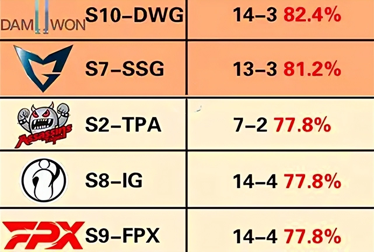 随着DRX战队,以四号种子的身份,苦战五局先输后赢的,困难击败了Faker领导的T1战队之后。好汉同盟S12举世总决赛,就正式宣告竣事了。 坦白地讲,S12天下赛是LPL赛区自S8赛季以来,初次无缘总决赛舞台的一个赛季,也是让LPL玩家感觉到“绝望”的一个赛季。赛前的夺冠热门战队TES,自己玩脱了自己,止步小组赛;RNG被宿敌T1零封;EDG被DRX让二追三;一号种子JDG在面对T1时,也是毫无还手之力。 面对如许的逆境,在天下赛竣事以后,有仔细的LPL网友整理了一份从S1开始,到S12为止的,历届天下赛冠军胜率表。从中我们不难发现一些端倪! 关于DRX这支古迹战队,他们总场次的一些分析在聊冠军胜率之前,囧王者想先说一下,冠军战队胜场的统计依据:入围赛也算天下赛,因此在统计DRX的胜率时,是要计入他们的总场次的。这不是什么公不公平的原则,而是对于天下赛规则,以及DRX这四支四号种子在战队的恭敬。毕竟他们是第一支以四号种子夺冠的古迹战队。 要知道太古时期S2的TPA暗杀星,是直接八强开始打的。以是标准都要同一,只要是在S赛上,打过的比赛,都要计入统计场次。毕竟从入围赛打起,也是DRX黑马战队蜕变过程! 历届S赛冠军胜率出炉:再次感受到S3~S7那些年,有多么的绝望在历届S赛冠军中,S5的SKT战队,以15-1,93.8%的胜率,雄踞榜首;S4的SSW战队,以15-2,88.2%的胜率,屈居第二;S3的SKT战队,以15-3,83.3%的胜率,排名第三。 S4的DWG战队,以14-3,82.4%的胜率排名第四;S7的SSG,以13-3,81.2%的胜率排名第五;S2的TPA,以7-2,77.8%的胜率排名第六;S8的IG,以14-4,77.8%的胜率排名第七;S9的FPX,以14-4,77.8%的胜率排名第八。 S12的DRX,以19-7,73%的胜率排名第九;S6的SKT,以14-6,70%的胜率排名第十;S1的FNC,以9-4,69.2%的胜率排名第十一;S11的EDG,以13-8,61.9%的胜率敬陪末座。 坦白地讲,看到这个胜率榜时,囧王者第一个想法就是,我再次感受到了S8之前,S3~S7赛季的LPL有多绝望了。那段时间,整个好汉同盟电竞圈都被LCK困绕,看不到一丝丝得胜的渴望。 譬如S5是SKT,他们在那一届天下赛上的统治力简直就是无与伦比,在决赛前,乃至没有队伍能见过SKT的高地。如果他们在决赛上,不玩那一把的话,他们乃至可以胜夺冠! 对于这个胜率榜,囧王者是如许明确的:胜率高的队伍,只代表冠军战队强,但不代表对手战队菜,以是胜率高的队伍,我一概明确为统治力强;而胜率低的冠军战队,则是代表着比赛过程曲折,且对手气力相称,比赛含金量高。 末了囧王者想说的是,任何一个赛季,天下赛夺冠的队伍就是最强战队,不存在任何“如果”和“假设”。而且很显着,相较于LCK,S12赛季的LPL,确实是太弱了一点,完全没有吃透版,来岁尚需积极啊! |