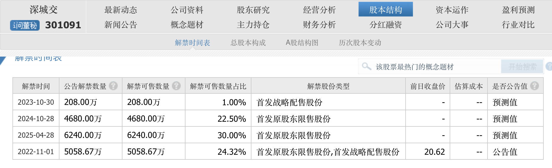 记者|赵阳戈 深城交(301091.SZ)面临卖压。 资料体现,深城交共计有5058.67万股(占总股本的24.3205%)的股份在11月1日解禁,此中,初次公开发行前已发行限售股数目为4680万股,占公司股本总数的22.50%,限售期为自公司初次公开发行并上市之日起12个月;初次公开发行战略 配售限售股数目为378.6737万股,占公司股本总数的1.8205%,限售期为自公司初次公开发行并上市之日起12个月。 泉源:同花顺 本次排除限售的股东户数共计6户,此中的启示控股股份有限公司(下称启示控股)、遐想(北京)有限公司(下称遐想北京)、珠海高瓴道远资产管理中心(有限合资)(下称高瓴道远)分别持有1560万股,占比均为7.5%。 泉源:公告 紧接着,11月2日深城交披露,遐想北京体现,有筹划通过会集竞价、大宗买卖业务大概其他合法方式减持公司股份合计不高出624万股,即不高出深城交股份总数的3%(若此期间深城交如有送股、资源公积金转增股本等股份变更事项,则对前述减持数目举行相应调解)。此中通过会集竞价买卖业务方式减持的,减持期间为自减持筹划公告披露之日起15个买卖业务日后6个月内(即2022年11月24日至2023年5月23日),且减持比例不高出深城交股份总数的1%;通过大宗买卖业务大概其他合法方式减持的,减持期间为自减持筹划公告披露之日起3个买卖业务日后6个月内(即2022年11月8日至2023年5月7日),且减持比例不高出深城交股份总数的2%。遐想北京的减持缘故起因:股东策划须要,至于减持代价,根据遐想北京作出的干系答应,应“参考发行代价且应符合法律法规的干系规定”。 作甚“参考发行价”?为此深城交还收到了来自创业板公司管理部的关注函。 根据公司11月9日晚间披露,“参考发行价”的寄义为“不低于发行价”,发生除权除息事项时,发行价应作相应调解。深城交初次公开发行股票于2021年10月29日于厚交所创业板上市,发行代价为36.50元/股。公司于2022年5月20日召开2021年度股东大会,审议并通过了年度利润分配及资源公积金转增股本方案。上述方案于2022年6月10日实验完毕,详细内容为以权益分派股权登记日2022年6月9日公司总股本1.6亿股为基数,向全体股东每10股分派现金3.01元(含税),同时以资源公积金向全体股东每10股转增3股。上述权益分派实验后,发行代价相应调解为27.85元/股(四舍五入,生存小数点后两位)。 因此,遐想北京的减持代价应当不低于27.85元/股。而且不但是遐想北京,高瓴道远、启示控股也是一样。 而现在的深城交,11月11日收盘价为22元。根据公告,当前遐想北京在公司股价到达27.85元/股及以上时,方可实验减持筹划。 值得注意的是,该批限售股解禁前,深城交曾收到遐想北京拟于解禁日出具减持筹划告知函的意向。深城交体现,其时思量到当前股价低于发行价,公司与遐想北京举行多次沟通,渴望其能暂缓干系减持筹划,并提示减持代价要服从原招股书答应。不外11月1日公司还是正式收到遐想北京减持筹划告知函,按照规定,公司11月2日举行了披露。 |
