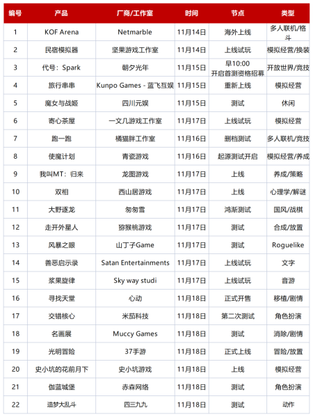 游戏观察是游戏日报打造的游戏产物综合分析栏目,内容聚焦于游戏市场表现和新游市场预期,连合亿级读者反馈,旨在为游戏行业提供更多元化、更真实、更有参考性的信息。如有发起或想分享的观点,接待接洽游戏日报小斑(GACAwards)。 iOS脱销榜TOP10榜单 本周(1106-1112)共计18款产物登上过iOS脱销榜TOP10,此中《王者光彩》《宁静精英》《好汉同盟手游》《原神》《梦幻西游》《三国志·战略版》6款产物告竣在榜7天结果。 相比上周,本周上榜产物数量有所增长,涉及厂商数量同样增长。本周登上过iOS脱销榜TOP10的18款产物中,腾讯占据一半,总计9款产物入榜,网易4款,米哈游、灵犀互娱、海彼游戏、鹰角网络、途游均为一款。详细在榜情况如下: 相较于上周,本周iOS脱销榜TOP10产物数量显着增多,核心缘故因由在于多款产物在近期迎来告急节点,此中值得重点关注的爆款网易游戏《光·遇》,腾讯游戏《光与夜之恋》与《重返帝国》。 腾讯游戏《光与夜之恋》,在11月7日停服更新后,上线“限定收信欲海狂澜”等一系列运动,开启多个脚色返场UP,促使该游戏更新后在iOS脱销游戏榜上飙升83位,成为本周iOS脱销榜TOP10游戏中名次变革幅度最大的游戏。 别的,腾讯游戏《重返帝国》在本周内开启S4全新赛季,时隔5个月之后再次杀入iOS脱销榜TOP10,到达游戏自上线iOS渠道的最好结果。 本周核心游戏观察 国风开放天下新游 失眠工作室 -《魂》 11月5日,由失眠工作室开发的国风开放天下新游《魂》开启限量测试。由于产物具有“国风”、“开放天下”以及开发团队所言的“不逼氪可买卖业务”等标签和特点,《魂》在公开伊始便得到了大量用户的关注,在根本无宣发情况下仍到达了近40万的预约量。颠末为期一周的测试后,产物在各渠道的评分趋于稳固,TapTap、好游快爆共计收到近2万条品评,评分均为8.9。 《魂》作为现阶段大量玩家关注的国风开放天下范例游戏,在美术风格、宣传片中比力新奇的游戏内容等方面得到了玩家的好评,而且很多没有拿到测试资格的用户由于对产物抱有很高的等待值而给出了五星好评。 但在8.9的高评分背后,《魂》同样收到了很多到场测试玩家的意见和发起。根据玩家反馈,《魂》在本年二月放出的宣传片非常吸引人,且开发团队对产物“不逼氪”、“Meta Face”等方面的先容让很多玩家抱有等待进入了游戏。 但测试后,游戏的玩法、打击感、买卖业务场合和方式都让部门玩家表现不满,好比对抗BOSS的时间可以纯挂机不必要手动利用、打击感较差、开发团队提到的“可买卖业务”是指在拍卖行买卖业务等。更有玩家对《魂》“大失所望”,以为开发团队制作进程迟钝、宣传与实际不符等。也有玩家把《魂》与《贪图山海》等产物做了对比,以为相比同范例的前作,《魂》尚有待改进。 团体而言,《魂》如今在各渠道显现的评分处于中上水平,且首测出现的游戏水平在玩家群体的口碑不一,以是产物质量和水平究竟怎样并不发急下定论。《魂》作为工作室开发的、时下大热的国风开放游戏,在首测阶段可以或许取得云云高的预约量和评分已实属不易,盼望在本次测试竣事后,开发团队可以或许继承对产物举行优化,在后续测试中取得更好的表现。 本周核心事故观察 叠纸游戏国风开放天下新游《百面千相》首曝PV 11月18日,叠纸游戏旗下十七折工作室国风开放天下动作新游《百面千相》首曝产物PV。PV放出后,“百面千相”、“叠纸”等相干词条敏捷登上各大平台热搜,同时登上TapTap预约榜首,引起广泛关注与讨论。 作为旗下有多款着名女性向产物的叠纸游戏,初次转型做国风动作开放天下产物吸引了很多玩家的留意。根据产物PV以及叠纸的游戏作品,大量玩家给出了“不消担心折饰、脚色美工”等评价,但从女性向超过到动作开放天下的巨大转型也劳绩了肯定的担心。同时有玩家以为制作团队“十七折工作室”可参考作品较少,对《百面千相》持生存态度。 就产物PV中的信息来看,《百面千相》的天下观与唐朝相近,且绿色琉璃瓦、兽面脊头瓦等具有光显辨识度的元素在产物中得到了较好的出现结果。玩家大概将在游戏中饰演PV中出现的脚色,在开放大天下中探索、举行主线剧情。 总体而言,作为有多款女性向产物加持的叠纸,在剧情、美术风格等方面备受玩家书赖,而在动作、开放天下产物必要具备的技能方面则被玩家持官网生存态度,产物团体等待值极高。 《王者光彩》IP新游《峡谷万象棋》官网上线 11月12日,在王者光彩2022共创之夜上,此前已经曝光的IP新作《王者万象棋》初次正式表态,从曝光内容来看,这将会是一款依托于王者光彩IP而打造的类自走棋玩法游戏,而王者光彩中的诸多好汉,都将以Q版情势登录该游戏。 别的据天眼查表现,腾讯已于本年7月申请注册多个“峡谷万象棋”、“王者万象棋”商标,当前商标状态均为期待实质查察。同时值得一提的是,在2019年10月王者光彩曾推出“王者模仿战”新玩法,该玩法与自走棋类似,当时便有人推测王者光彩会推出独立的IP自走棋游戏,直到如今3年已往,类似新作才姗姗来迟。 下周(11.13-11.19)新游预告 下周新游预计有20款产物测试或上线,此中包罗旦夕光年、青瓷游戏、中清龙图、西山居、心动、37手游以及四三九九新作。产物范例告急以模仿谋划为主,休闲、脚色饰演类次之。 部门重