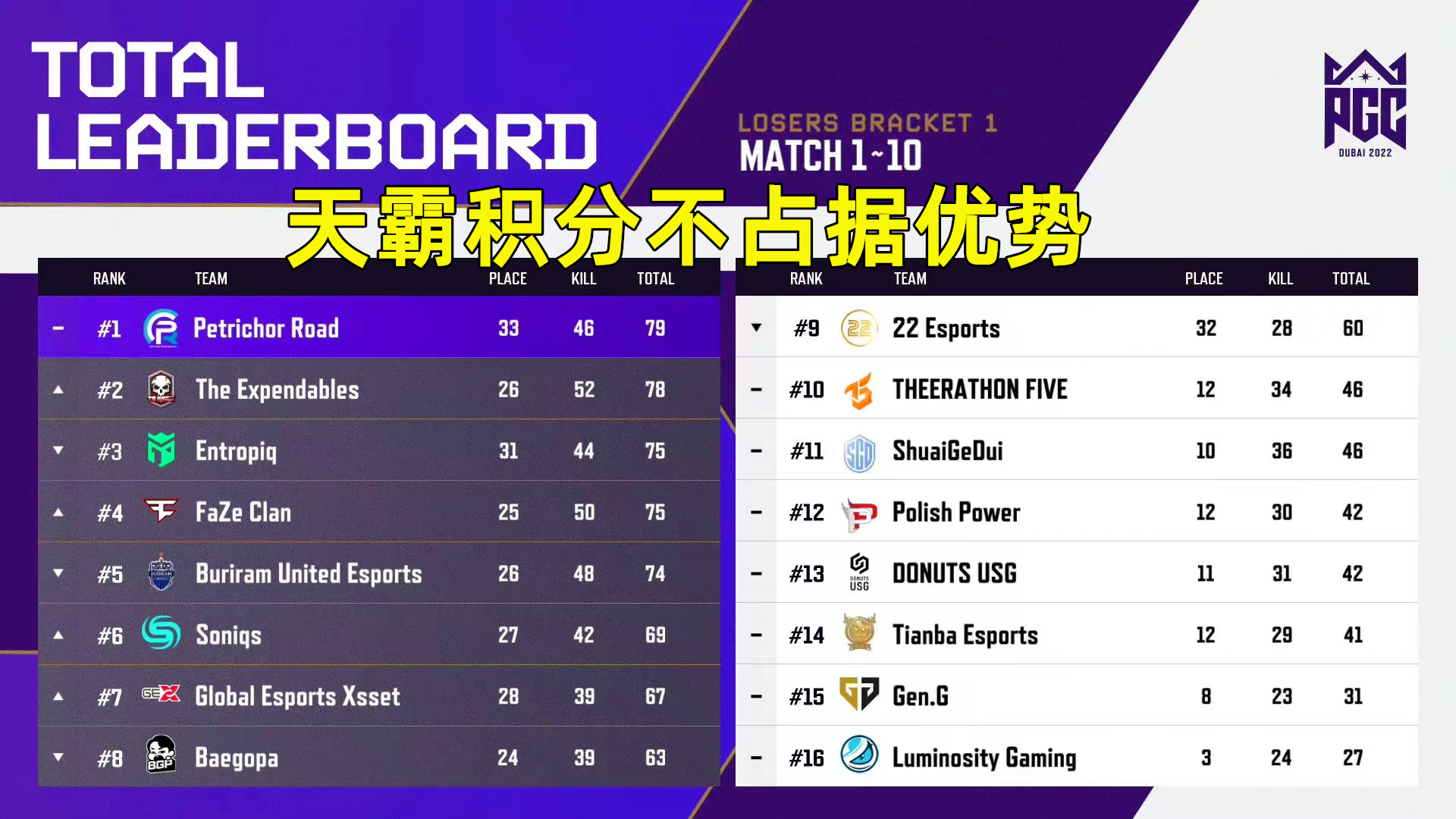 天霸处在镌汰边沿PGC2022败者组第一阶段的比赛已经竣事,颠末10个阶段的对决,终极确定PeRo、TE、EIQ、FAZE、BRU、SQ、GEX、BGP等八支队进入败者组第二阶段,而PCL赛区代表队天霸战队则以倒数第三的效果止步第一阶段。相对于PCL赛区其他队伍,不得不说,天霸这一次真的成为PCL赛区吊车尾队伍。 固然天霸未直接镌汰,但它的处境已经很伤害了,由于只剩下末了资格赛的一次机遇,最告急的是,从天霸选手在比赛中的体现来看,整个队伍缺少敢打敢拼的冲劲,无论是在圈外照旧得到天命圈,天霸在决定和运营方面都显得非常夷由,这也是导致天霸未能捉住镌汰分的缘故起因。 天霸临阵换帅在看到天霸云云糟糕的体现后,部分网友直接到天霸官博举行吐槽,各种“恨铁不成钢”的品评所处可见,可以说网友的扫兴之情显现得极尽形貌。那为何天霸会有发挥得云云不抱负呢?在个人看来,这背后跟天霸临阵换下林树有直接关系。究竟林树在指挥和运营是很有履历,反观小唐的指挥就略显履历不敷和不果断。 至于天霸为何换下林树成为替补,信赖各位玩家心中都有答案,那就是和天霸在续约方面没有告竣同等,以是天霸直接选择让其他选手在PGC大赛上历练一下。在无缘PGC比赛后,林树在个人平台晒出,算是对一年电竞效果的总结。值得一提的是,在PGC开赛后,林树开始了OB主播生活,依附搞笑幽默的讲授也是吸粉不少。 4AM故意向试训林树而对于林树将来的行止,也传来了一些消息,此中重修的4AM就故意向林树,由于除了PGC比赛外,国内还没有其他的比赛,以是不绝缺少试训的机遇,不外信赖在PGC竣事后,会有不少战队向林树抛出橄榄枝,固然林树年事不是,但是在比赛中,果断的指挥和老练的运营是至关告急的,这也是林树的上风所在。 总而言之,渴望天霸可以或许把握住接下来资格赛的机遇,利用休赛的时间,复盘总结一下不敷,调解好选手状态和改变战术,积极在PGC大赛舞台不要留下遗憾。各位玩家,你们以为天霸在资格赛中能脱颖而出吗? |