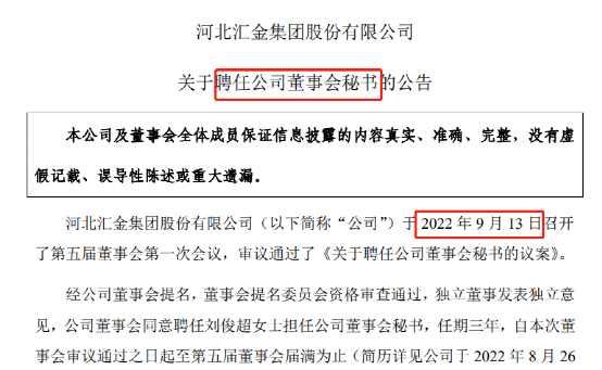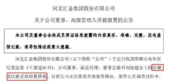 中国基金报记者 南深 A股的董事会秘书也越来越成为高危职业?继此前沃森生物之后,又一家A股公司汇金股份董秘因涉嫌违法被采取留置步伐。 11月13日晚汇金股份公告,于克日收到邯郸市永年区纪委监委《存案关照书》,公司董事、副总司理、董事会秘书刘俊超因涉嫌违法被采取留置步伐。公司称如今无法获悉详细案件环境,案件正在观察过程中。 值得注意的是,刘俊超本年9月被再次聘任为董事会秘书,距此次失事恰好两个月。近一年来汇金股份的高层似乎比力动荡,此前公司不到半年时间一连两任董事长辞职。汇金股份比年业绩表现也较差,本年三季报从大幅下滑转为大额亏损。 未见“因个人缘故原由”语言 随着刘俊超“失事”,公司随即于2022年11月13日召开第五届董事会第三次集会,集会审议通过了《关于提请公司股东大会免除刘俊超密斯非独立董事职务的议案》和《关于免除刘俊超密斯副总司理、董事会秘书职务的议案》,同意免除刘俊超董事、副总司理、董事会秘书及审计委员会委员职务。 公司称,停止如今,刘俊超密斯未持有公司股票。公司各项生产筹谋活动正常有序举行。为包管公司董事会工作的正常开展,暂由公司董事长杨振宪代为推行董事会秘书职责。值得注意的是,与此前此类公告通常提及观察因“个人缘故原由”或“与公司无关”等差别,汇金股份此次公告未见上述表述。 资料表现,留置步伐是纪检监察构造和查察构造所采取的限定被观察人的人身自由的一项严厉步伐。 根据《中华人民共和国监察法》第二十二条,被观察人涉嫌贪污行贿、失职渎职等严峻职务违法大概职务犯罪,监察构造已经把握其部门违法犯罪究竟及证据,仍有紧张题目必要进一步观察,并有下列环境之一的,经监察构造依法审批,可以将其留置在特定场所:(一)涉及案情庞大、复杂的;(二)大概逃跑、自尽的;(三)大概串供大概伪造、隐匿、扑灭证据的;(四)大概有其他妨碍观察活动的。 对涉嫌行贿犯罪大概共同职务犯罪的涉案职员,监察构造可以依照前款规定采取留置步伐。 本年9月刚刚获再聘 本年9月13日,汇金股份发布关于聘任公司董事会秘书的公告,“经公司董事会提名,董事会提名委员会资格查察通过,独立董事发表独立意见,公司董事会同意聘任刘俊超密斯担当公司董事会秘书,任期三年,自本次董事会审议通过之日起至第五届董事会届满为止”。但没想到原定三年的任期才过来两个月就戛然而止。 资料表现,刘俊超1984年10月出生,本年38岁,中国国籍,无永世境外居留权,本科学历。刘俊超2007年7月至2012年5月在恒每天鹅人力资源部工作,2012年5月至2015年7月在恒每天鹅董事会办公室工作,任董事会办公室主任、证券事件代表、公司第四党支部书记。 今后,随着恒每天鹅更名华讯方舟,刘俊超2015年7月至2016年12月任华讯方舟副总司理、董事会秘书。从华讯方舟(已于2022年6月退市)脱离后刘俊超苏息了泰半年,于2017年9月至2020年3月任北京天星资源股份有限公司主管合资人。2020年4月开始刘俊超转至汇金股份,任董事会秘书、副总司理,2021年9月开始任公司董事,直到此次被留置观察并被清除职务。 汇金股份2021年报表现,刘俊超年薪为47.74万元,如今未持有公司股份。 汇金股份主业务务重要分为智能制造业务、信息化体系集成业务、信息化数据中心业务及供应链业务,本年业绩表现不佳。2021年公司扣非净利润突然曝出亏损4500多万元,本年亏损进一步扩大,三季报已经亏损5400多万元。 本年8月公司突然公告变动使用多年的管帐师事件所。公司称,“为了更好地包管公司审计工作的独立性、客观性,同时综合思量公司业务发展和未来审计的必要等现实环境,经充实沟通协商,公司拟改聘大华担当公司 2022 年度审计机构”。 公司的高层也比力动荡,此前半年时间两任董事长离职。 2021年12月6日公司公告,收到邢海平提交的书面辞职陈诉,邢海平因工作调解缘故原由申请辞去公司董事、董事长、战略委员会主任委员等职务,辞职后邢海平将不再担当公司任何职务。两天后公司公告由崔仲民担当公司董事长职务。然而半年时间不到,本年5月30日公司公告收到崔仲民提交的书面辞职陈诉,辞职后崔仲民将不再担当公司任何职务。 编辑:小茉 |