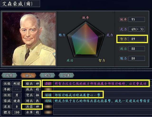 二战名将的排行话题,提及来早已不是什么希奇事,不外每次但凡有新的版本出现,总能引起包罗游戏、军事和汗青范畴的粉丝们争相探究。在三国志11天下版MOD中,全篇登场的二战欧洲区名将(英法德苏美)统共有15位,按照游戏设定的本事值可以分别成五个梯队,本期就来给各位做个详细梳理。 第五梯队:布琼尼(苏)、戴高乐(法)、铁木辛哥(苏)、坎宁安(英)。 布琼尼是人类汗青上末了一个著名的骑兵统帅,这位生动于一战和二战接壤期间的俄国军事家,不幸淹没在了钢铁洪流的海潮之下。在卫国战争竣事后,他被安排做了前苏联的农业副部长,专门管养马,过上了和弼马温差不多的生存。游戏安排给布琼尼唯一的特技就是骑将,连个繁殖都不给,武力值倒还过得去,就是脑筋很容易被忽悠。 戴高乐将军是我们的老朋侪了,他对于促成中法的邦交是做出了巨大贡献的,因此政治和魅力的评分都很高。至于军事就真的不敢恭维了,只能说他面临元首丝百折不挠的韧劲值得敬佩。 铁木辛哥着实是一位本事良好且行事慎重的元帅,从入侵波兰和苏芬战争就看得出来。怎样斯大林并不是很信托铁木辛哥,导致他在二战时期没有了显现技艺和建功立业的时机。三国志11天下版只给了铁木辛哥一个掠夺特技,他最善于的兵种是装甲东西,总体上被削得挺惨。 大英帝国的水师元帅坎宁安,初次开创了舰载机打击兵舰的战例。这位地中海的老水手最大的一桩战功,就是塔兰托海战大胜意大利。遗憾意大利这个对手原来就是专门负责搞笑的,因此这场胜利也只给他在游戏里带来了推进和强袭两个技能,水军的顺应性被定格到了“极”。 第四梯队:邓尼茨(德)、麦克阿瑟(美)、尼米兹(美)、隆美尔(德)。 发明白狼群战术的邓尼茨,让盟军在大西洋上丧失了共计2000多艘各类舰船,因此游戏还给他封了个“小水神”。怎样潜艇队伍始终不敢见光,邓尼茨的其他本事也犹如他的潜艇一样被深深淹没。 跟楼上的邓尼茨比起来,麦克阿瑟的运气是真不错,这位苏格兰贵族的后代不绝都被光环困绕着,只管他现实的军事指挥本事让人有点一言难尽。麦克阿瑟征战朝鲜的结果,就像是一个款项无穷刷且装备强到顶的土豪玩家,被一分钱都没充过的布衣玩家靠操纵硬生生打输了一样,游戏还能给安排个攻城技能,完满是看在他大烟斗的份上。 邓尼茨是小水神,尼米兹就是洪流神了,89点的初始统率值已经是一个水师将领的天花板。别的,尼米兹的推进和操舵技能也都是围绕着水面机动本事而搭配,登岸他就没性情了。 “戈壁之狐”隆美尔,他着实在北非战场上打得相当不错。阿拉曼战争完满是蒙哥马利仗着英美家底厚陵暴人,要是给隆美尔划一数目标军力和物资装备,结果怕是别的一个故事。隆美尔的装甲坦克顺应性到达了“神”级,技能槽拥有巧变和攻城,三国志11天下版还是有点削了他,否则他应该跻身在第二梯队。 第三梯队:蒙哥马利(英)、艾森豪威尔(美)、华西列夫斯基(苏)。 这是本文排位最靠前的英国将领,蒙哥马利给我个人的感觉不绝挺虚高,固然没有麦克阿瑟那么浮夸,但也确实是吹得因素比力大。无论阿拉曼战争还是诺曼底登岸,他都是靠着家底厚,在容错率很高的情况下得胜并不能看出一个将领的现实程度。市场花圃举措是比力见真章的,蒙哥马利又闹了笑话,以是他的真实程度怎么样,貌似也就是如许了。不外话又说返来,同样坐拥殷实的家底,麦克阿瑟还总是打不赢,以是蒙哥马利排位在他之上倒也没弊端。 艾森豪威尔堪称美国二战时期了局最圆满的将领,不但做过盟军总司令,战后还乐成当选了总统。三国志11天下版给他的评价很高,枪兵和坦克都评到了神,最紧张同时兼容了虚实和深谋,这是原版游戏里曹操和司马懿合体才气实现的。 奇谋是倾国的增强版,战略翻倍乐成率不再受到性别的限定,加上93点初始的智力值,华西列夫斯基是名副着实的苏联好汉。由于乐成指挥了斯大林格勒的反击战,华西列夫斯基还得到了引导神技的加持,苏联巨细将官在游戏里的培训都可以让他来做。 第二梯队:巴顿(美)、朱可夫(苏)。 这两人没争议,都是硬生生靠着气力打出来的,以是理所应当不思量身世而跻身到他们最该处于的梯队上。巴顿在游戏里最大的特点就是持有陷阵特技,欺压目标与他举行单挑,争抢人头的服从极高。他的射程同样是个大后期技能,神级坦克手没有谁不爱的。 朱可夫的定位则更靠近原版三国志11里的张辽,威风之后是三个神级的兵种顺应性。给他安排个持有连击专长的副将在身边,苏军钢铁洪流所到之处皆可传檄而定。 第一梯队:曼施坦因(德)、古德里安(德)。 元首的左右护法认真不是浪得浮名,曼施坦因和古德里安是三国志11天下版里仅有的两个兵种顺应性带“圣”的二战将领,足以令他二人俯瞰芸芸众生。德意志战车一旦发动起来,那还真是得全天下协力才有大概摁得住,英隽誉将在他们的眼前都是弟弟。 本期的分享有点长,非常感谢各位有耐心看完,如果各人有本身的见解和见解,也欢迎多多留言交换。须要体验游戏的朋侪,记得在批评区盖楼! |