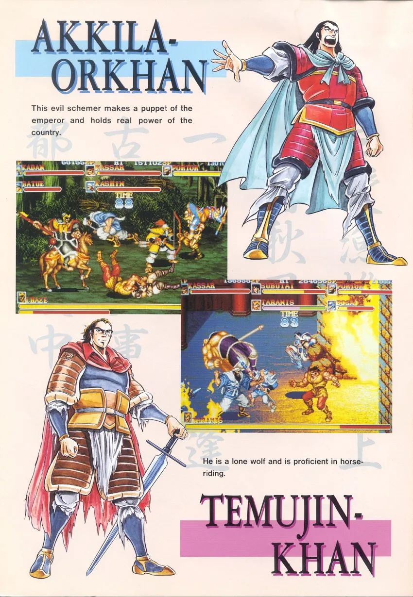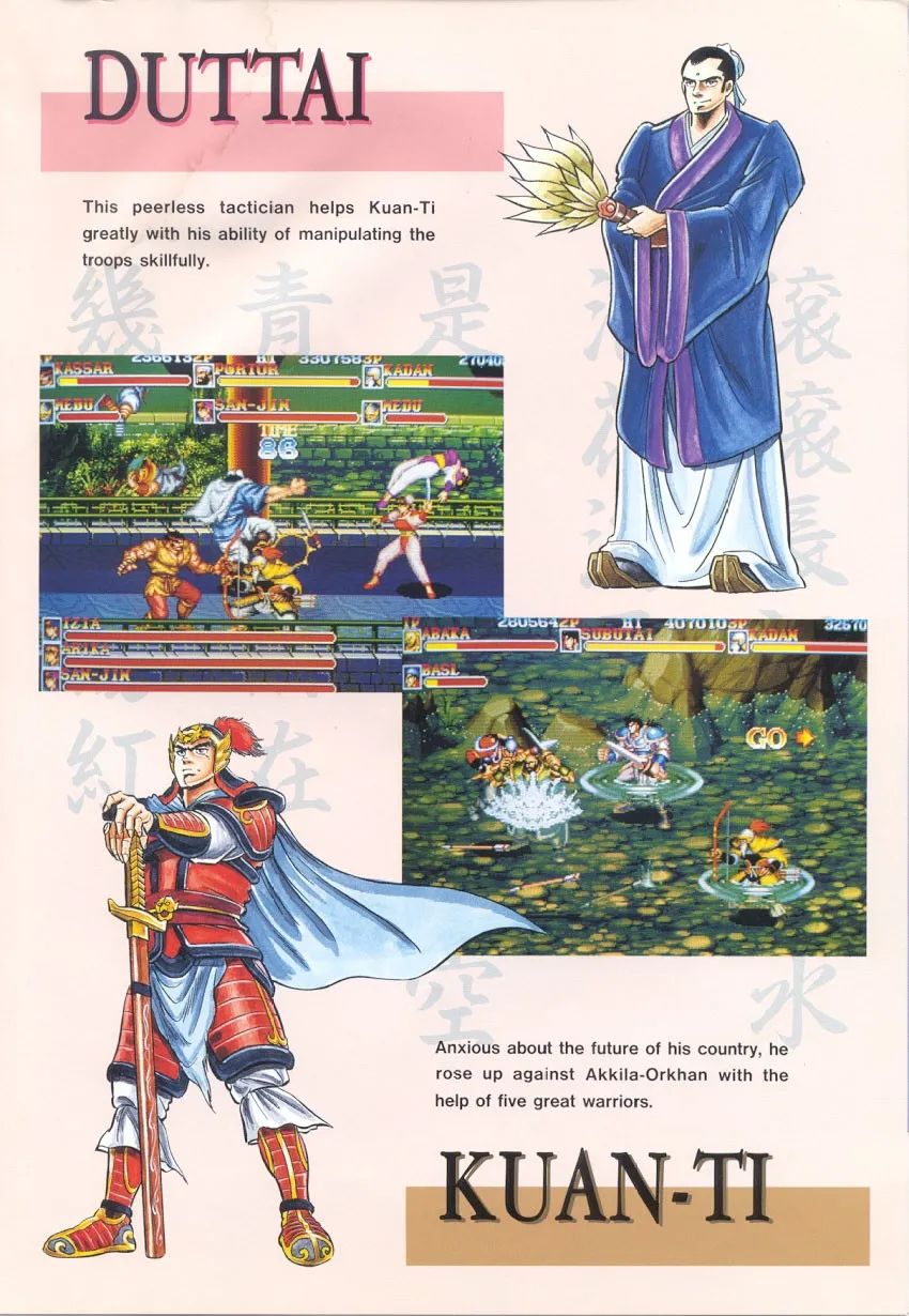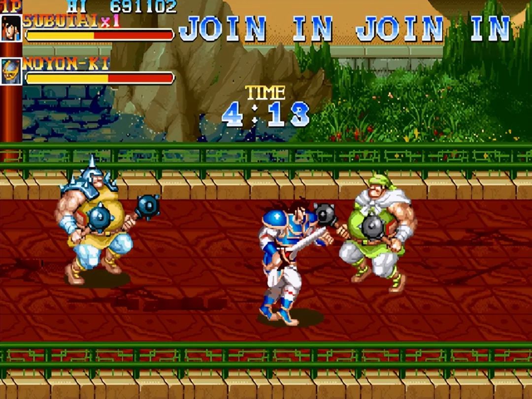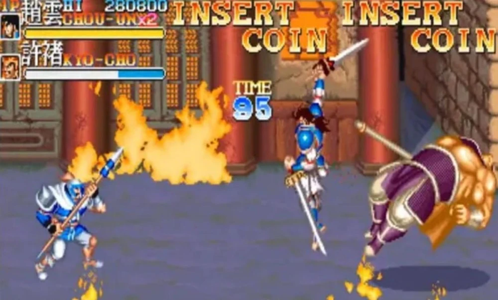 提及街机游戏,想必给不少玩家的童年留下了难忘的回想,除了种类丰富的游戏外,一起玩的小搭档和街机厅独有的浓厚氛围同样令人难以忘怀。当年街机厅里我们常常能看到墙上用夺目大字写着“克制吃包子”,新玩家看到这里恐怕一脸懵逼了,岂非是像地铁车厢里那样克制味道太重吗?而老玩家立即就明确了,本期我们就来回顾下这个非常著名的“典故”,以及这款街机厅里必备的永世生存游戏《吞食天地2 赤壁之战》。 自从上世纪八十年代街机开始盛行,横版卷轴动作过关游戏不停是热门,可以多方向移动让玩家有了纵深体验,这种计划在没有多边形技能的年代尤为突出,加上丰富的场景、多变的招数、特点光显的对头和BOSS,多人互助更是爱好无穷。当年很多厂商都推出了浩繁精良作品,但真正把这个范例带到全新高度的,莫过于老牌动作厂商卡普空。 1990年,卡普空历时两年耗资10亿日元开辟的街机基板CPS正式投入利用,强盛的数据运算本事带来了壮丽的色彩表现、立体感十足的多层卷轴、流通移动的超大脚色,让街机游戏的画面操纵体验上了一个台阶。以后卡普空在街机范畴成为了第一方硬件厂商,浩繁精良作品纷纷到来,除了我们熟悉的格斗游戏《陌头霸王2》外,横版动作过关也出现了几个天王级作品,比方《快打旋风》、《名将》、《卡迪拉克与恐龙》、《圆桌骑士》、《龙王》、《处罚者》等,这些作品在国内玩家群体中有着极高的着名度,但是和《吞食天地2 赤壁之战》相比,只能是小巫见大巫。 1992年10月推出的本作,亚洲版名为《三国志2》,当年国内街机厅紧张是日版和亚版,别的还著名为Warriors of Fate的西欧版,游戏的原型是日本漫画家本宫广志创作的《吞食天地》漫画,原作属于对《三国志》、《三国演义》彻底举行魔改,改编成街机游戏后反倒规复正常了。总的来说《吞食天地2 赤壁之战》将三国期间著名士物和战役,融入到卡普空成熟的动作过关游戏玩法中,只管细节和真实汗青有收支,但还在可继续范围内,这也是游戏在深受三国民间文化熏陶的国内市场,受到浩繁玩家追捧的核心缘故原由。 本作围绕着赤壁之战这场三国时期紧张战役,计划了九个关卡,包罗了博望坡、新野、白河、长坂坡、长坂桥、赤壁、华容道等著名战场,游戏推出时正值CPS基板生活顶峰期,画面场景细节丰富,丛林、河道、山地、战船、宫殿等差别风格的关卡令人印象深刻。流程也举行了奇妙计划,不再是简朴的横向推图,像长坂坡和长坂桥这一去一回两个关卡,玩家体验到了演义中赵子龙七进七出救阿斗的出色故事,我以为唯一有些遗憾的,就是假如能参加全程骑马追逐战斗的关卡就更好了,类似《卡迪拉克与恐龙》第三关驾车那种。 游戏最吸引人的内容,莫过于五位本事招式各异的主角:关羽、张飞、赵云、黄忠、魏延,只管在演义中黄忠和魏延是在赤壁之战后才登场,不外对于一款动作游戏倒也无感冒雅,玩家可以选择最喜好人物,同时街机支持最多三人同时游戏。本作操纵上手非常简朴,摇杆控制人物移动外,只有攻击和跳跃两个按键,除了平凡攻击和近身摔外,并没有参加卡普空同类作品中连推摇杆跑动攻击的功能,脚色必杀技紧张通过下上攻击实现,别的某些关卡中另有机会骑马作战。 除了主角之外,每关末端的反派BOSS也都来自演义中曹操麾下武将,不但有李典、夏侯惇、许褚、曹仁、张辽、徐晃等赫赫著名的大将,淳于导、晏明、夏侯杰、夏侯恩等本来是打酱油的脚色,这次在游戏中也变成了紧张人物,终极BOSS居然是演义中早已被处决的吕布,不外过细一想游戏如许计划倒也公道,毕竟吕布在日系三国游戏中都是武力最强的存在。 本作有个非常故意思的计划,那就是主角和BOSS很多攻击动作,都可以在《陌头霸王2》中找到原型,比方关羽的飞扑来自本田;张飞的前冲拳来自拳王拜森、螺旋大坐来自桑吉尔夫、骑到对头身上狂咬来自布兰卡;赵云的升龙剑来自肯;魏延的后空翻脚刀来自古烈;许褚的翻滚攻击来自布兰卡;晏明的真空波来自古烈等。如许的计划不但大大丰富了人物动作,也让老玩家们倍感密切,毕竟当年国内街机厅内,《陌头霸王2》和《吞食天地2》是最火热的两款游戏。 游戏中各种杂兵同样给人留下了深刻印象,除了最平凡的长矛小兵外,双持匕首兵、弓箭兵、忍者兵、肥仔兵、大壮兵、女兵等,通过差别的攻击方式给玩家带来了巨大贫困,差别种类的杂兵组合起来更加令人头疼,尤其是在BOSS战时,偶然候杂兵比BOSS自己更难搞,不外玩家也研究出一些战术,比方故意留一个小兵不打死,如许就不会刷出新一波杂兵。别的卡普空为了不让对头种类显得单一,采取了非常取巧的计划,那就是同一种对头以差别颜色和名字区分,最著名的莫过于赵绅、赵触、赵熊、赵锤、赵明大壮五人组,这也成了游戏史上最著名的兄弟组合。另一对姐妹花组合美美、美铃、美冴,形似春丽的造型同样令人难忘,厥后才知道都是由《陌头霸王2》人物计划师安田朗创作,那长得不像才怪。 本作关卡中出现的各种道具,同样表现了开辟者过细的用心,玩家可以捡到多种古代武器,机动运用能大大进步杀敌服从,别的还计划了几把潜伏的宝剑,比方演义中赵云在长坂坡击杀曹操部将夏侯恩得到青釭剑,在游戏中玩家同样也会碰到他,潜伏宝剑威力巨大可谓神器。除了武器加血道具也有多