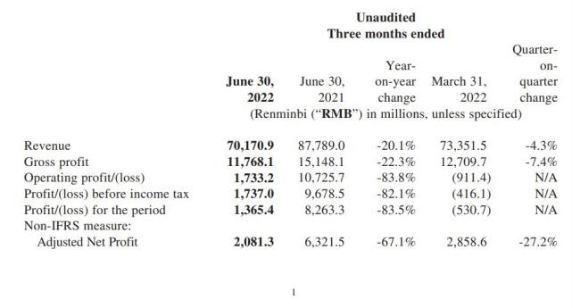 腾讯科技讯 8月19日消息,小米团体周五发布了停止6月30日的2022年第二季度未经审计财报。财报体现,小米第二季度营收702亿元,同比下滑20.1%;调解后净利润为20.8亿元,同比暴跌67.1%;核心智能手机业务收入为423亿元,举世智能手机出货量为3910万部;MIUI举世月活泼用户(MAU)到达5.47亿,同比增长9310万人。 划重点 Array 一、营收下滑凌驾两成 1、2022年第二季度,小米营收同比降落20.1%,从客岁同期的878亿元降至702亿元。此中: ——来自智能手机部分的收入为423亿元,而客岁同期为591亿元,这重要是由于智能手机出货量淘汰所致。智能手机出货量从客岁同期的5290万部降落到3910万部,降幅为26.2%,重要缘故原由是关键零部件连续短缺、新冠肺炎疫情反弹以及举世宏观经济逆风。小米智能手机的均匀售价从2021年第二季度的1116.7元降落至1081.7元,跌幅为3.1%,重要是由于在618电子商务购物节期间加强了促销工作,以及本年本地高端智能手机的产物发布时间表发生变革,但由于美元升值导致智能手机在外洋的均匀售价上升,部分抵消了这一降幅。 ——物联网和生存方式产物部分的收入下滑4.5%,从客岁同期的207亿元降至198亿元,这重要是由于外洋市场连续的举世宏观经济逆风导致某些物联网产物的需求削弱所致,但小米Pad 5系列平板电脑和中国本地智能大型家电种别(包罗智能空调、冰箱和洗衣机)收入的增长部分抵消了这一影响。小米智能大型家电种别在2022年第二季度继承实现强劲增长,收入同比增长凌驾25%,这重要是由于智能空调和冰箱在大陆出货量增长所推动。 ——来自智能电视和条记本电脑的收入从客岁同期的60亿元降至53亿元,降幅为12.4%,这重要是由于智能电视的均匀售价随着体现面板代价的降落而降落,但部分被出货量的增长所抵消。 ——互联网服务业务收入降落0.9%,从客岁同期的70.3亿元降至69.7亿元,这重要是由于金融科技业务的收入淘汰,但电视增值服务和游戏业务收入的增长部分抵消了这一降落。 ——其他收入增长20.2%,从客岁同期的9.318亿元增至9.989亿元,重要是由于写字楼贩卖收入的增长所推动。 2、2022年第二季度,小米贩卖本钱从客岁同期的726亿元降落到584亿元,降幅为19.6%。此中: ——与智能手机部分干系的智能手机贩卖本钱降落了25.9%,由客岁同期的521亿元降至386亿元,这重要是由于小米智能手机销量降落所致; ——与物联网和生存方式产物部分干系的贩卖本钱降落了5.6%,从客岁同期的180亿元降至170亿元,这重要是由于小米物联网和生存方式产物的贩卖额降落以及体现面板等关键部件的代价降落所致; ——与互联网服务部分干系的互联网服务贩卖本钱增长3.4%,从客岁同期的18亿元增长到19亿元,这重要是由于小米广告业务和电视增值服务的本钱增长所致,但被金融科技业务的本钱降落部分抵消; ——与小米其他部分干系的贩卖本钱增长27.2%,从客岁同期的7.334亿元增长到9.329亿元,重要是由于贩卖写字楼的本钱增长所致。 3、2022年第二季度,小米毛利润从客岁同期的151亿元降落至118亿元,降幅为22.3%。此中: ——智能手机部分的毛利率从客岁同期的11.8%降落到8.7%,这重要是由于加强了清算库存的促销活动,特别是在中国大陆的618电子商务购物节期间,以及美元升值导致本钱增长所致; ——物联网和生存方式产物部分的毛利率从客岁同期的13.2%上升到14.3%,这重要是由于体现面板等关键部件的代价降落所致; ——互联网服务部分的毛利率从客岁同期的74.1%降落到73%,这重要是由于小米的安装前业务与智能手机出货量干系的收入降落,进而导致广告业务利润率降落所致; ——由于上述缘故原由,小米毛利率从客岁同期的17.3%降落到16.8%。 4、其他费用 ——在2022年第二季度,小米研发费用从客岁同期的31亿元增长到38亿元,增幅达22.8%,这重要是由于与智能电动汽车和其他新办法干系的研发付出的增长所致; ——在2022年第二季度,小米贩卖和营销费用降落6.1%,从客岁同期的57亿元降至53亿元,重要是由于促销和广告费用淘汰所致; ——在2022年第二季度,促销及广告开支由客岁同期的21亿元降至18亿元,降幅为14%,这重要是由于加强了本钱控制; ——在2022年第二季度,行政费用从客岁同期的12亿元增长到13亿元,增幅为14.3%,这重要是由于新写字楼的费用增长所致,包罗折旧和摊销费用; ——在2022年第二季度,小米其他业务收入从客岁同期的2.346亿元降落到1.862亿元,降幅为20.6%,这重要是由于小米从被投资公司收到的股息收入淘汰所致; 5、现金及现金等价物282亿元 ——2022年第二季度,小米策划活动产生的现金净额为16亿元,即策划活动产生的现金26亿元减去缴纳的所得税10亿元; ——2022年第二季度,小米用于投资活动的现金净额为99亿元,这重要来自短期银行存款净增47亿元和长期银行存款净增34亿元; ——2022年第二季度,小米融资活动产生的现金净额为13亿元,这重要归因于乞贷净增长17亿元,此中4亿元用于回购股票; ——停止2022年3月31日和2022年6月30日,小米的总乞贷分别为297亿元和326亿元; ——停止2022年3月31日和2022年6月30日,小米的现金和现金等价物分别为347亿元和282亿元。 二、按部分具体分别 1、智能手机部分 2022年第二季度,举世宏观经济动荡和新冠肺炎疫情反弹继承影响着市场对智能手机的团体需求。市场研究机构Canalys的数据体现,举世智能手机行业第二季度出货量同比降落8.