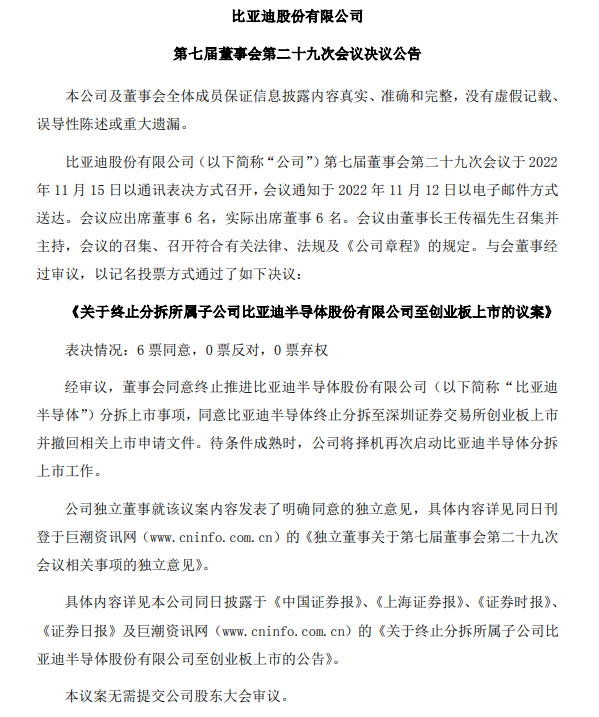 IT之家 11 月 15 日消息,本日晚间,比亚迪股份有限公司发布公告,制止分拆所属子公司比亚迪半导体股份有限公司至创业板上市。 比亚迪表现,待条件成熟时,公司将择机再次启动比亚迪半导体分拆上市工作。 公告称,在公司推进比亚迪半导体分拆上市期间,我国新能源汽车行业需求呈发作式增长。根据中国乘联会数据,2022 年 1-9 月,我国新能源乘用车国内零售 387.7 万辆,同比增长 113.2%,预计 2022 年整年新能源汽车销量将到达 650 万辆。新能源汽车行业的高速增长态势,使得晶圆产能成为车规级功率半导体模块产能瓶颈。 比亚迪半导体为了扩大晶圆产能,在审期间已投资实行济南功率半导体产能创建项目。济南项目现在已乐成投产,产能爬坡环境精良,但面临新能源汽车行业的连续增长,新增晶圆产能仍远不能满意卑鄙需求。为尽快提升产能供给本领和自主可控本领,比亚迪半导体拟抢抓时间窗口,开展大规模晶圆产能投资创建。在济南项目底子上,进一步增长大额投资,预计对比亚迪半导体将来资产和业务结构产生较大影响。 公司为加速晶圆产能创建,综合思量行业发展环境及将来业务战略定位,统筹安排业务发展和资源运作规划,经充实审慎的研究,决定制止推进本次分拆上市,同意比亚迪半导体制止分拆至深圳证券买卖业务所创业板上市并撤回干系上市申请文件。公司将加速干系投资扩产,待干系投资扩产完成后且条件成熟时,公司将择机再次启动比亚迪半导体分拆上市工作。 IT之家相识到,本年 1 月,厚交所创业上市委 2022 年第 5 次审议集会公告表现,比亚迪半导体于 1 月 27 日创业板首发上会。本年 4 月,厚交所文件表现,比亚迪半导体考核状态变更为上市委集会通过。 从招股书来看,比亚迪半导体此次 IPO 拟募资26.86 亿元,投建新型功率半导体芯片产业化及升级项目、功率半导体和智能控制器件研发及产业化项目以及增补活动资金。 官网信息表现,比亚迪半导体股份有限公司是国内领先的 IDM 企业,重要从事功率半导体、智能控制 IC、智能传感器、光电半导体,半导体制造及服务,覆盖了对光、电、磁等信号的感应、处理处罚及控制,产物广泛应用于汽车、能源、工业和消耗电子等范畴,具有广阔的市场远景。比亚迪半导体矢志成为高效、智能、集成的新型半导体供应商。 |