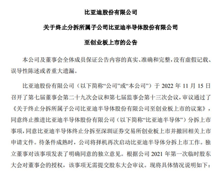 比亚迪半导体苦战了一年半的创业板IPO终究败北而归。 11月15日,比亚迪公告称,公司董事会审议通过同意克制分拆所属子公司比亚迪半导体股份有限公司至创业板上市。 根据公告,比亚迪半导体为了扩大晶圆产能,在审期间已投资实行济南功率半导体产能建立项目。济南项目如今已乐成投产,产能爬坡环境精良,但面临新能源汽车行业的连续增长,新增晶圆产能仍远不能满意鄙俚需求。为尽快提拔产能供给本领和自主可控本领,比亚迪半导体拟抢抓时间窗口,开展大规模晶圆产能投资建立。在济南项目底子上,进一步增长大额投资,预计对比亚迪半导体未来资产和业务布局产生较大影响。 公司为加快晶圆产能建立,综合思量行业发展环境及未来业务战略定位,统筹安排业务发展和资源运作规划,经充实审慎的研究,决定克制推进本次分拆上市,同意比亚迪半导体克制分拆至深圳证券生意业务所创业板上市并撤回干系上市申请文件。 比亚迪还表现,待公司完成干系投资扩产后且条件成熟时,公司将择机再次启动比亚迪半导体分拆上市工作。克制本次分拆上市不会对公司现有生产谋划运动和财务状态造成庞大倒霉影响,也不会对公司未来发展战略造成庞大倒霉影响。 IPO之路四度被“停止” 自客岁6月启动之后,比亚迪半导体的IPO之路可谓停滞重重,在周二公布克制上市之前,比亚迪半导体IPO之路履历了四次“停止”。 2021年8月18日,因发行人状师北京市天元状师变乱所被中国证监会备案观察,厚交所停止比亚迪半导体发行上市考核。2021年9月1日,北京市天元状师变乱所出具复核陈诉后,厚交所规复了比亚迪半导体的发行上市考核。 2021年9月30日,比亚迪半导体由于IPO申请文件中纪录的财务资料已过有效期,厚交所再次停止了比亚迪半导体的发行上市考核。2021年11月30日,比亚迪半导体完成财务资料更新,厚交所再度规复了其发行上市考核。 2022年1月27日,创业板上市委员会召开2022年第5次审议聚会会议效果表现,比亚迪半导体于1月27日创业板首发上会。但比亚迪半导体在乐成过会之后,却不绝没有被提交注册。 3月31日,比亚迪半导体因其IPO申请文件中纪录的财务资料已过有效期,须要增补提交,厚交所再度停止其发行上市考核。4月28日,比亚迪半导体完成财务资料更新,厚交所再度规复了其发行上市考核。 9月30日,比亚迪半导体又因财务资料逾期,须要增补提交,厚交所又一次停止了比亚迪半导体的发行上市考核。 质疑不绝 不但云云,比亚迪半导体还由于“与母公司比亚迪业务深度关联”多次遭到证监会问询,涉及分拆独立性、庞大资产购买等标题。 在7月份的问询中,证监会要求比亚迪半导体增补阐明是否自身具备独立谋划本领,以及其所投入的庞大资产购买事项是否对未来业绩产生庞大影响。 比亚迪股份是比亚迪半导体的控股股东,持有其72.30%的股份比例。借着子公司的身份,比亚迪半导体的营收中有六成靠母公司“帮衬”。 招股书先容,2019年、2020年和2021年,比亚迪半导体向关联方贩卖商品、提供劳务及条约能源管理服务的金额分别为6.1亿元、8.5亿元和 20.1亿元,占业务收入的比例分别为54.86%、59.02%和63.37%,且同类产物关联贩卖毛利率高于非关联贩卖。 比亚迪半导体在复兴函中表现,经比对,同范例产物下比亚迪股份向公司采购代价一样平常低于向其他供应商采购的代价,第三方供应商均为外资厂商,公司产物在划一规格条件下具备较强代价上风,不存在大股东向发行人运送长处的情况。 比亚迪半导体还说,2021年公司车规级业绩环境与鄙俚行业保持划一,并非大股东向发行人运送长处。业绩向好源于新能源汽车市场需求快速增长,动员公司车规级半导体贩卖额增长。 庞大资产收购方面,证监会曾要求比亚迪半导体充实阐明投资8英寸晶圆装备采购公道性。 2021年8月24日,比亚迪半导体与济南高新财金投资有限公司、济南财产发展投资团体有限公司合资设立济南半导体,注册资源49亿元,此中比亚迪半导体出资比例为77.75%。济南半导体未来将重要举行8英寸晶圆厂功率半导体器件的研发、生产和贩卖。 令人迷惑的是,济南半导体为什么要斥资30.5亿元购买工艺相对落伍的8英寸晶圆制造装备?据证监会称,前多数国际主流半导体装备厂商,将资源更多的投入在12英寸装备研发及生产上,已克制或镌汰8英寸厂晶圆装备的生产。 比亚迪半导体在厥后的复兴中称,现阶段大部分车规级功率半导体仍重要在8英寸晶圆上生产;而12英寸晶圆制造产线由于工艺尚未成熟,大概要耗费3至5年时间才气形成完全匹配鄙俚需求的产能,无法及时满意新能源汽车快速增长的市场需求。 未来再战IPO不可制止 固然现阶段比亚迪克制分拆比亚迪半导体上市,但拆分半导体业务是始终不可制止的一条路。 对于比亚迪而言,通过拆分出半导体业务,公司能更加聚焦新能源汽车业务,提拔公司的运营服从,优化公司的财务状态。 对于比亚迪半导体来说,通过拆分后独立上市,公司可以拓宽融资渠道,及时增补运动性。独立谋划也可以令比亚迪半导体的发展更有活力,拓宽客户渠道,探求新的营收增长点。 |