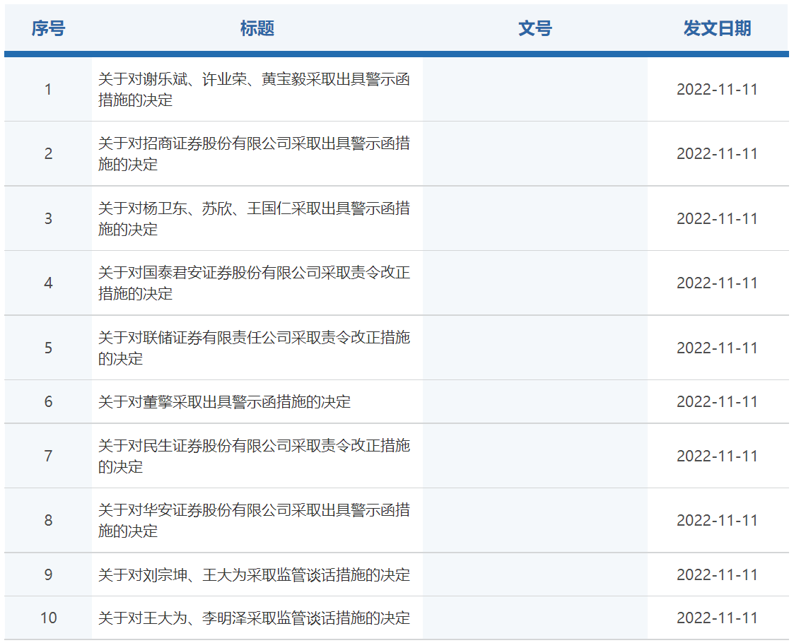 券商投行业务再遭羁系处罚。克日,证监会连开10张罚单,均指向券商的投行业务。 具体而言,因投资银行类业务内部控制不美满、耿介从业风险防控机制不美满等标题,5家券商收到罚单:华安证券(600909.SH)、招商证券(600999.SH、06099.HK)被出具警示函,民生证券、联储证券、国泰君安(601211.SH、02611.HK)被责令改正。 因对相干违规举动负有直接受理责任,10位员工也遭羁系处罚。 羁系直指券商投行业务两大标题 此次证监会连开罚单,紧张指向券商两大标题:一是投资银行类业务内部控制不美满,二是耿介从业风险防控机制不美满。 内控方面,证监会指出,联储证券投资银行类业务内部控制不美满,部分项目内核意见跟踪落实不到位;民生证券内控构造架构独立性不敷,中小企业发展部推行质量控制职责的同时还存在承做投行项目标情况,部分项目质控、内核把关不严;华安证券存在合规职员独立性不敷,投行条线部分专职合规职员薪酬未达标,部分项目在内核聚会会议前未开展问核工作等违规标题。 对于国泰君安证券,证监会也指出该公司质控、内核把关不严,部分债券项目立项申请被否再次申请立项时,未对前后差别作出充实比力阐明,且存在内核意见复兴前即对外报出的情况。 证监会还点出招商证券投行业务内控不美满的项目:珠海冠宇电池股份有限公司(简称“珠海冠宇”,688772.SH)初次公开发行股票并在科创板上市项目、大连港股份有限公司(现名“辽宁港口股份有限公司”,简称“辽港股份”,601880.SH)换股罗致归并营口港务股份有限公司(简称”营口港务“)并召募配套资金暨关联生意业务项目存在对外报送的文件大幅修改后未重新推行内核步调的情况,个别项目质控、内核意见跟踪落实不到位。 耿介风控方面,证监会指出,联储证券、国泰君安证券存在耿介从业风险防控机制不美满,约请第三方耿介从业风险防控不到位等标题;民生证券存在耿介从业风险防控机制不美满,第三方服务机构检察制度实行不到位。 按照《证券公司和证券投资基金管理公司合规管理办法》(简称《合规管理办法》)第三十二条规定,证监会决定对招商证券、华安证券采取出具警示函的行政监视管理步伐。“你公司应增强对投资银行业务的合规管理,对相干责任职员举行内部问责。” 别的,按照《证券发行上市保荐业务管理办法》第六十五条、《合规管理办法》第三十二条和《证券期货策划机构及其工作职员耿介从业规定》第十八条的规定,证监会决定对联储证券、民生证券、国泰君安证券采取责令改正的行政监视管理步伐。“你公司应引以为戒,认真查找和整改标题,创建健全和严格实行投行业务内控制度、工作流程和使用规范,诚实取信、勤勉尽责,切实提升投行业务质量。你公司应严格按照内部问责制度对责任职员举行内部问责,并向上海证监局提交书面问责陈诉。” 相干负责人被出具警示函或采取羁系发言 同日,证监会还对4家券商的10名员工开出了罚单。 对于联储证券、民生证券、国泰君安证券的相干负责人,证监会决定采取出具警示函步伐。证监会指出,董擎作为时任分管投行业务高管,对联储证券相干违规举动负有管理责任;杨卫东作为时任分管投行业务高管、苏欣作为时任质控部分负责人、王国仁作为时任中小企业发展部部分负责人,对民生证券相干违规举动负有直接受理责任。 国泰君安证券方面,证监会指出,谢乐斌作为时任分管投行业务高管、许业荣作为时任投行质控部分负责人、黄宝毅作为时任债务融资部部分负责人,对相干违规举动负有直接受理责任。 对于招商证券三位员工,证监会决定采取羁系发言的行政羁系步伐。证监会指出,王大为、李明泽担当辽港股份换股罗致归并营口港务并召募配套资金暨关联生意业务项目财务顾问主理人过程中,修改已通过公司内核步调的反馈意见复兴后,未重新推行内核步调即对外报送。 值得留意的是,王大为还因另一项目被采取羁系发言步伐。证监会指出,刘宗坤、王大为作为珠海冠宇初次公开发行股票并在科创板上市项目保荐代表人,修改已通过公司内核步调的招股阐明书后,未重新推行内核步调即对外报送。 |
