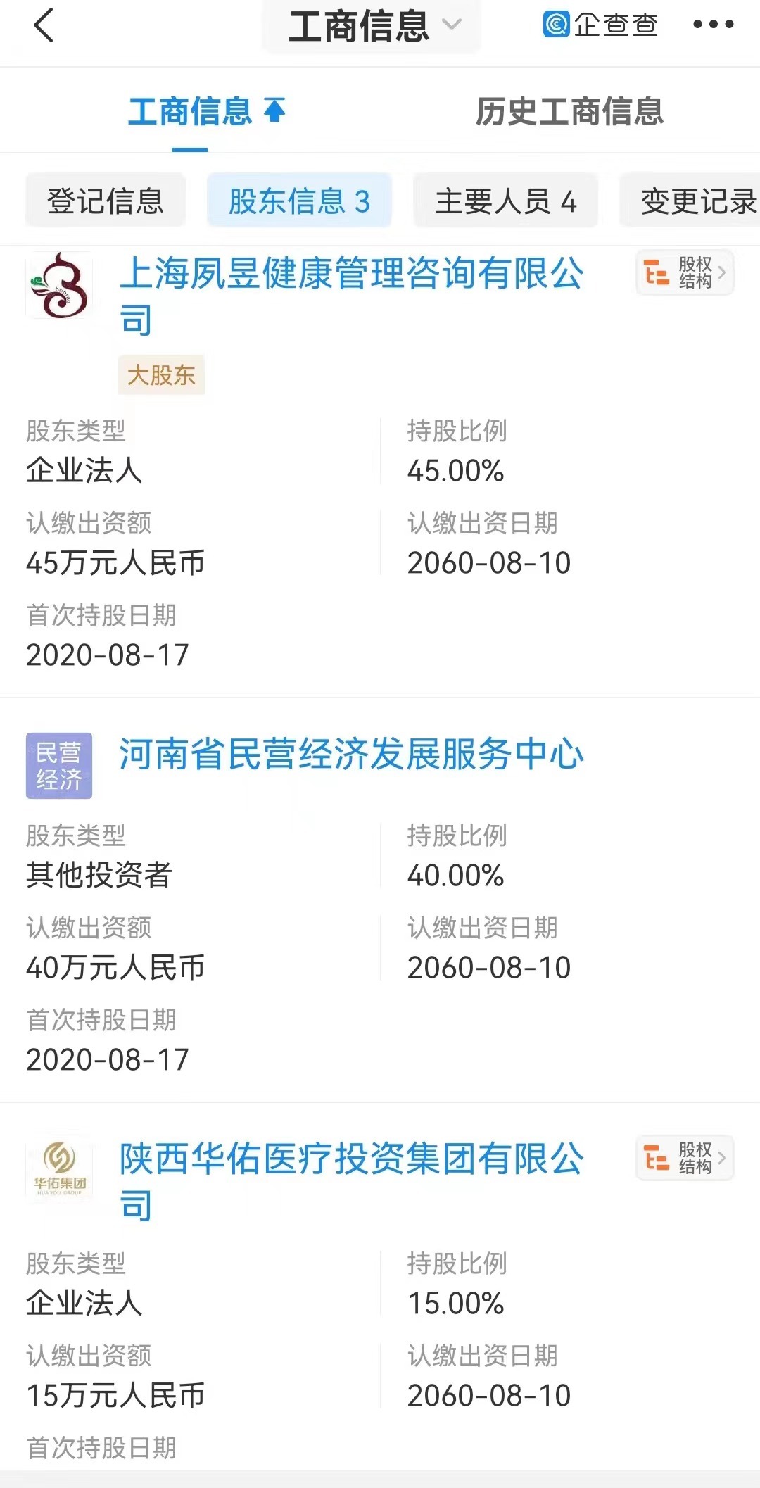 央广网郑州11月16日消息(记者 王勇生)11月15日,河南省郑州市惠济区一临时自费采样点打出公告称:加急核酸检测最迟90分钟出陈诉,通常60分钟左右。仅限企业VIP客户,年费320元,并享有两年内20次加急核酸检测服务。不光独售卖。 网友拍摄的郑州市惠济区一临时自费采样点公告 据网友反映,该核酸检测点属于郑州达瑞杼寿医学查验实验室,位于郑州市惠济区月湖南路附近,公告表现内容属实,但检测点工作职员不愿意先容太多环境。 11月16日下战书,央广网记者致电郑州达瑞杼寿医学查验实验室及郑州达瑞杼寿医疗服务中心,当工作职员听说是想相识干系环境时,立刻以记者打错为由挂断电话,再拨就无法接通了。 随后,记者在网上找到了郑州达瑞杼寿医疗服务中心官网,据其官网信息表现,郑州达瑞杼寿医疗服务中心由美国阳光-睿达康健管理团体、广州达瑞生物、上海夙昱康健、陕西华佑医疗团体连合河南省民营经济发展服务中心、中科光启信息管理有限公司发起创建的以基因检测技能为焦点,以传统中医、细胞为本领,致力于生命康健5S管理的医疗服务平台。中心下设郑州达瑞杼寿医学查验实验室、天颐堂中医院专家咨询中心和河南细胞杼寿细胞应用研究院。 据企查查截图表现该公司实缴资源为0、参保人数为0 记者查询企查查发现:郑州达瑞杼寿医疗服务中心(有限合资)是2021年9月9日创建,由河南杼寿康健管理咨询有限公司与中科光启空间信息技能有限公司连合投资,出资额1250万元。工商信息表现,河南杼寿康健管理咨询有限公司占股80%,认缴出资额1000万元,实缴为0;中科光启空间信息技能有限公司占股20%,认缴出资额250万元,实缴为0,郑州达瑞杼寿医疗服务中心参保人数为0。由此可以看出,该医疗服务中心实缴资源为0,参保人数为0 。 据企查查截图表现这三个股东合计认缴金额为100万元,实缴金额为0 通过记者进一步查询,河南杼寿康健管理咨询有限公司注册资源100万元,创建于2020年8月17日;上海夙昱康健管理咨询有限公司认缴出资额45万元,占股45%;河南省民营经济发展服务中心认缴出资额40万元,占股40%;陕西华佑医疗投资团体有限公司认缴出资额15万元,占股15%。值得留意的是,这三个股东合计认缴金额为100万元,实缴金额为0。 本网记者将对此事跟踪报道。 |