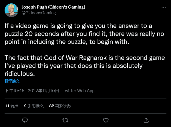 《战神:诸神薄暮》中不但仅有着吸引人的剧情和热血的战斗,奎爷和阿特柔斯还将碰到各种各样的谜题。和 2018 年的战神类似,这些谜题通常须要玩家利用附近的工具,或是之前得到的本事来办理它们。在剧烈的战斗之间,也给了玩家一点喘气的时机。 不外,许多玩家在网上指出,这些谜题存在着严肃的题目:在他们自己偶然间过细思索和观察之前,游戏中的 NPC 很快就会为它们提供答案。游戏中固然存在一个可以延伸时间的选项,但是对于一部分玩家来说,这些压根不敷长。 “《战神:诸神薄暮》看你办理谜题凌驾 2 秒钟后:(憋不住了)” “哟,这些新战神的谜题太难了。” “如果游戏盼望你在发现谜题后 20 秒之内就解开它,那么这个游戏一开始就不应该包罗任何谜题。《战神:诸神薄暮》是我本年玩过的第二款这么做的游戏,这件事太谬妄了。” 游戏中并没有任何菜单设置可以镌汰 NPC 的语言频率,而“Puzzle Timing”选项只能给玩家一些额外时间来办理某些和时间有关的谜题。圣莫妮卡工作室的首席用户体验计划师 Mila Pavlin 向 Polygon 证明,表现“这些设置并不会影响 NPC 谈天频率。” 《战神:诸神薄暮》并不是第一款让人感觉到开发者太过关照玩家的索尼游戏。2 月发售的《地平线:西之绝境》中,主角埃洛伊在解谜时会不绝自言自语为玩家提供“线索”,这一点也被部分玩家所诟病。 “埃洛伊,我很爱你,但请闭嘴” 如今《战神:诸神薄暮》即将到来的补丁将为游戏添加照相模式。大概在近期官方就会回应这一题目并提供相应选项,让那些想要自己面临困难的玩家可以通过自己喜好的方式嬉戏这款大作。 |